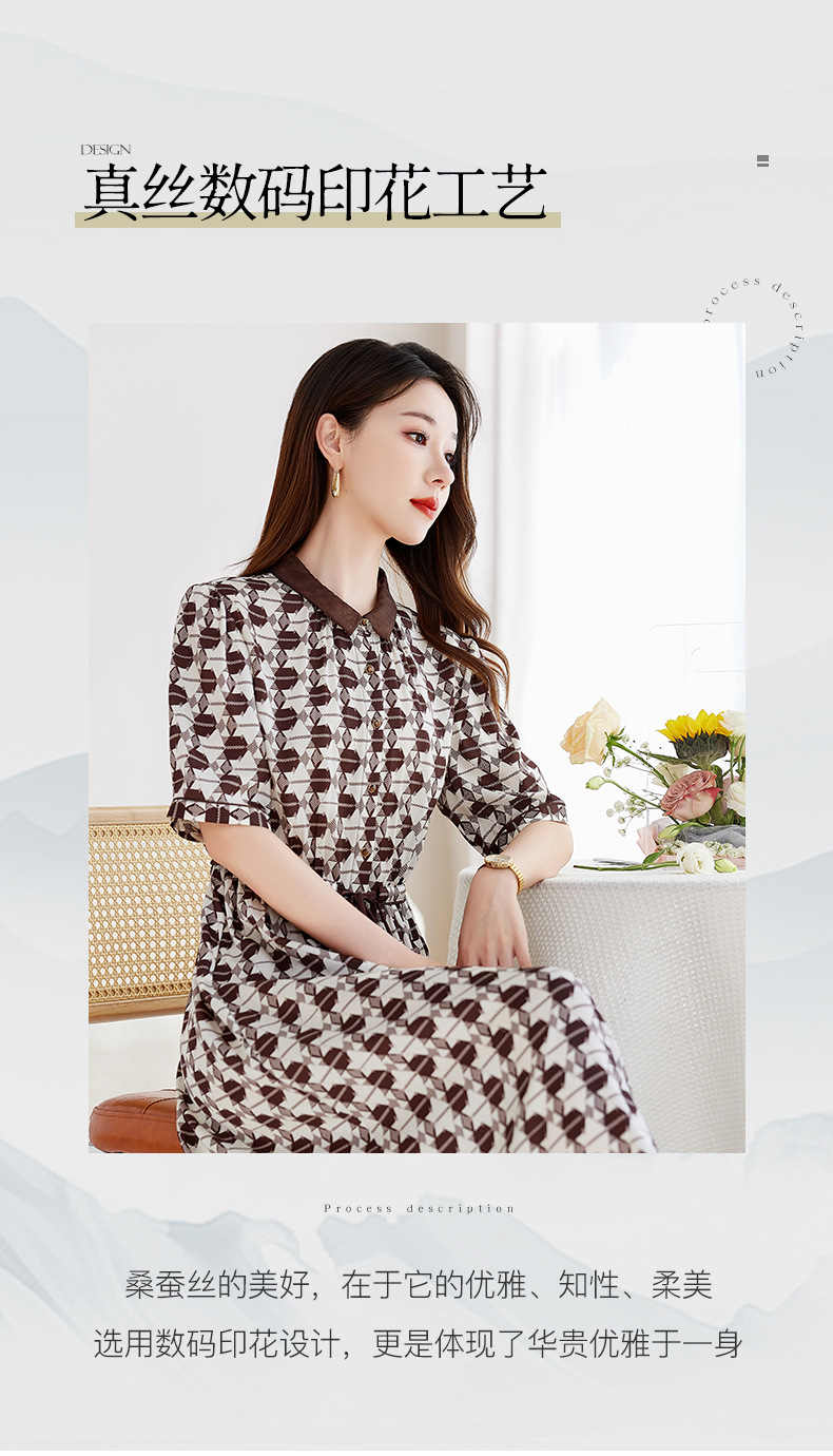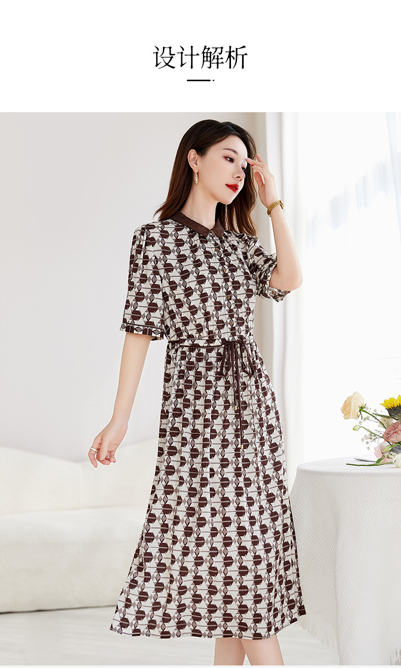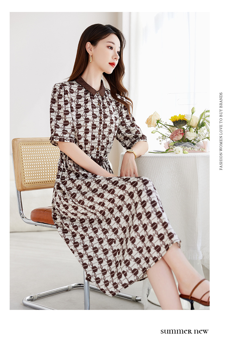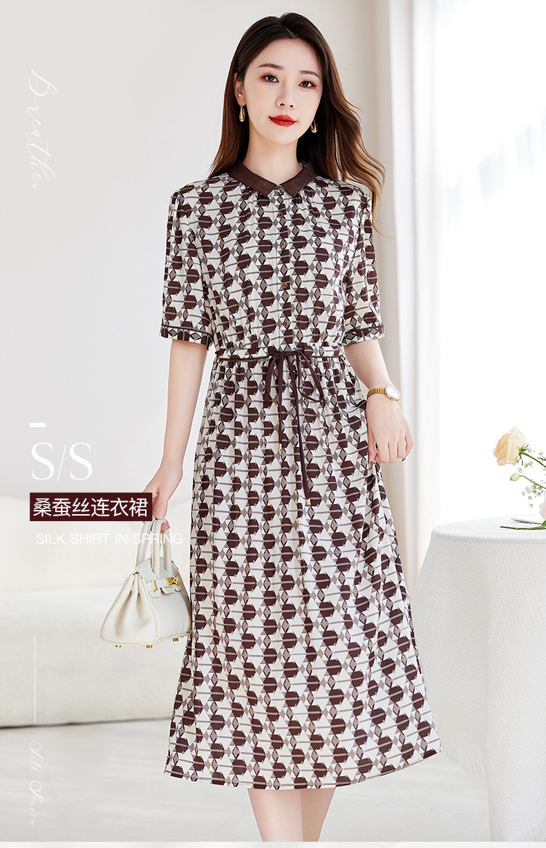 QS-82599058【优雅中大淑】真丝弹力双乔复古短袖中长裙印花桑蚕丝连衣裙9058