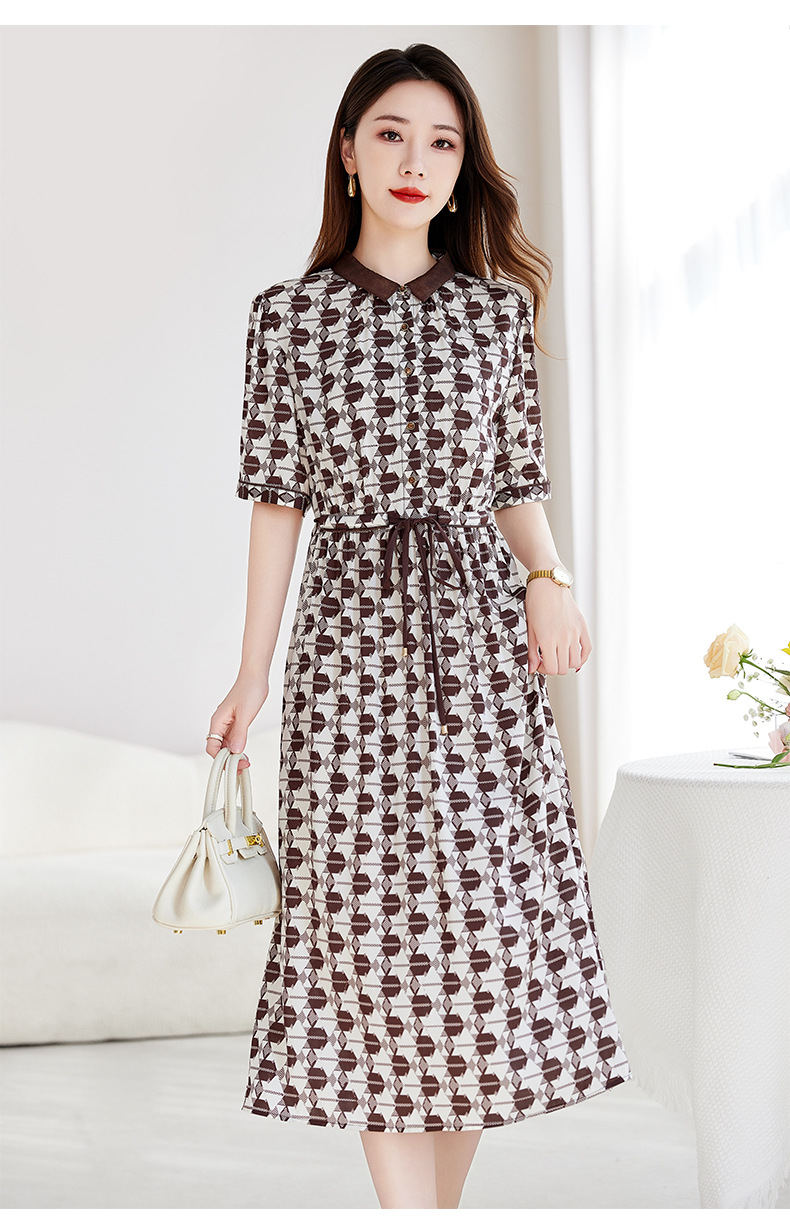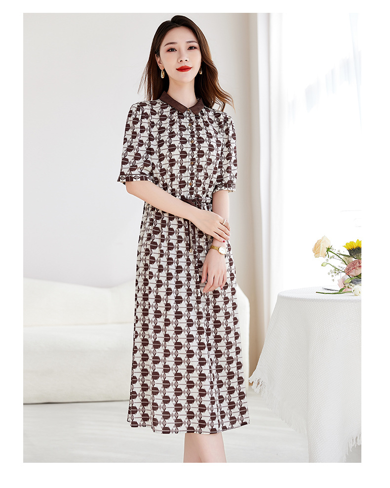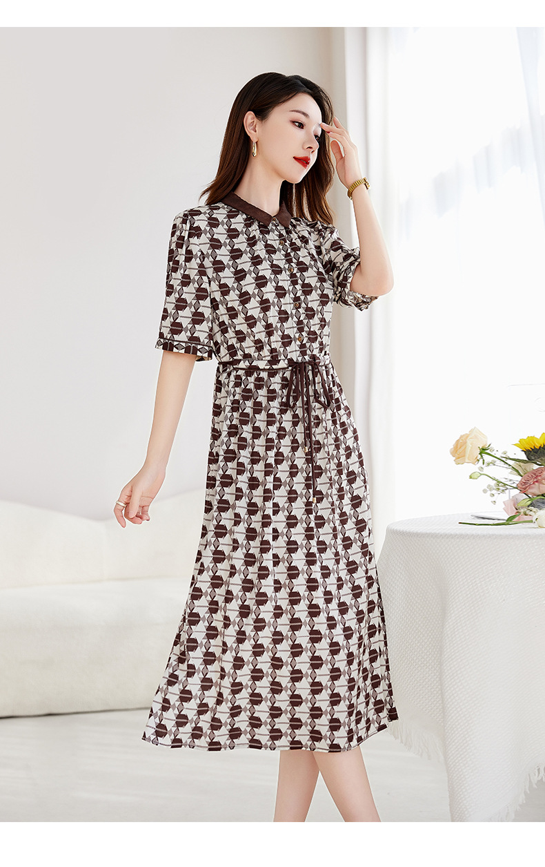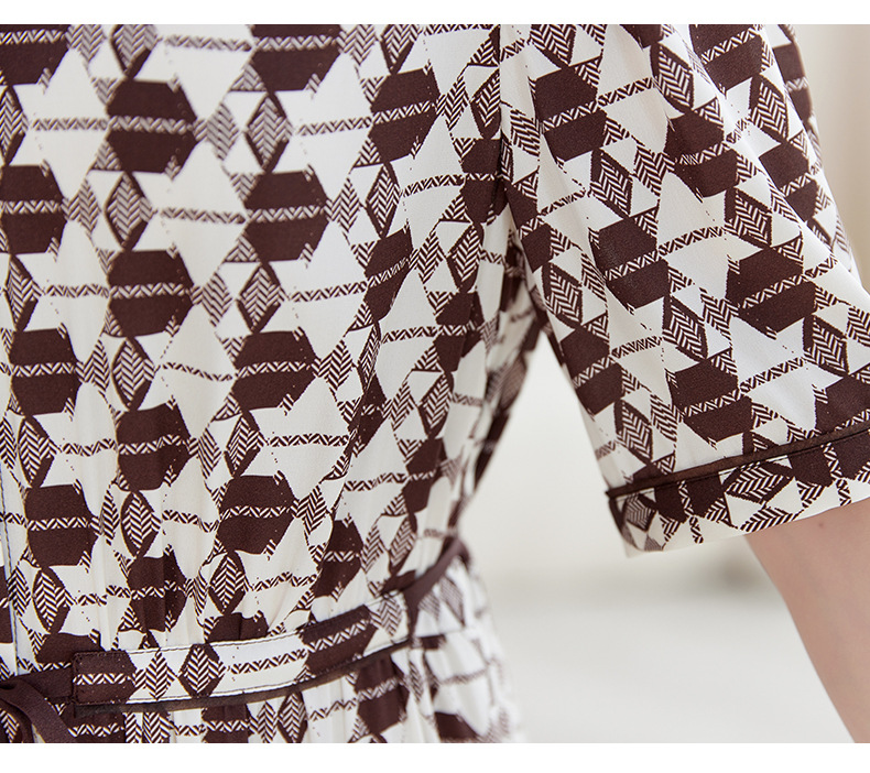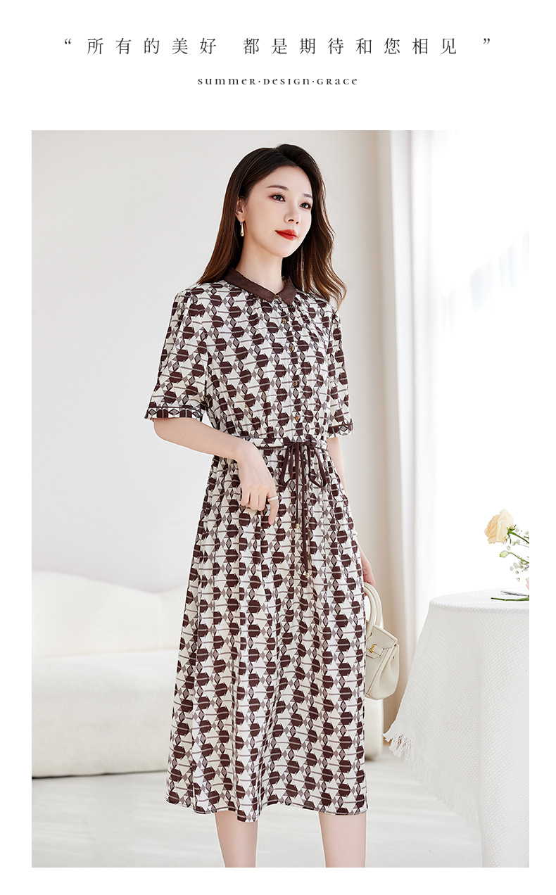 QS-82599058【优雅中大淑】真丝弹力双乔复古短袖中长裙印花桑蚕丝连衣裙9058