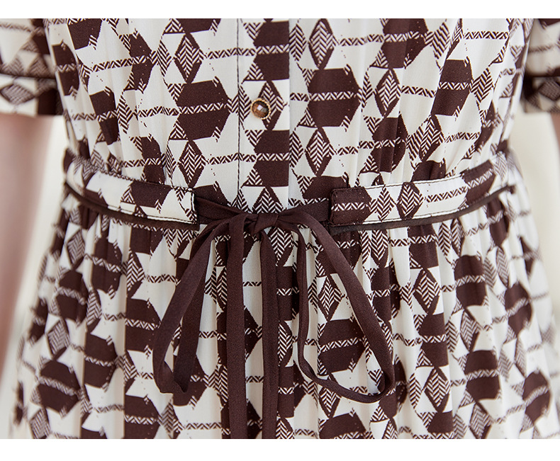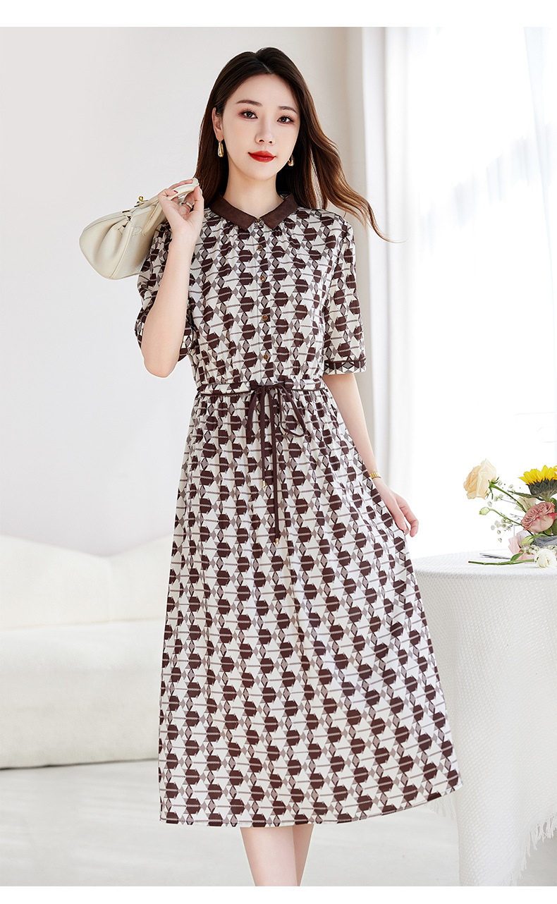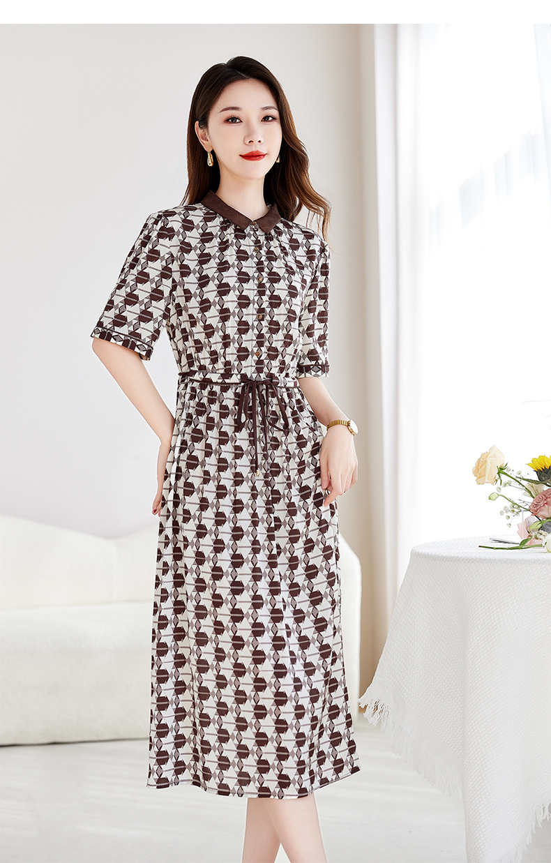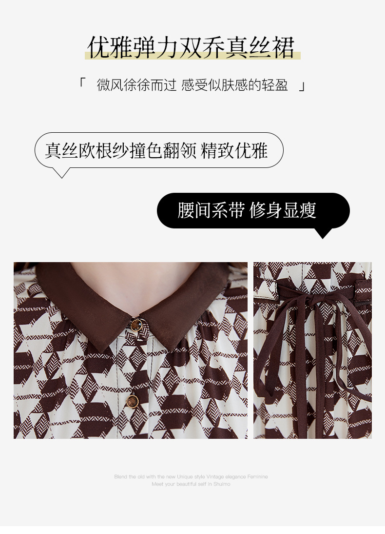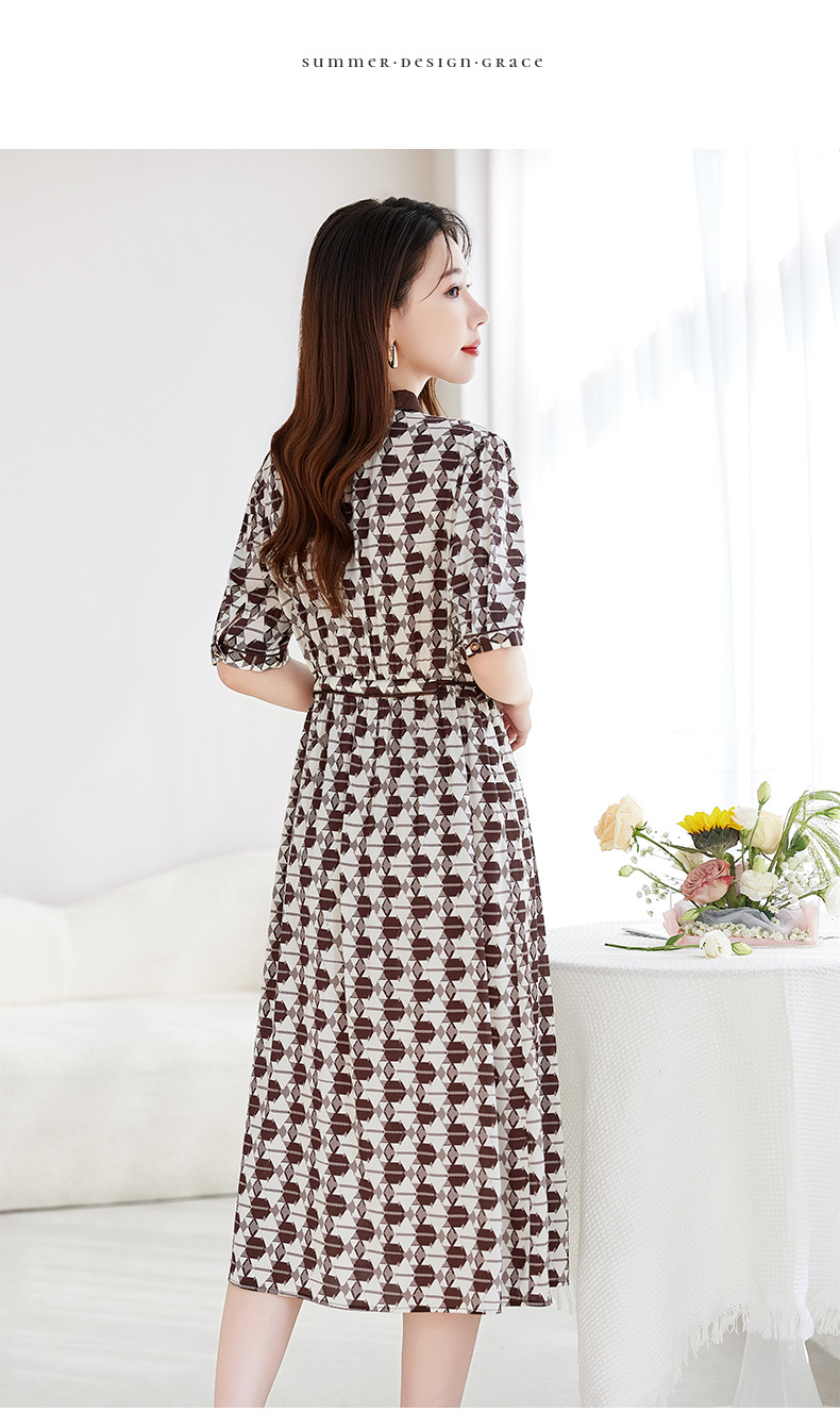 QS-82599058【优雅中大淑】真丝弹力双乔复古短袖中长裙印花桑蚕丝连衣裙9058
