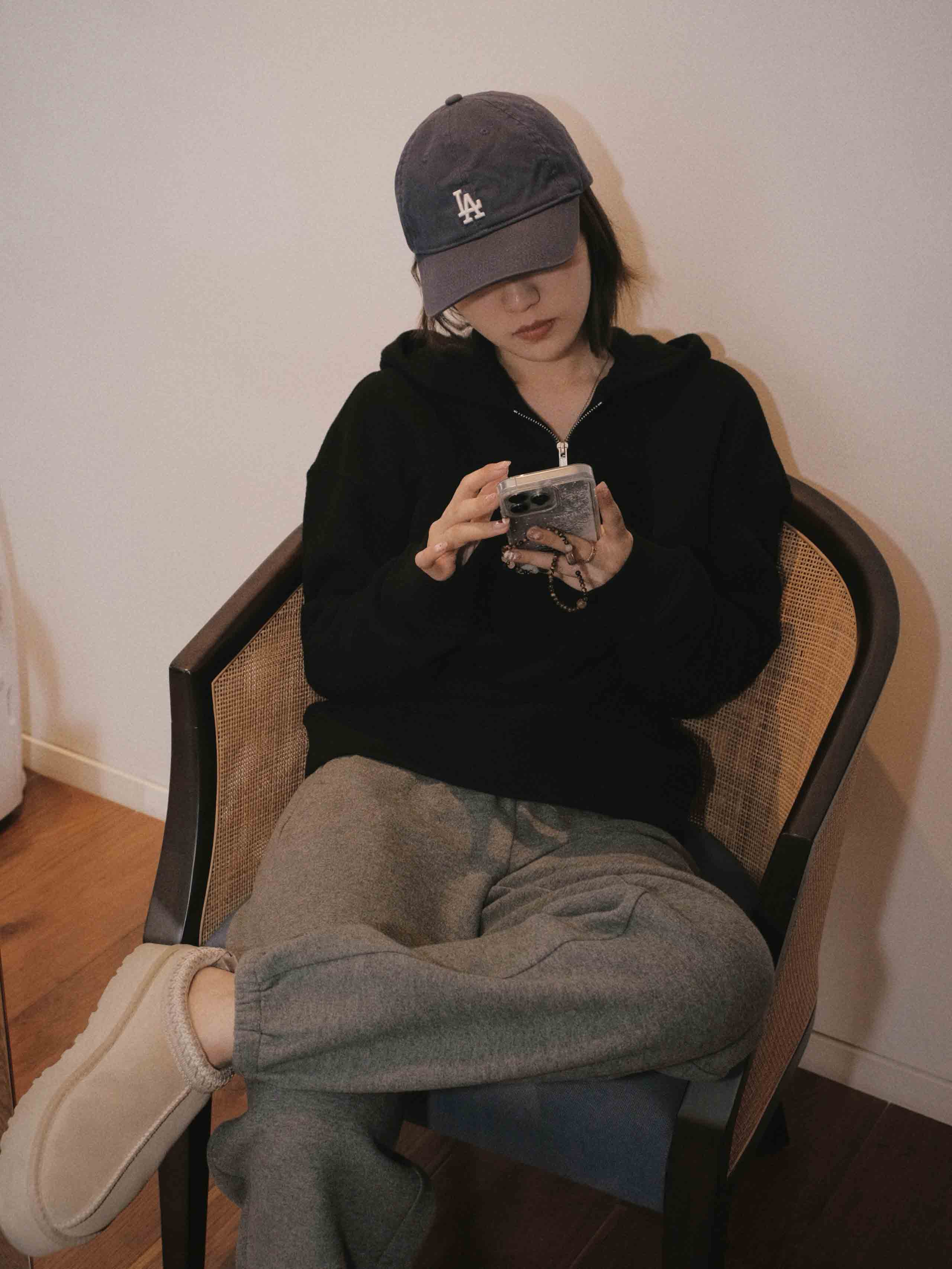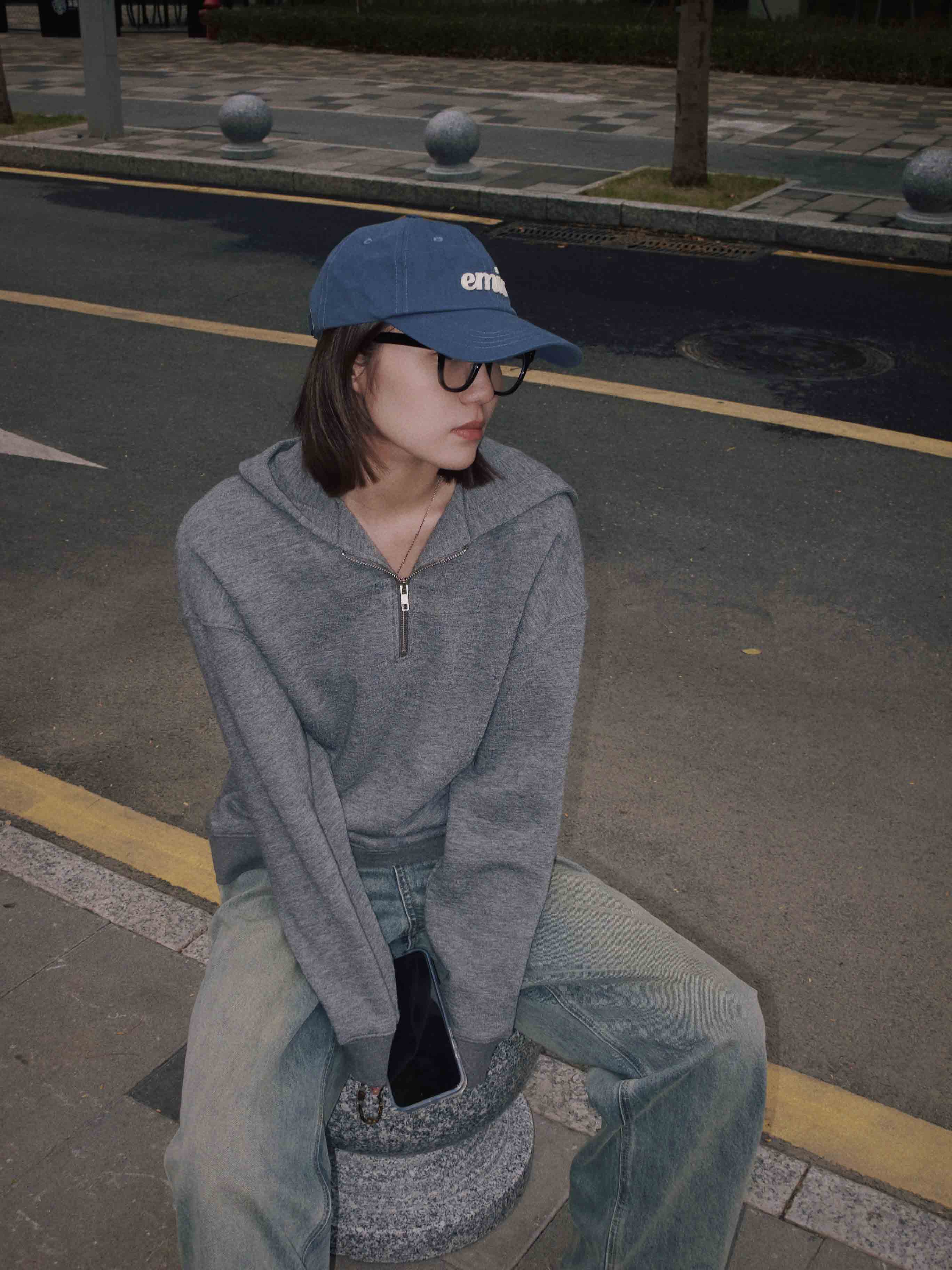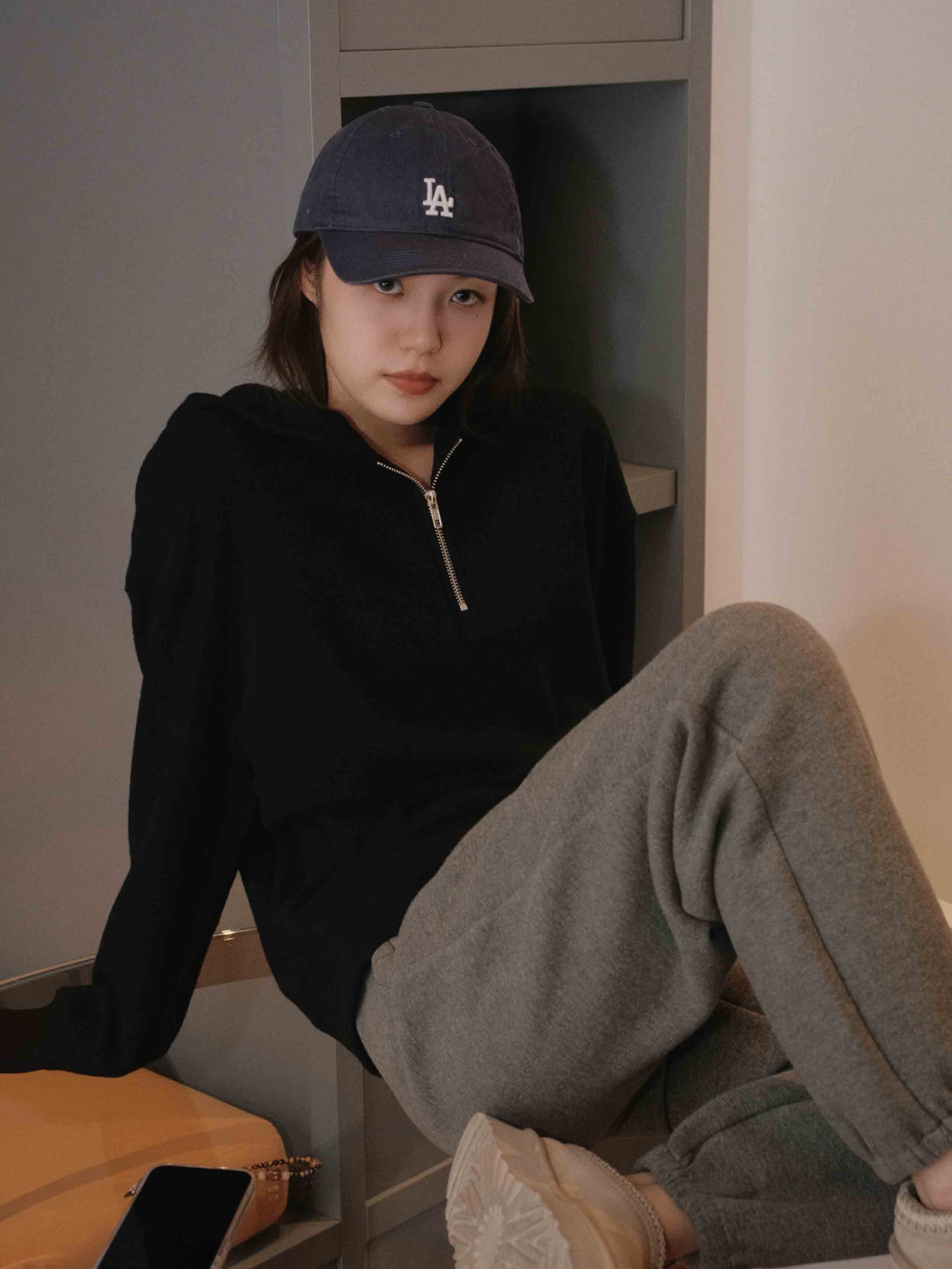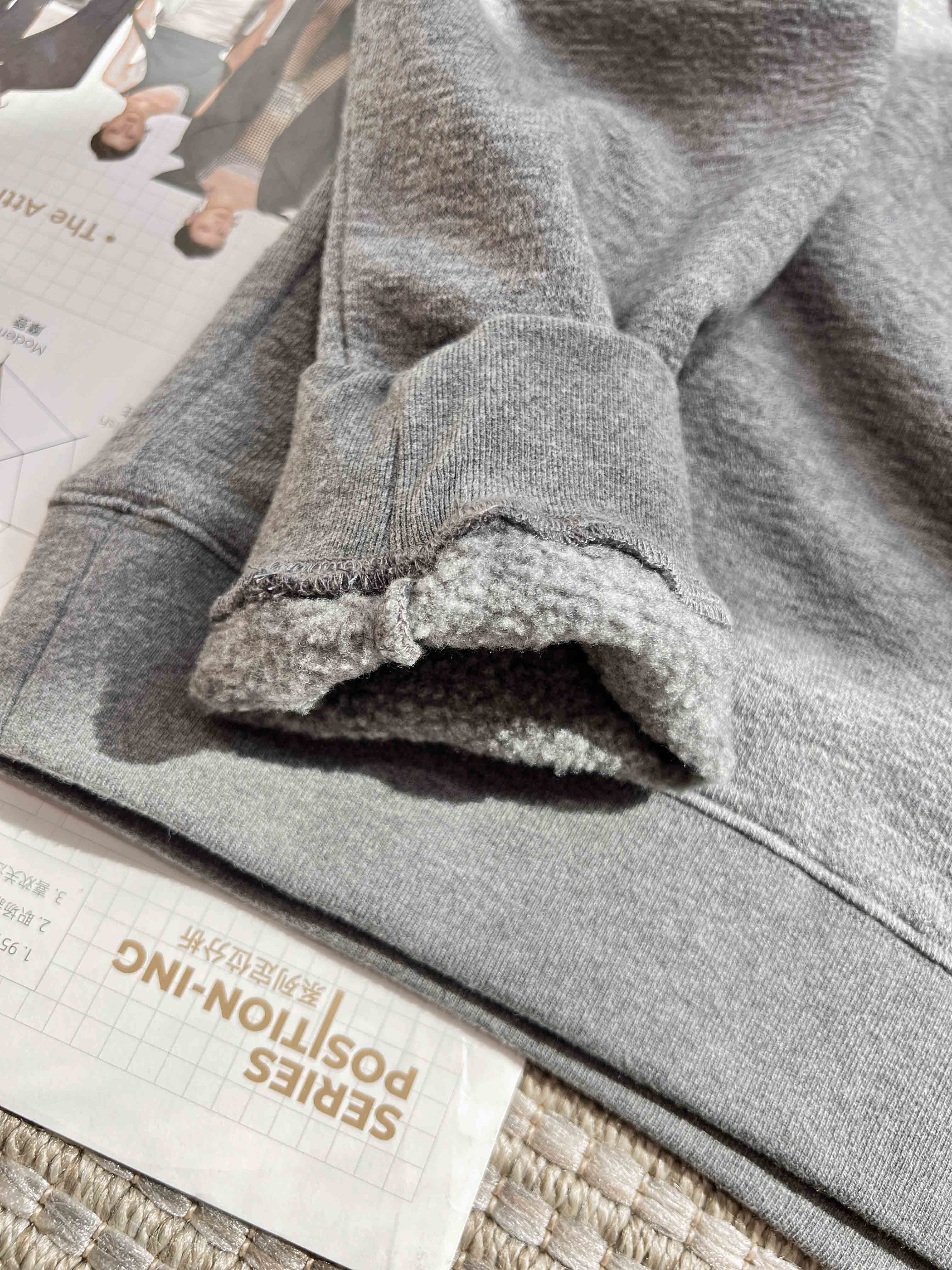 羊毛天丝半开拉链连帽套头卫衣·灰色/黑色,自带运动感
