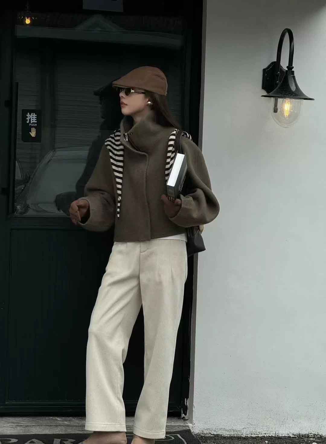 “冬日松弛”小香风时尚双面呢羊绒短款大衣外套❗️