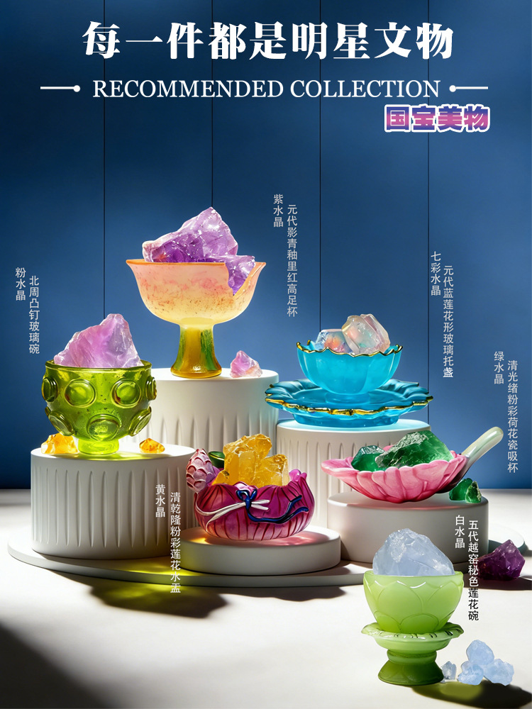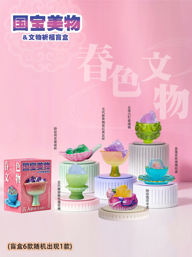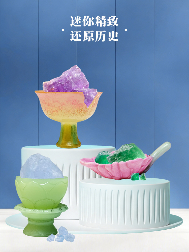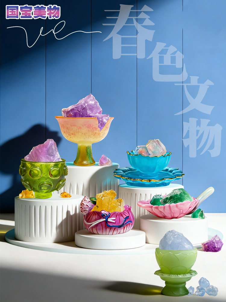 【国宝美物】晶石治愈文创盲盒北魏蓝莲花影青釉里红秘色莲花博物馆考古玩具历史文物宝藏树脂摆件新年礼品