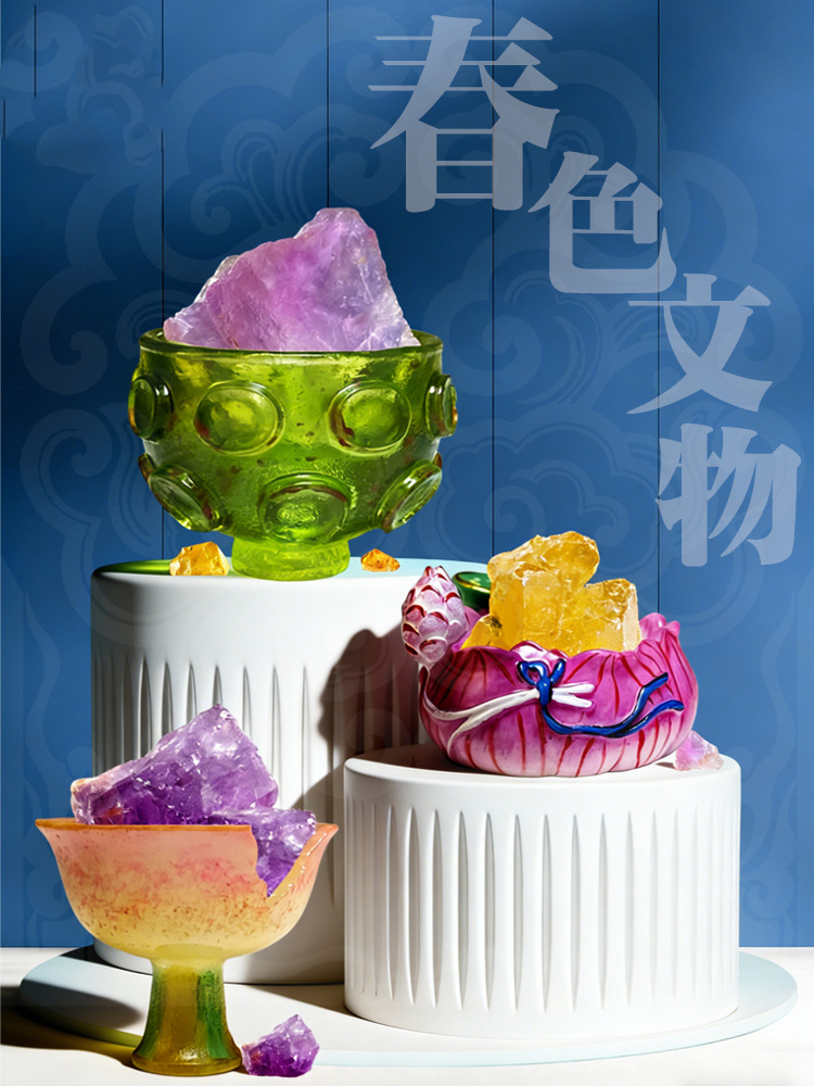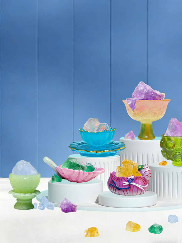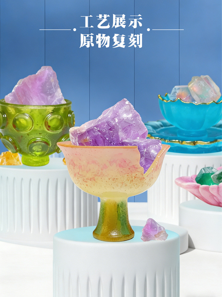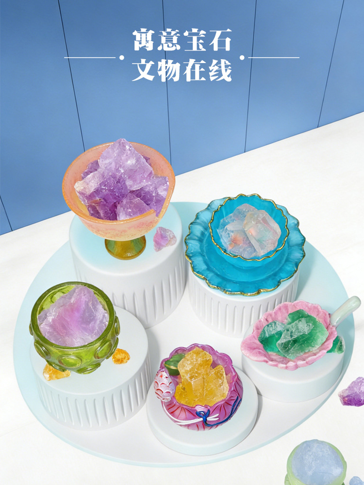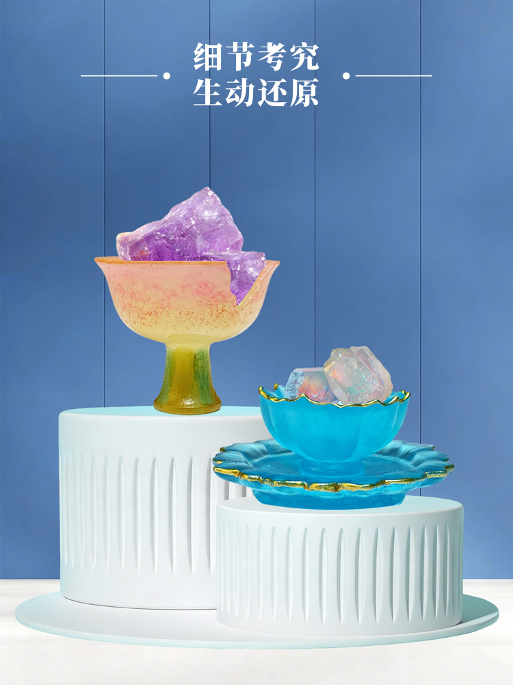 【国宝美物】晶石治愈文创盲盒北魏蓝莲花影青釉里红秘色莲花博物馆考古玩具历史文物宝藏树脂摆件新年礼品
