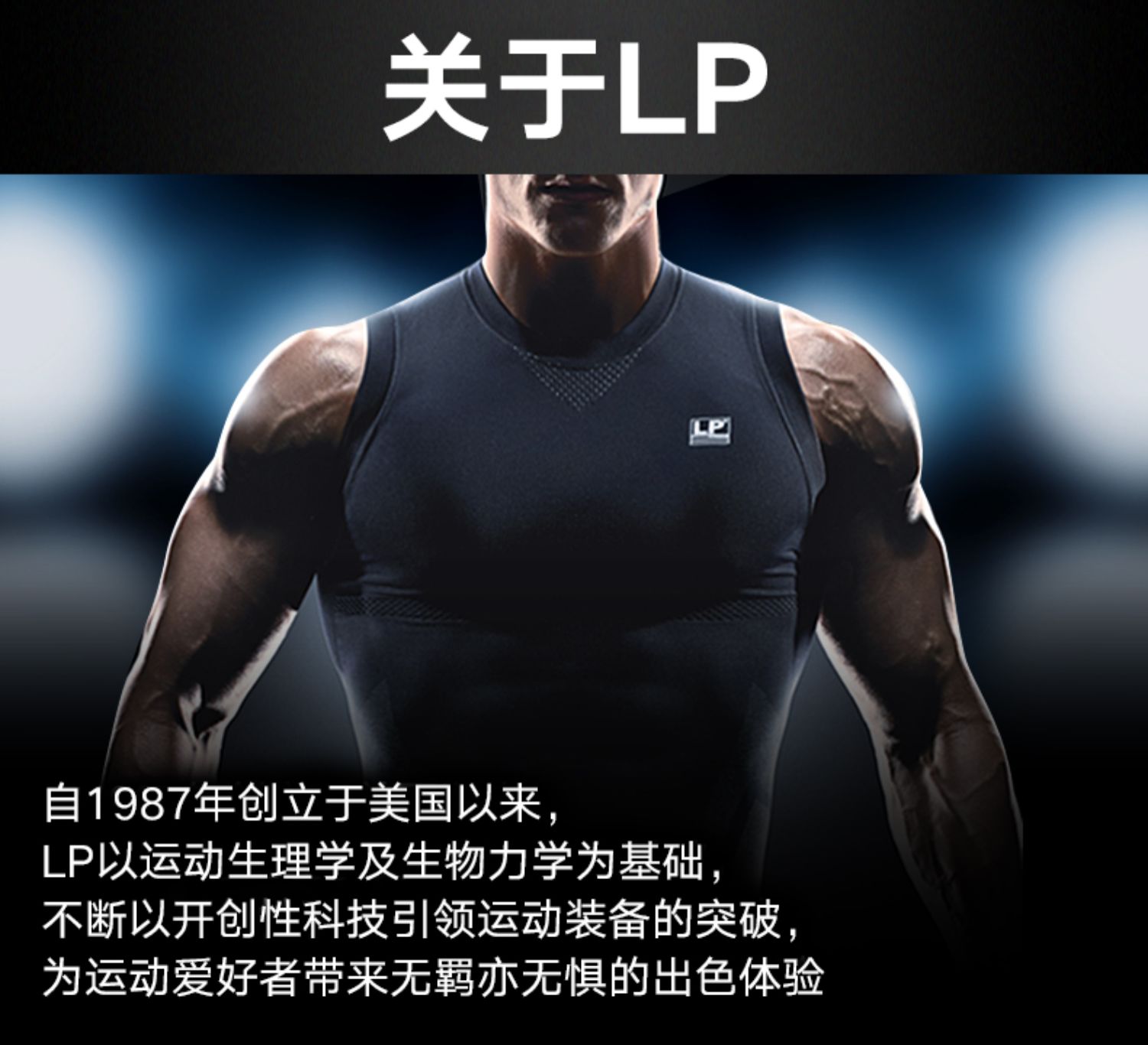- 自1987年创立于美国以来,LP SUPPORT作为功能型运动装备品牌之一,LP以生理学和生物力学为基础,结合人体工学技术,研发出开创性的“激能压缩系列”运动装备,让运动者无羁释放运动潜能。