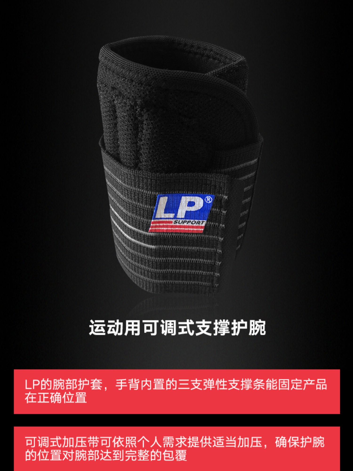LP 552 可调式支撑护腕 羽毛网排足篮球运动护腕 固定加压护套