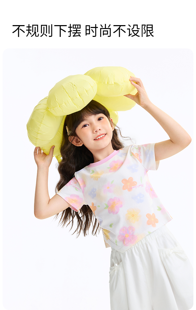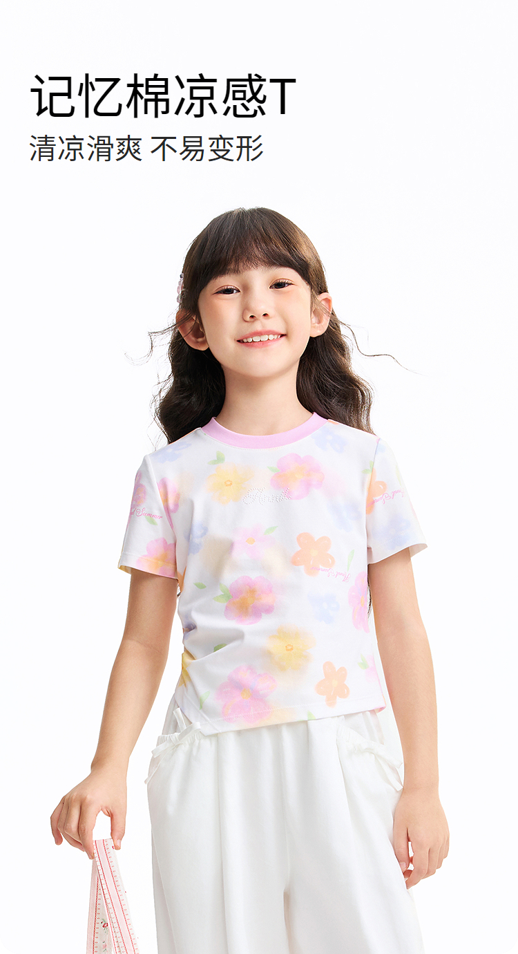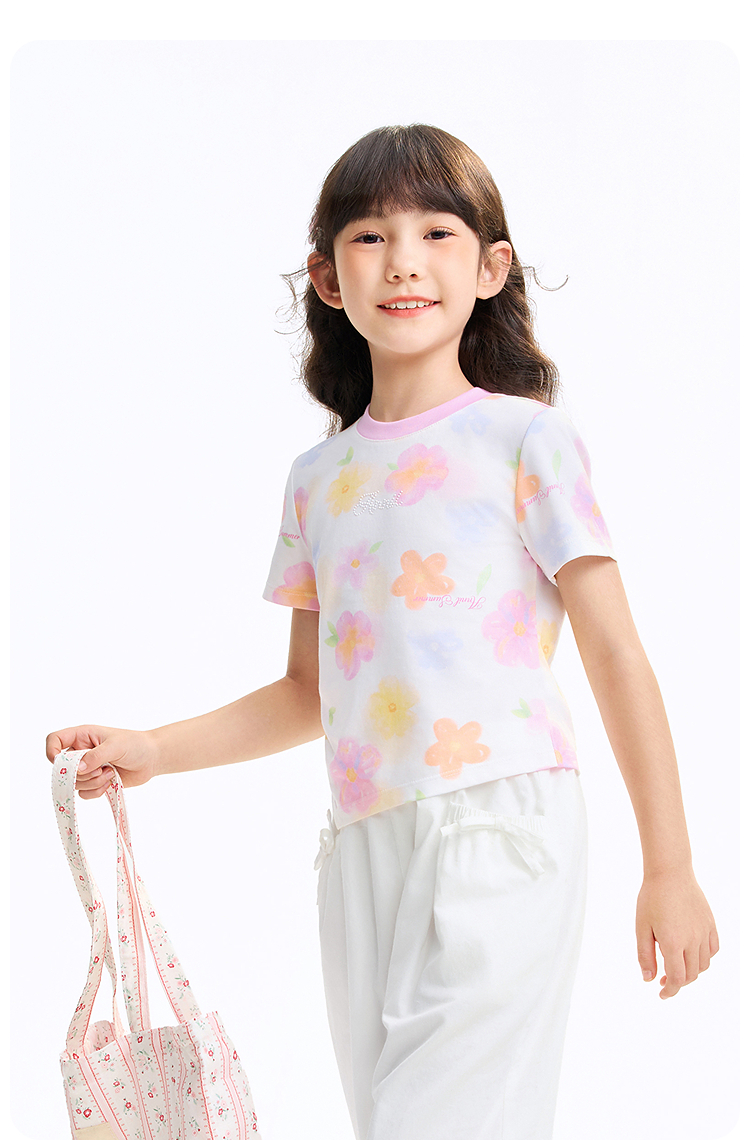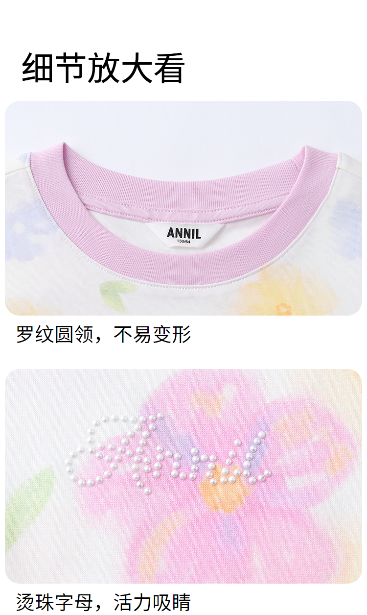 女童圆领短袖针织衫夏季新款安奈儿童装EG621639
