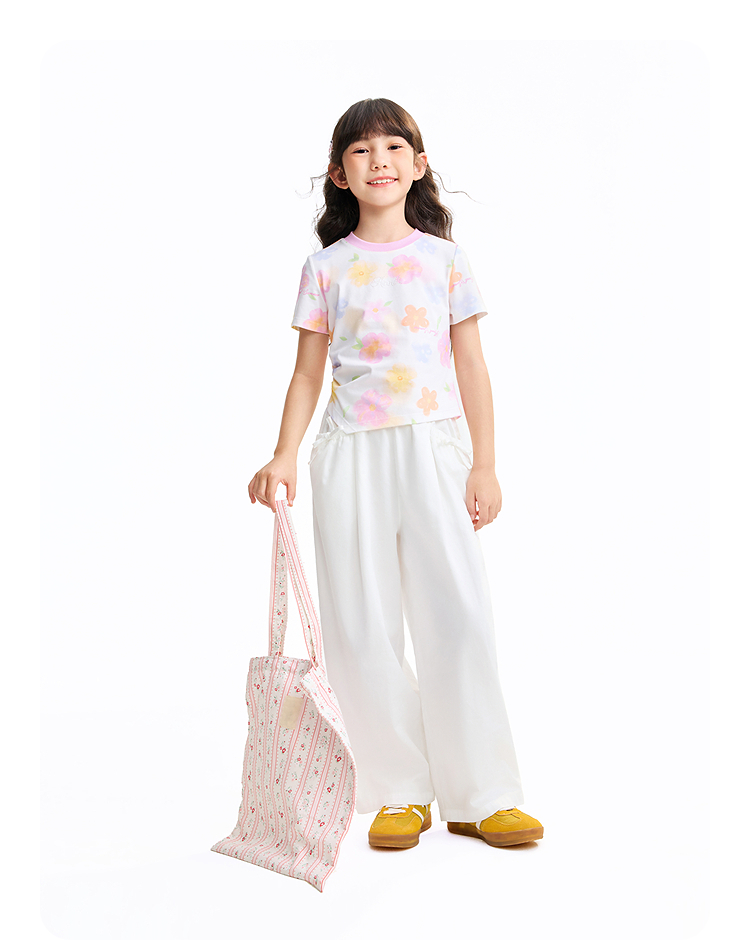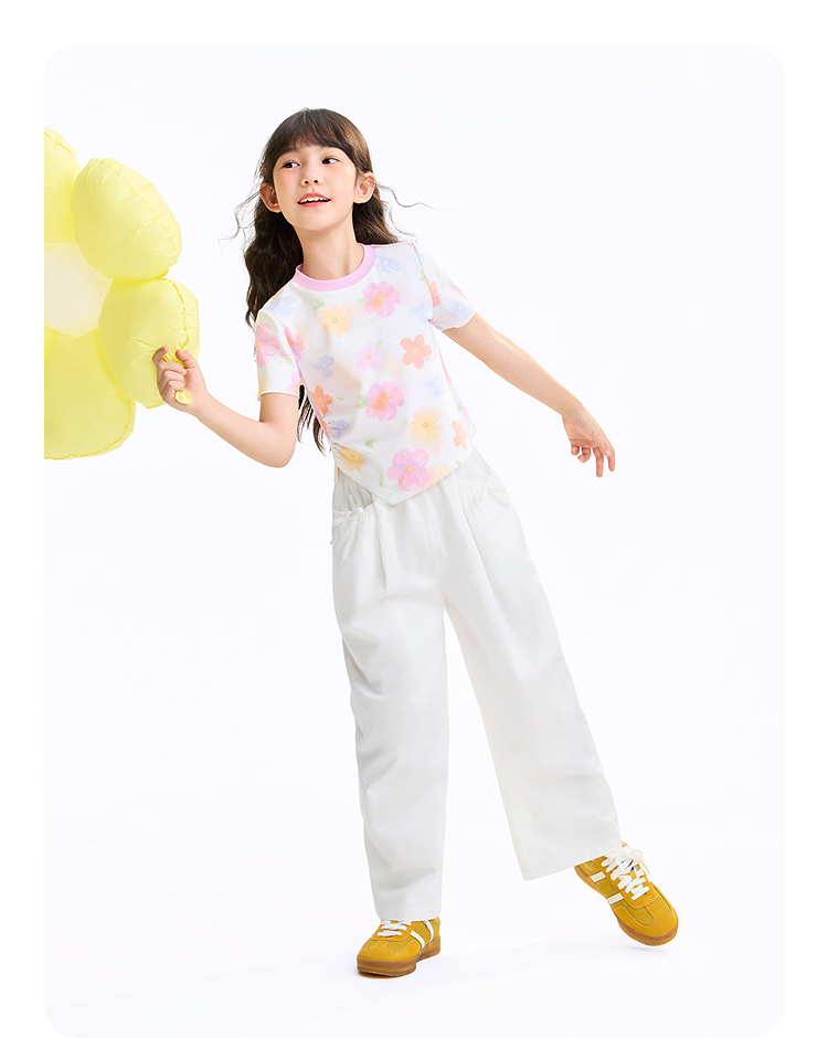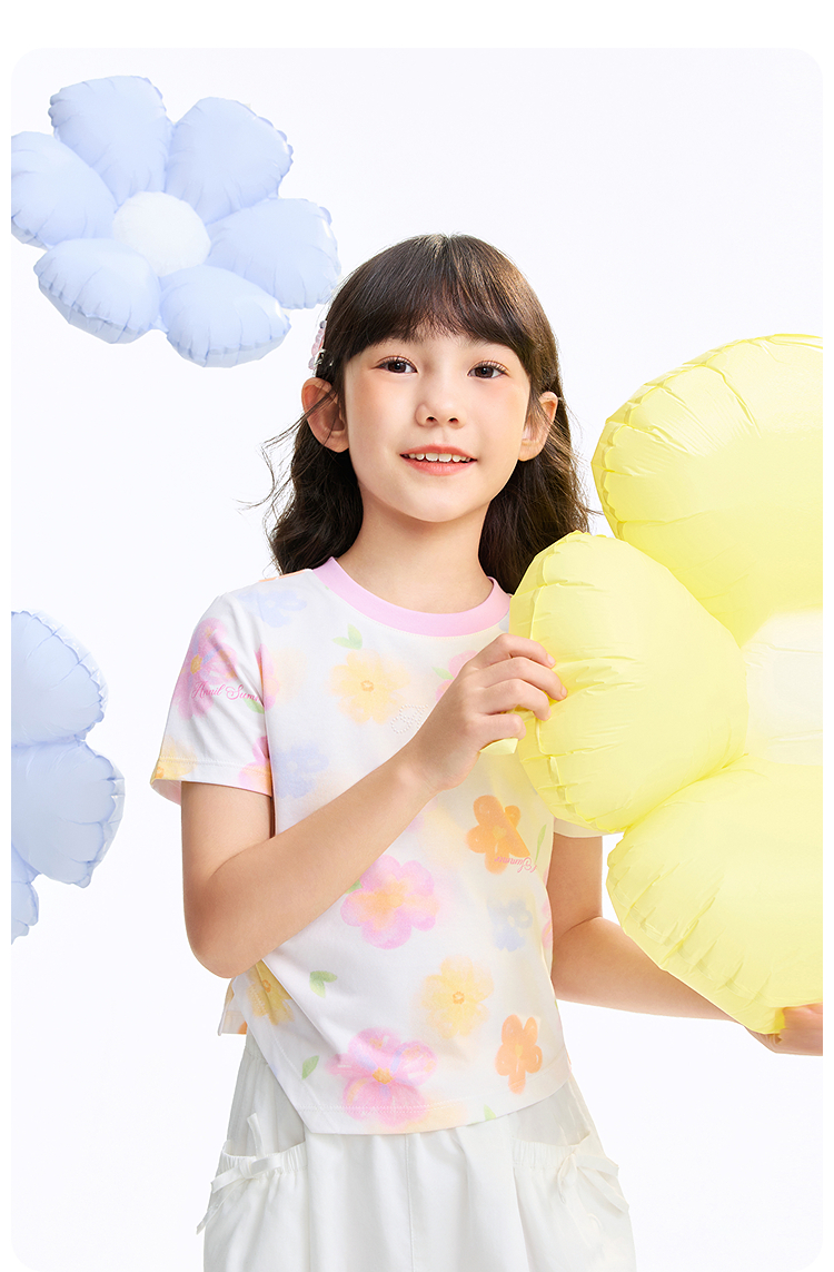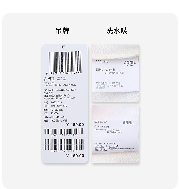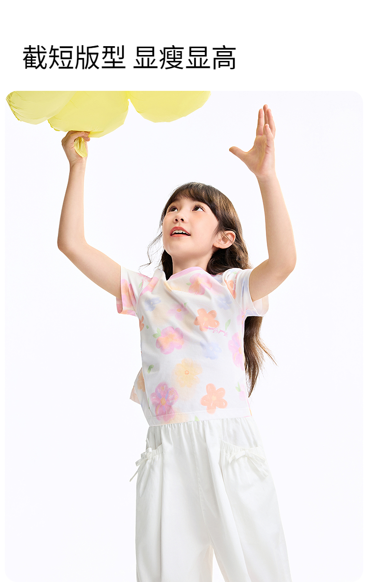 女童圆领短袖针织衫夏季新款安奈儿童装EG621639