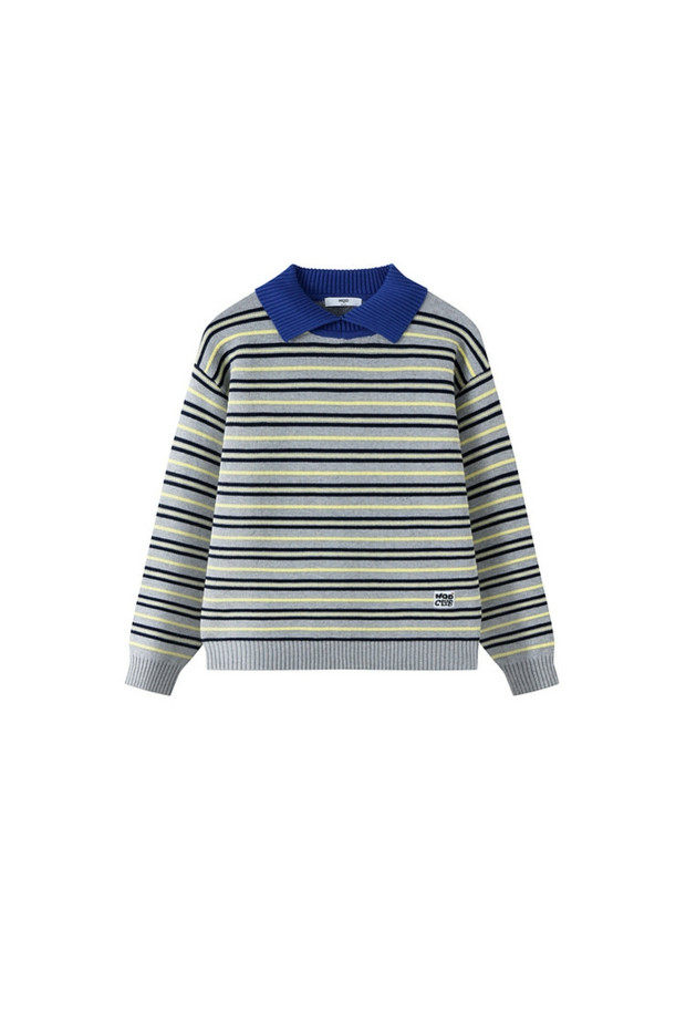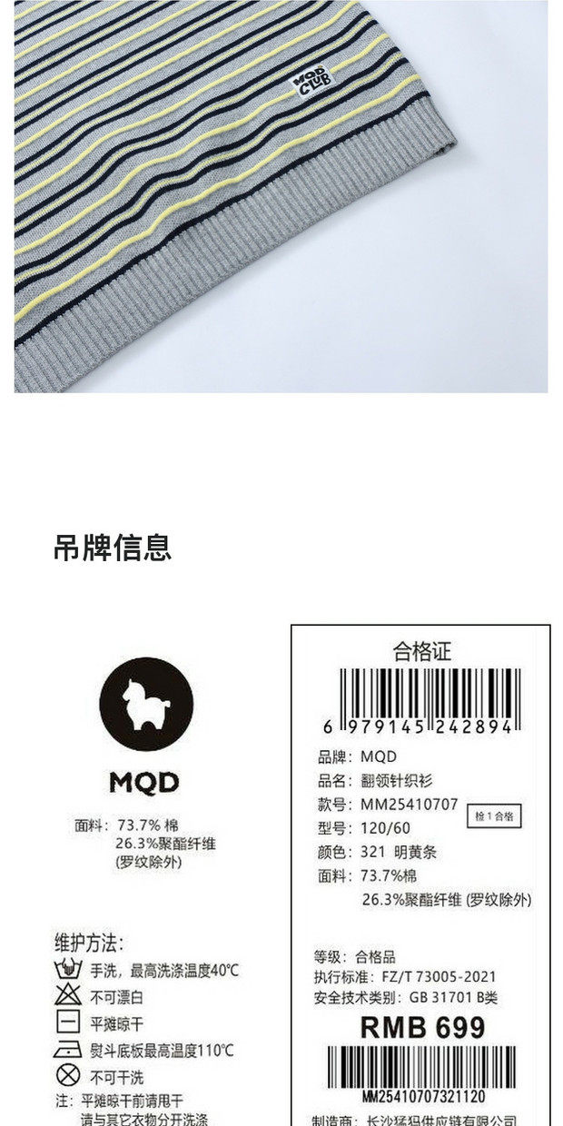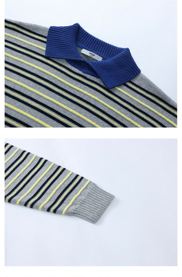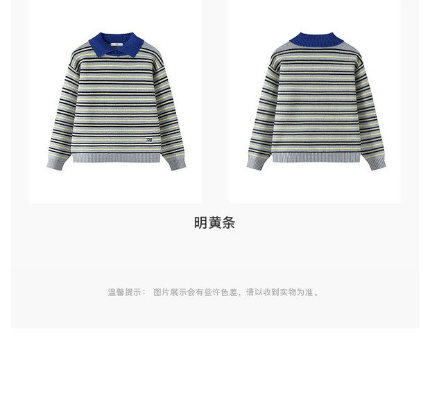 【MQD】童装男大童26春新款儿童加厚保暖上衣百搭学院风条纹翻领毛衣