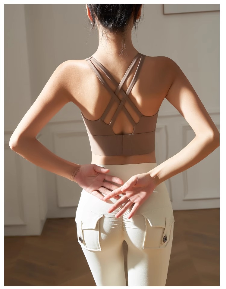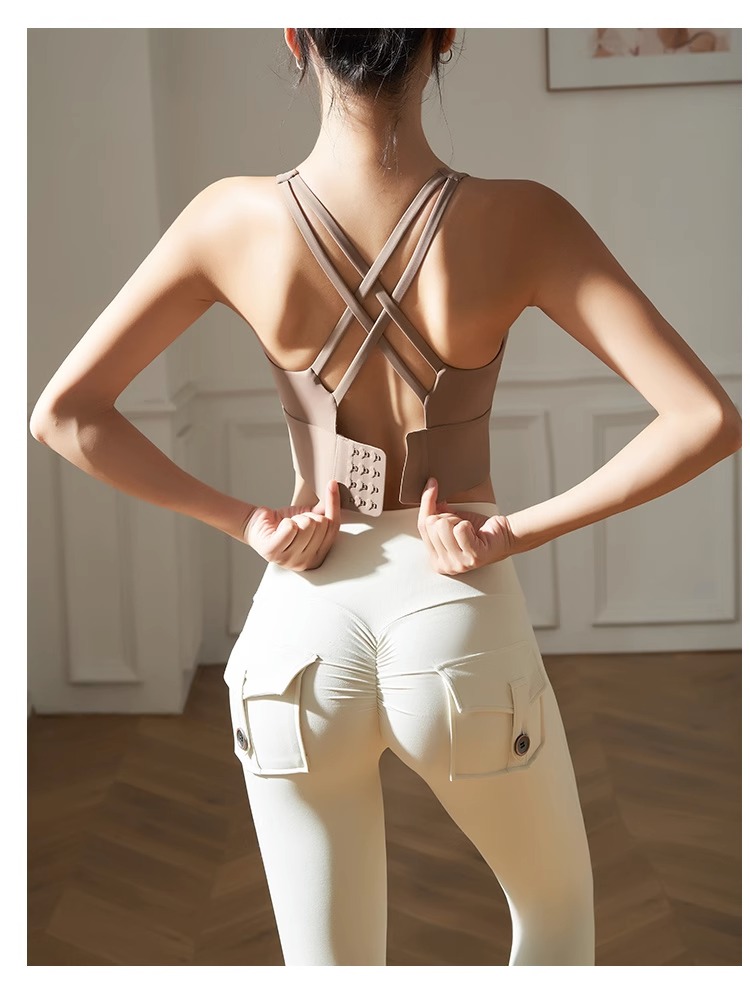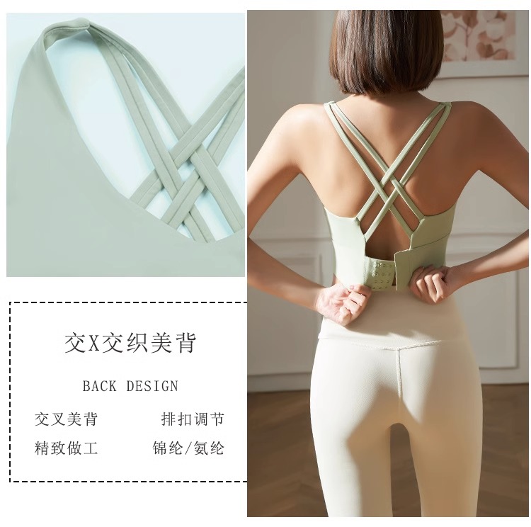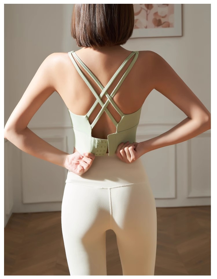 跃牌【瑜见伽人系列】一体式固定罩杯运动内衣速干健身普拉提文胸排扣瑜伽背心 YX1126