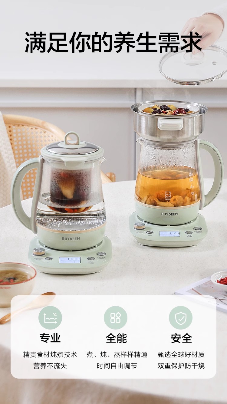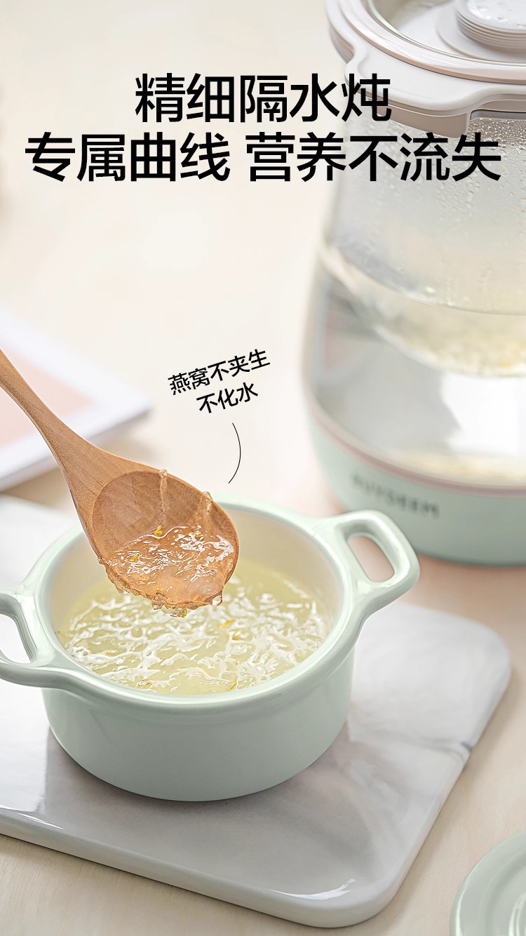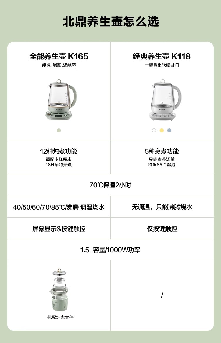 北鼎全自动多功能养生壶K165浅杉绿配炖盅