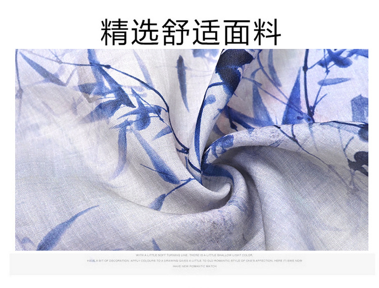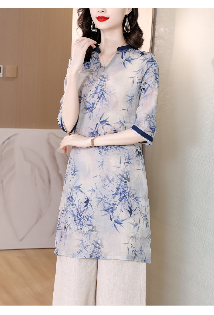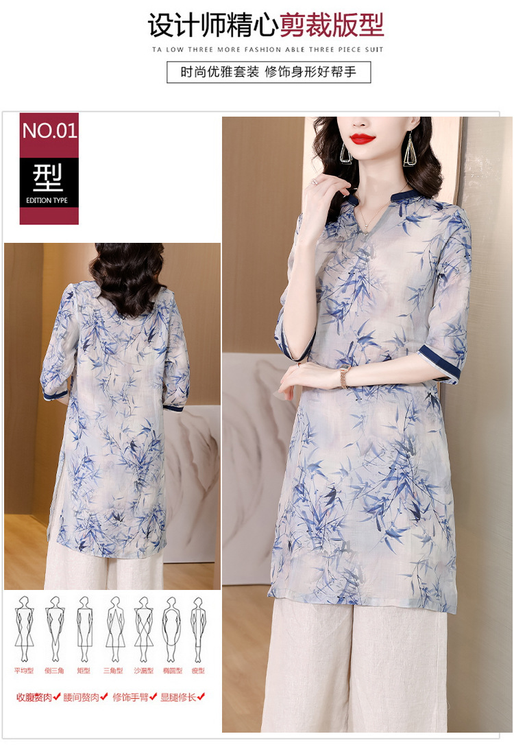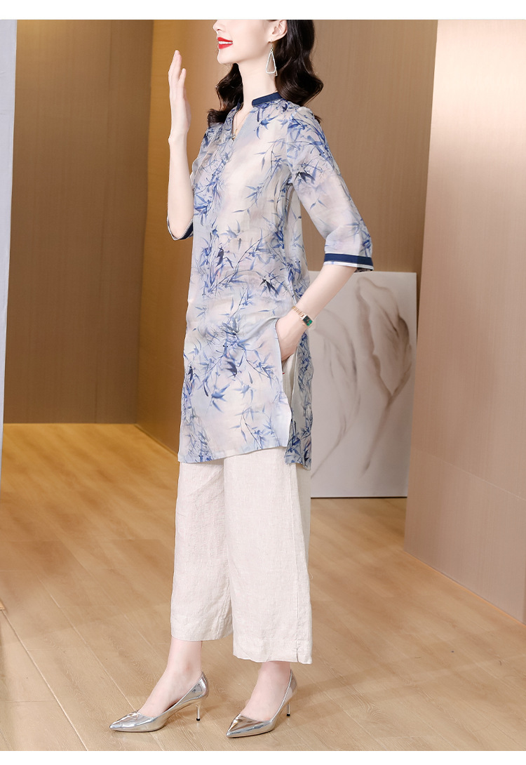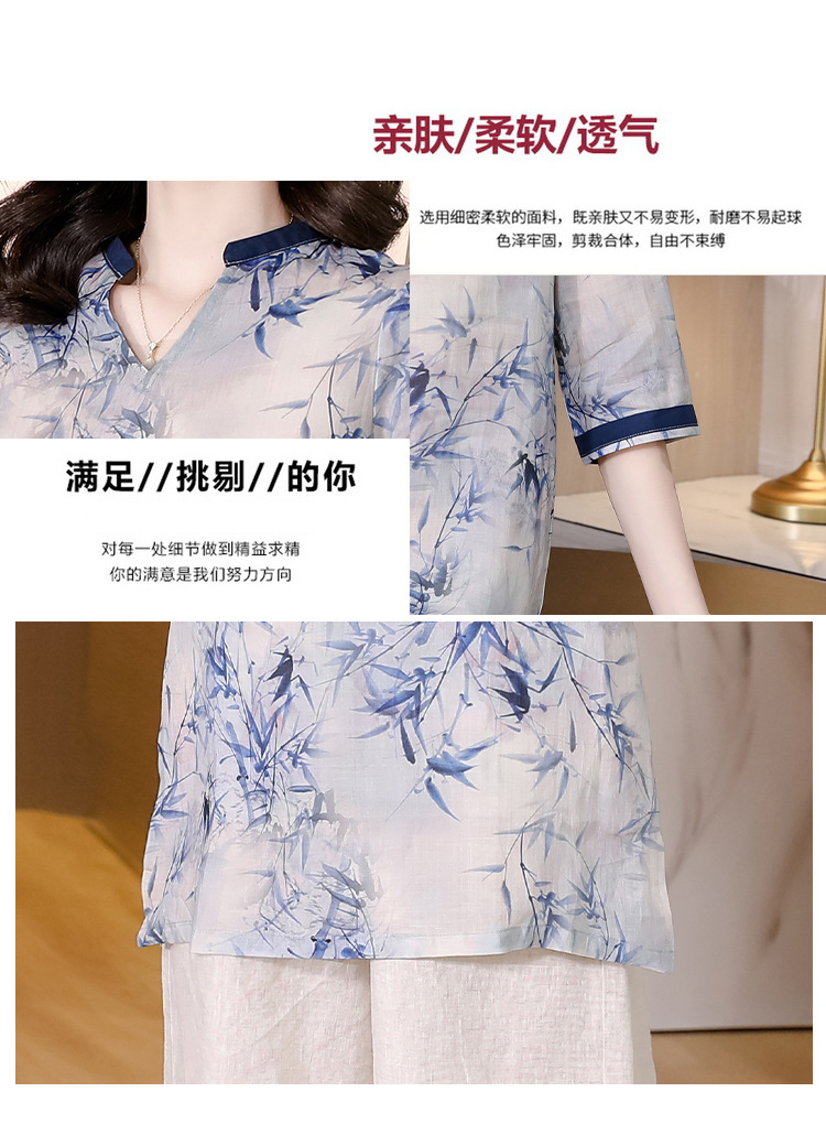 中国风复古墨竹印花上衣阔腿裤两件套NYL9596