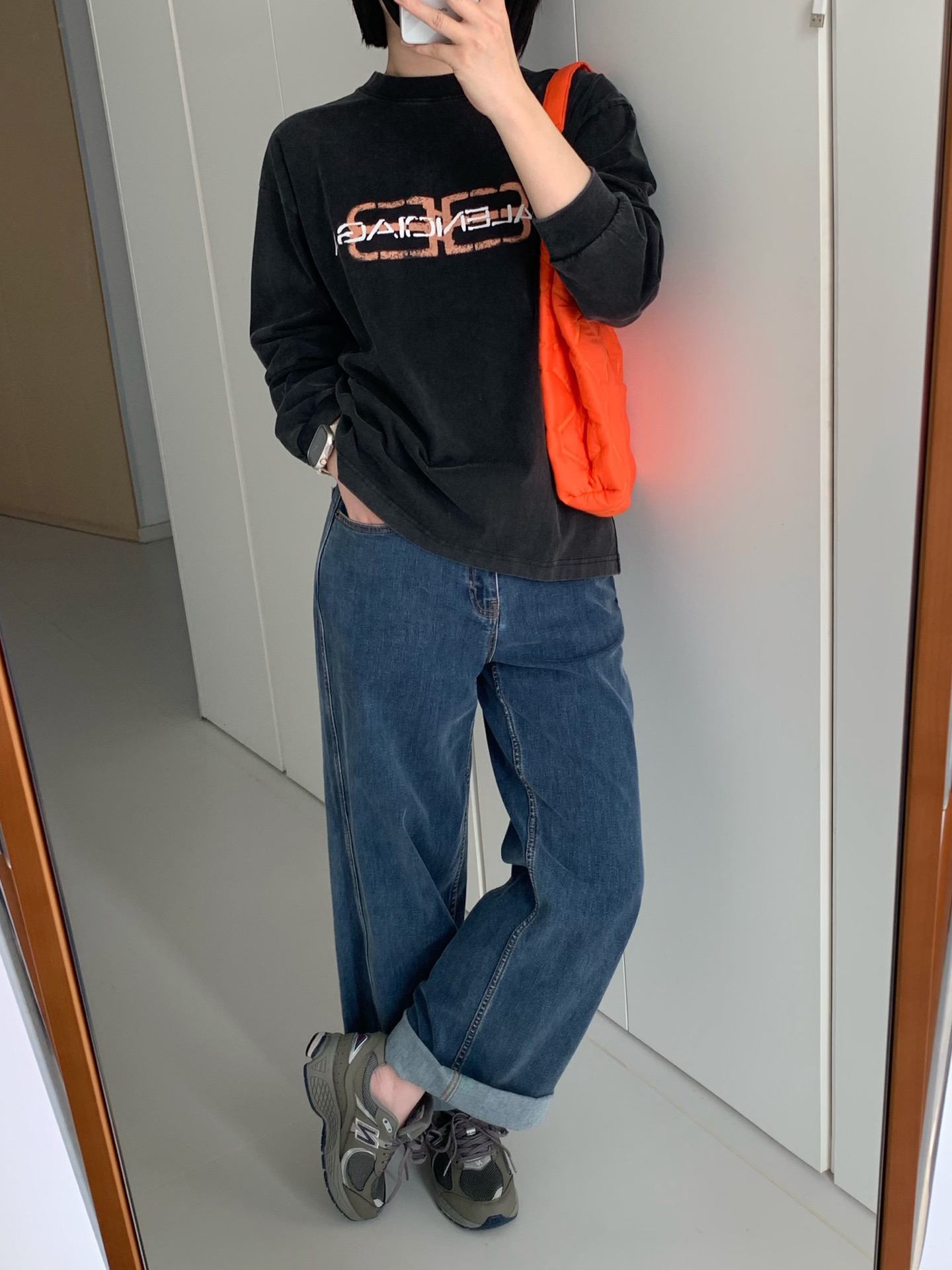 成衣洗水炒盐工艺 ,达到更加均匀水洗效果 ,轻微泛白的视觉,复古高级感拉满