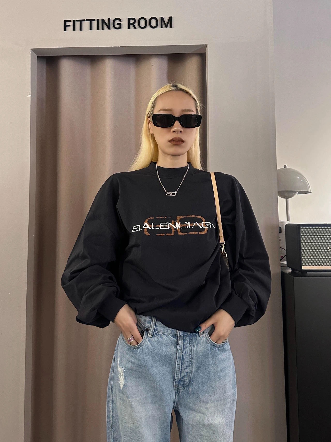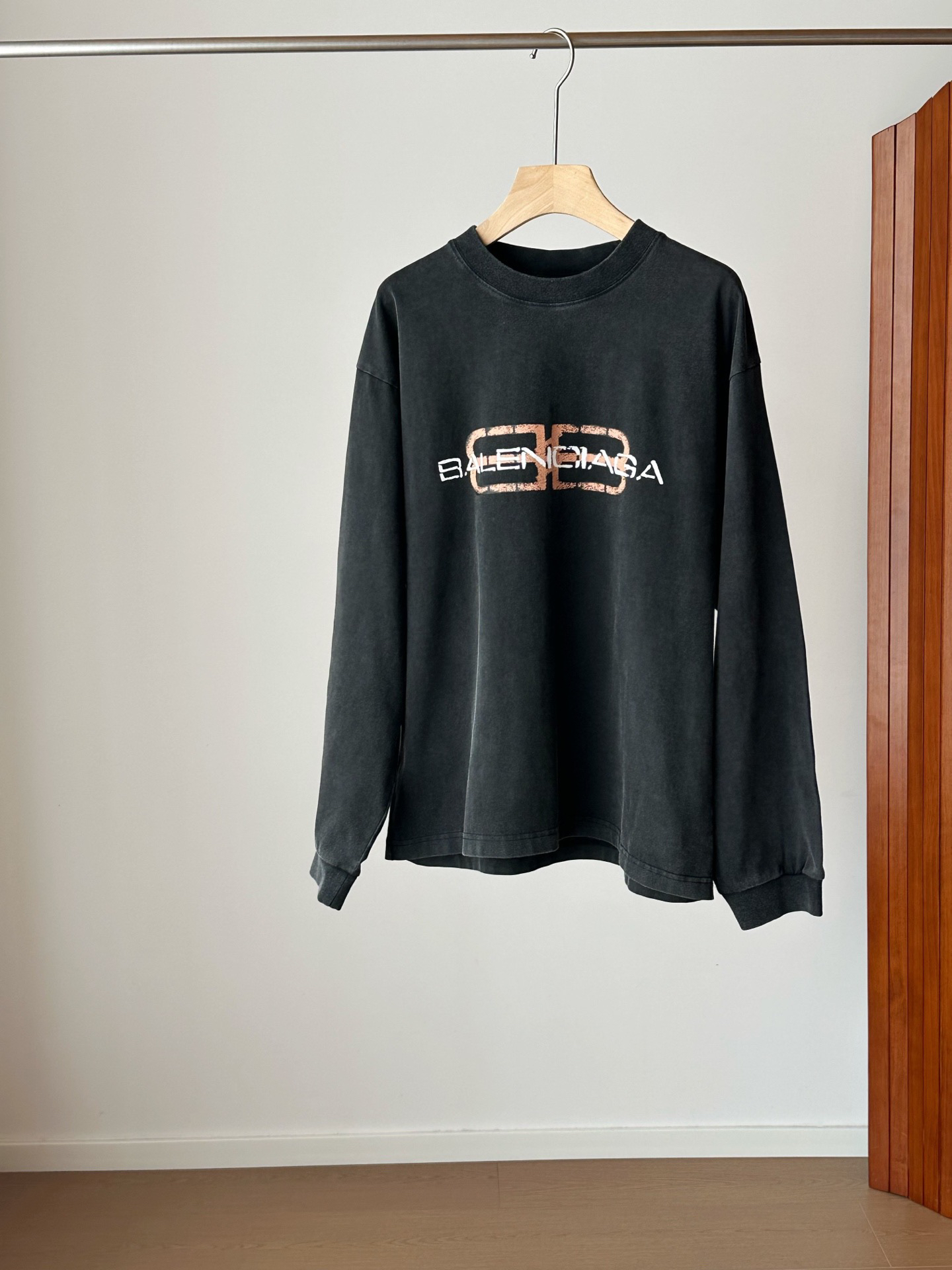 🦋巴黎世家 BB ICON STENCIL字母印花做旧长袖T