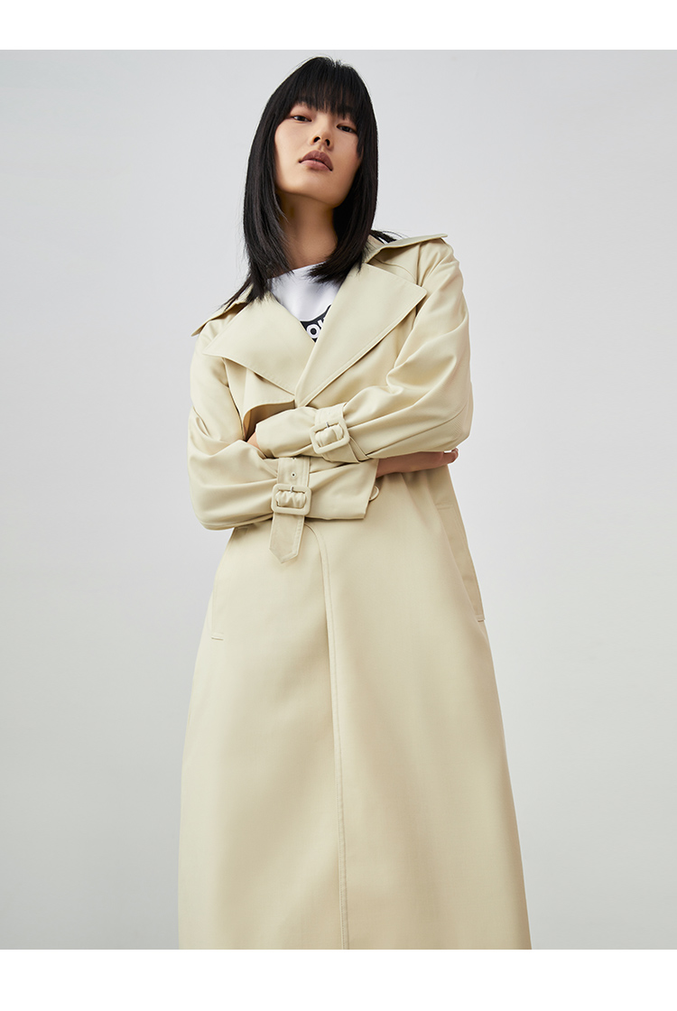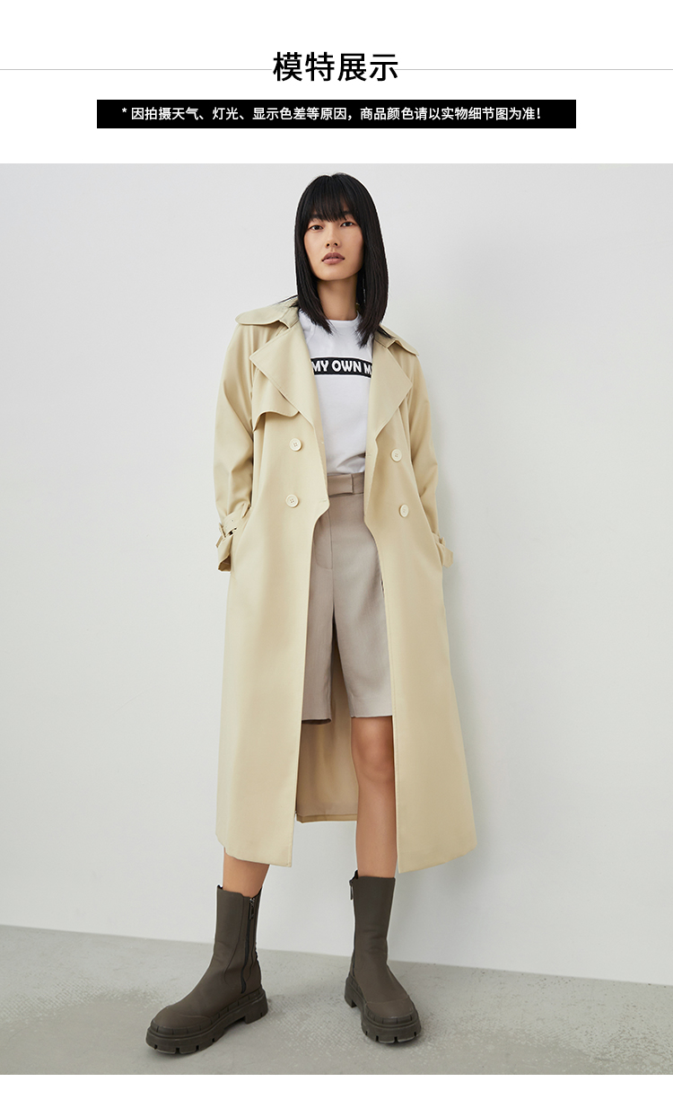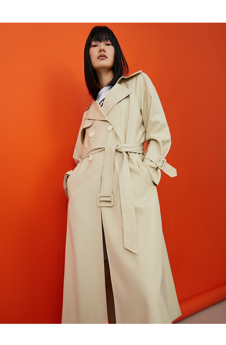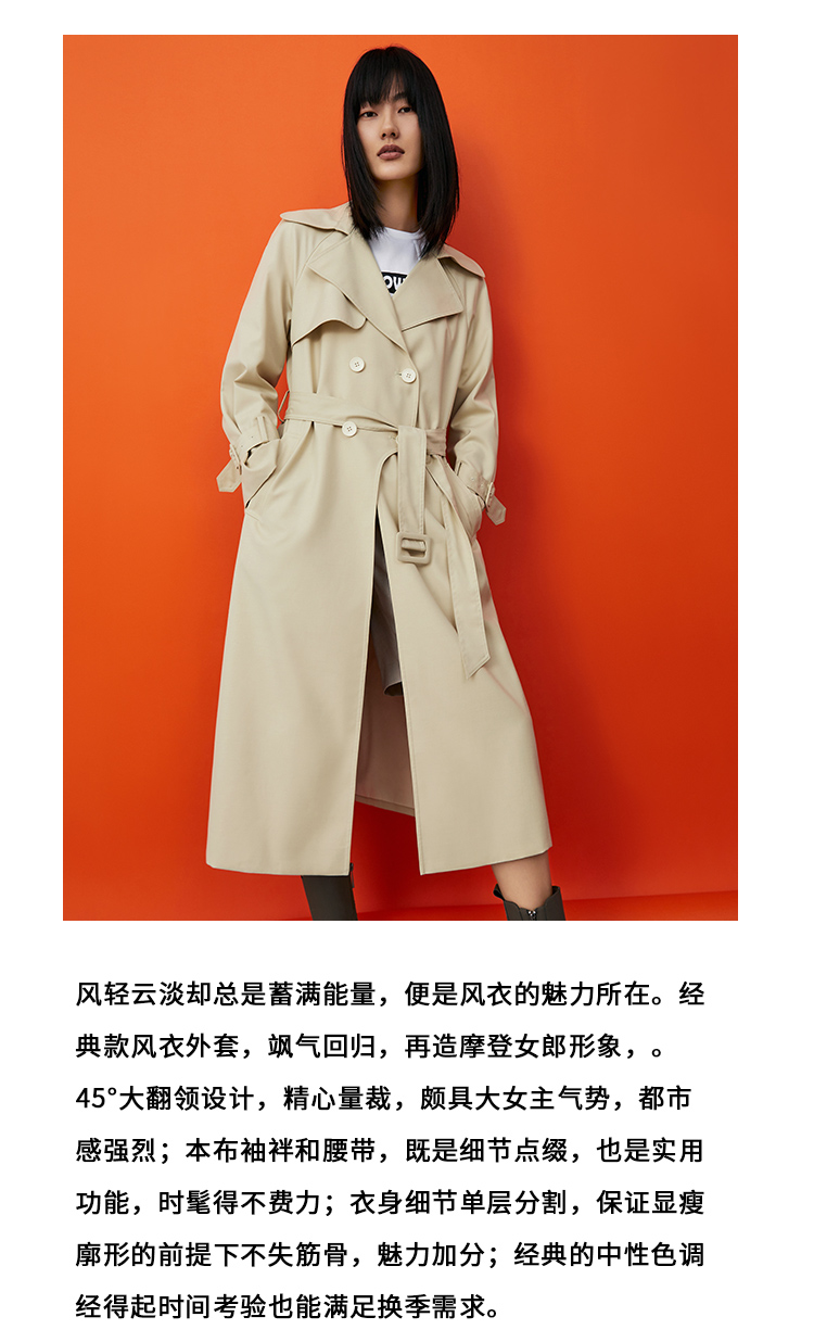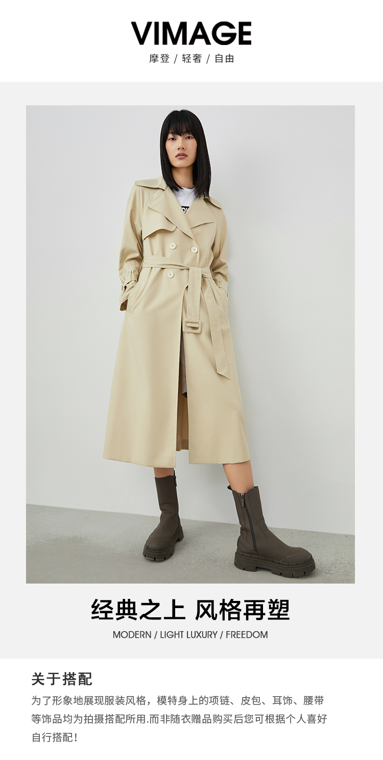 VIMAGE纬漫纪春季新款修身显瘦休闲系腰带风衣女外套V1704303