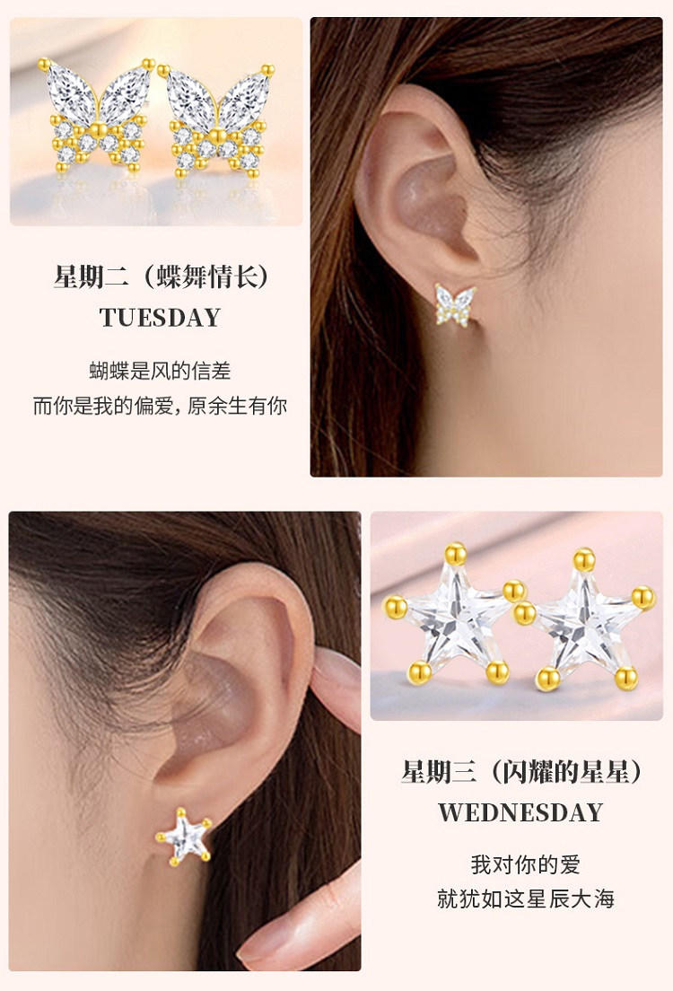 Winy s925银周间花语星期耳钉送女朋友/老婆/闺蜜生日节日礼物