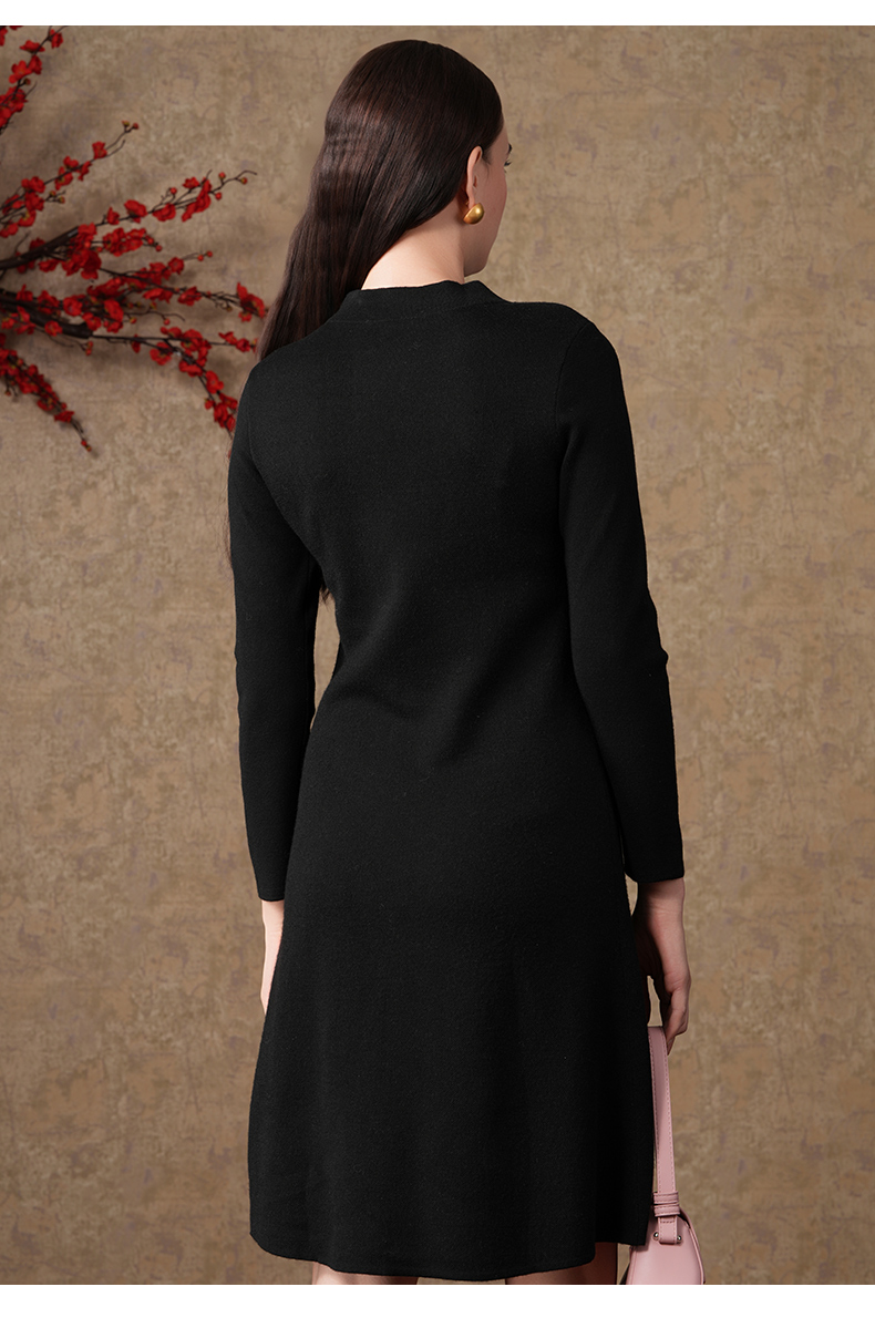乔万尼冬季新品A字羊毛连衣裙小立领收腰显瘦中长裙ES4M459