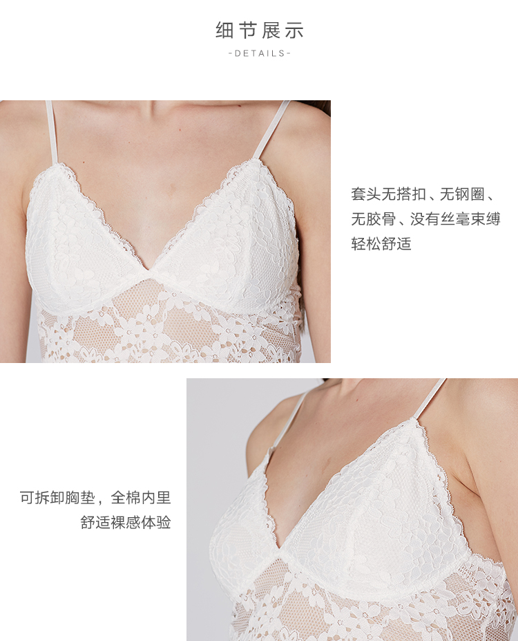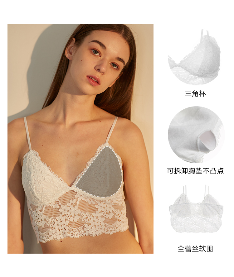 弗利少女法式蕾丝固定胸垫内衣 无钢圈小胸内衣