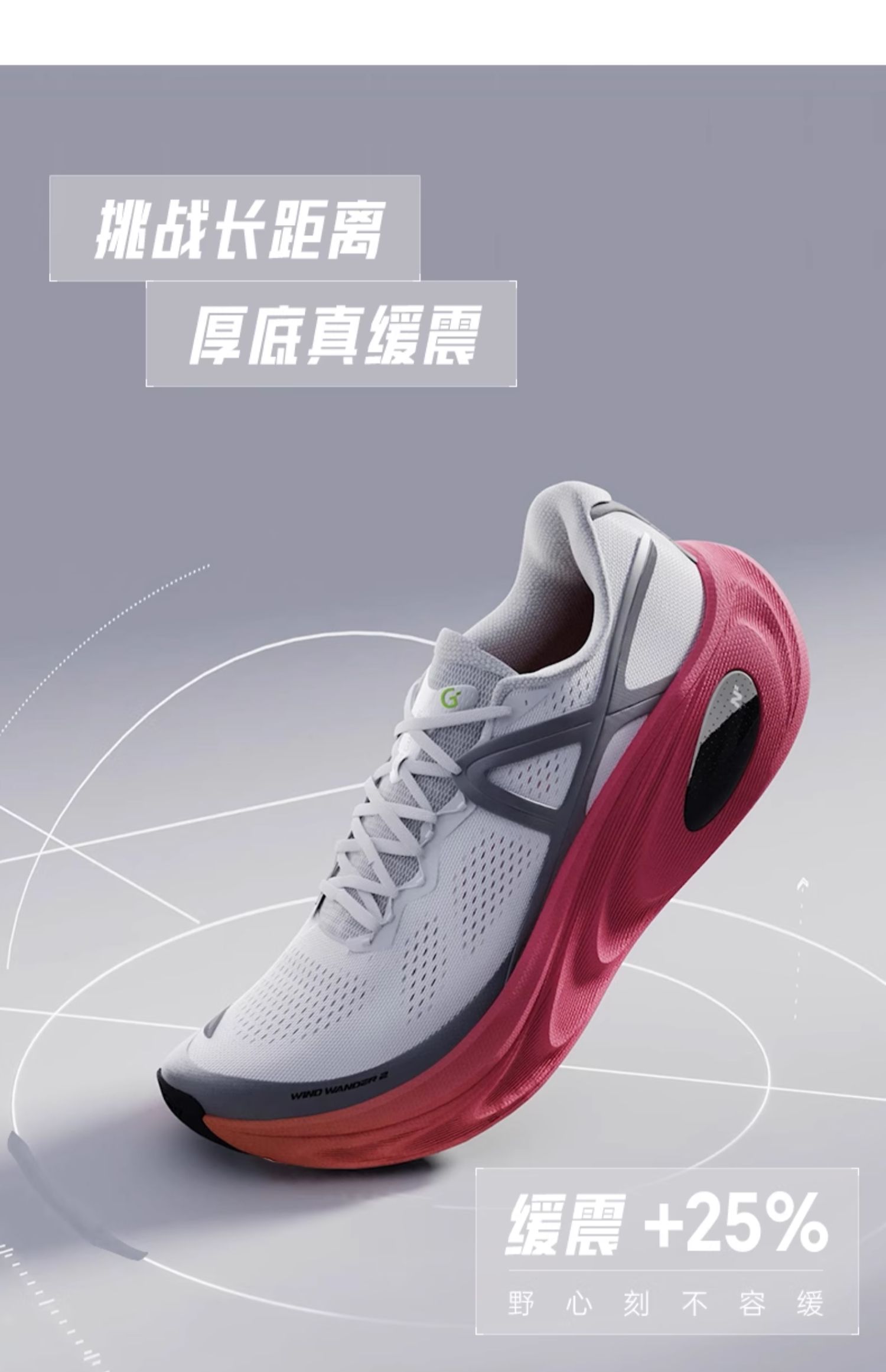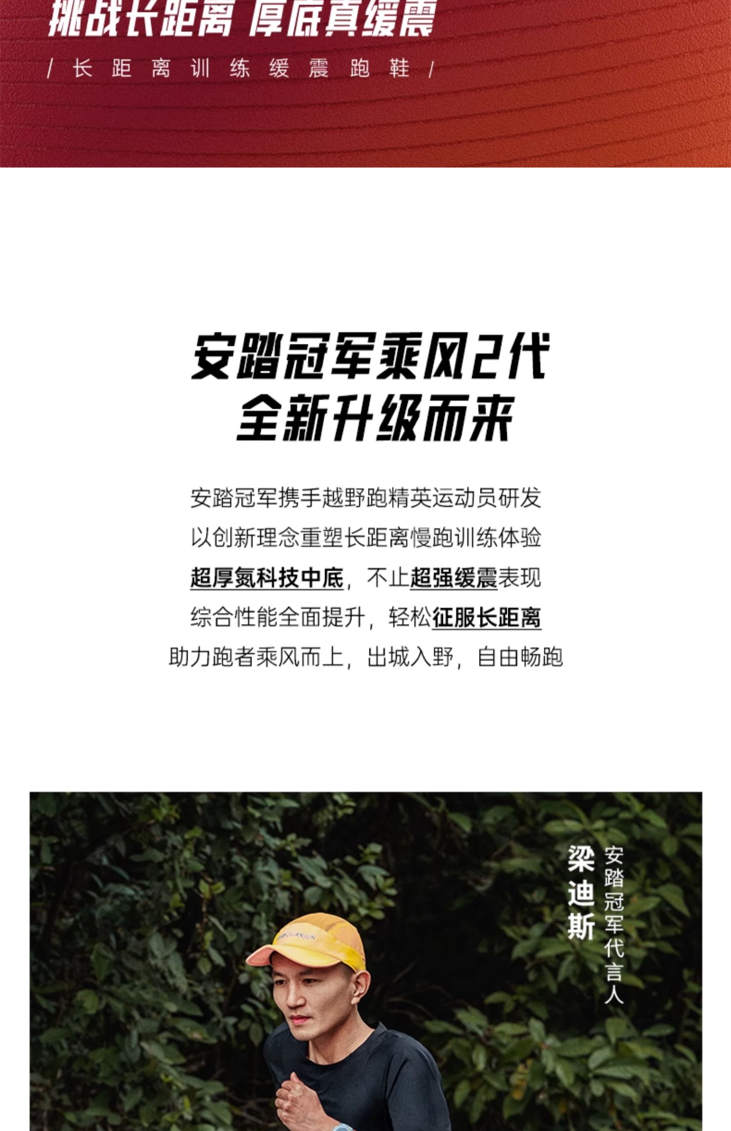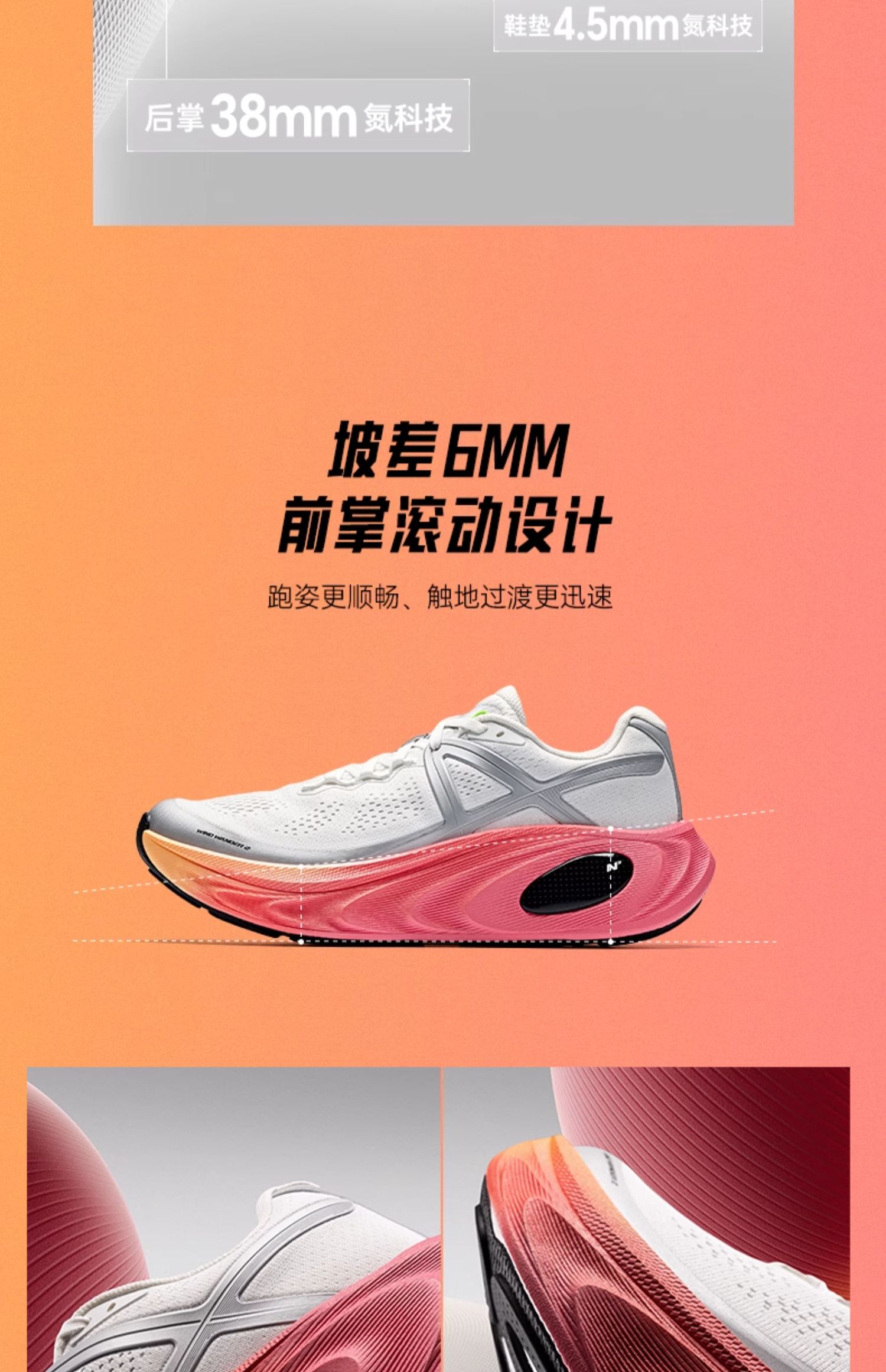 安踏冠军乘风2丨新款厚底轻便缓震透气通勤秋季女跑鞋 122525523A