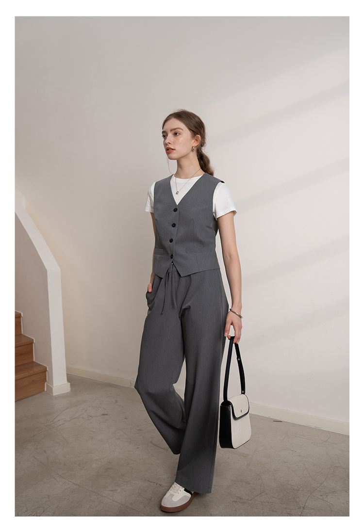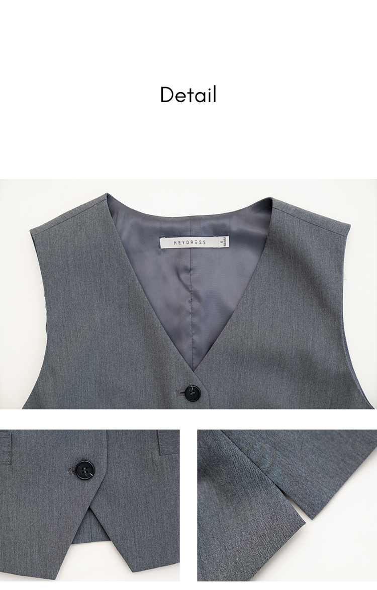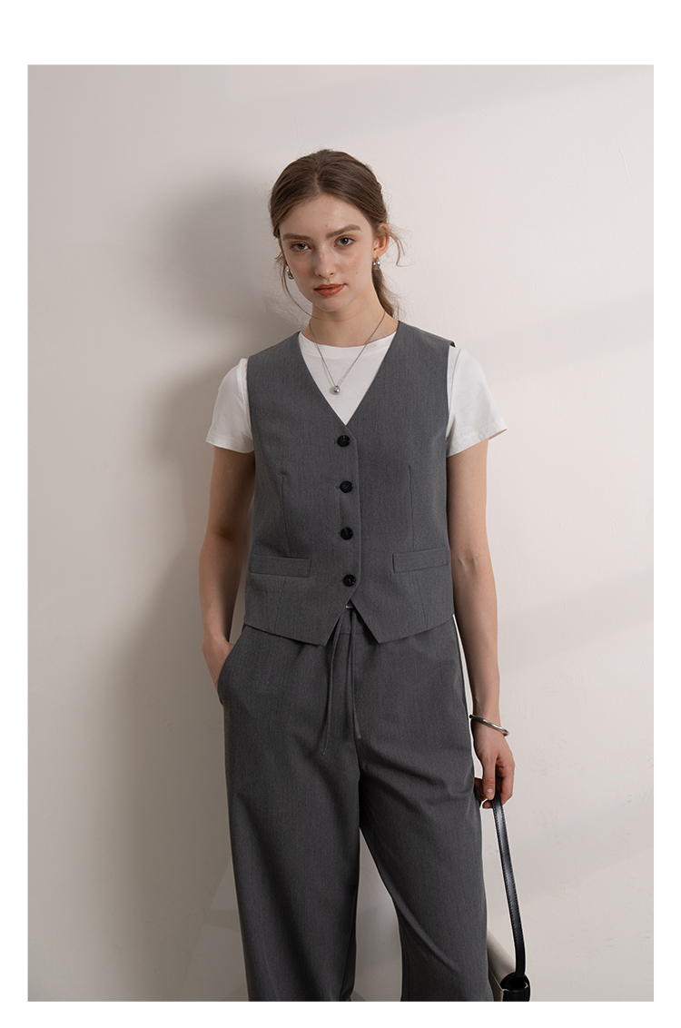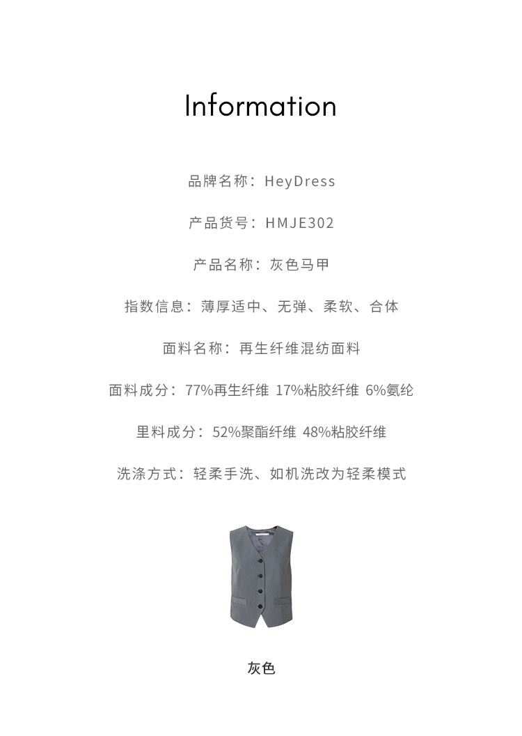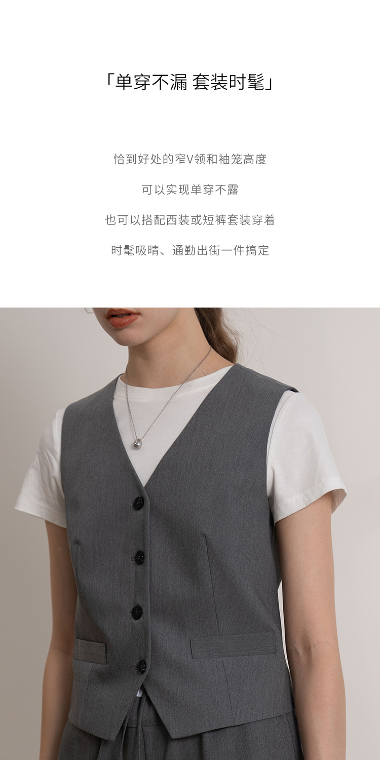 HeyDress灰色马甲女春秋复古V领叠搭无袖上衣通勤气质感内搭马夹