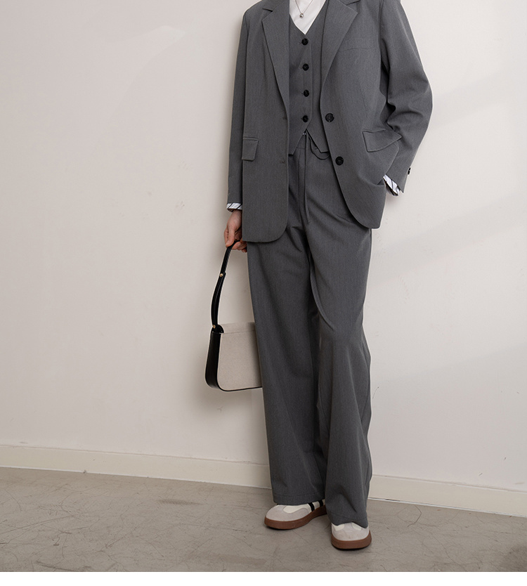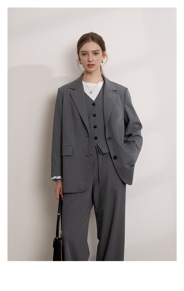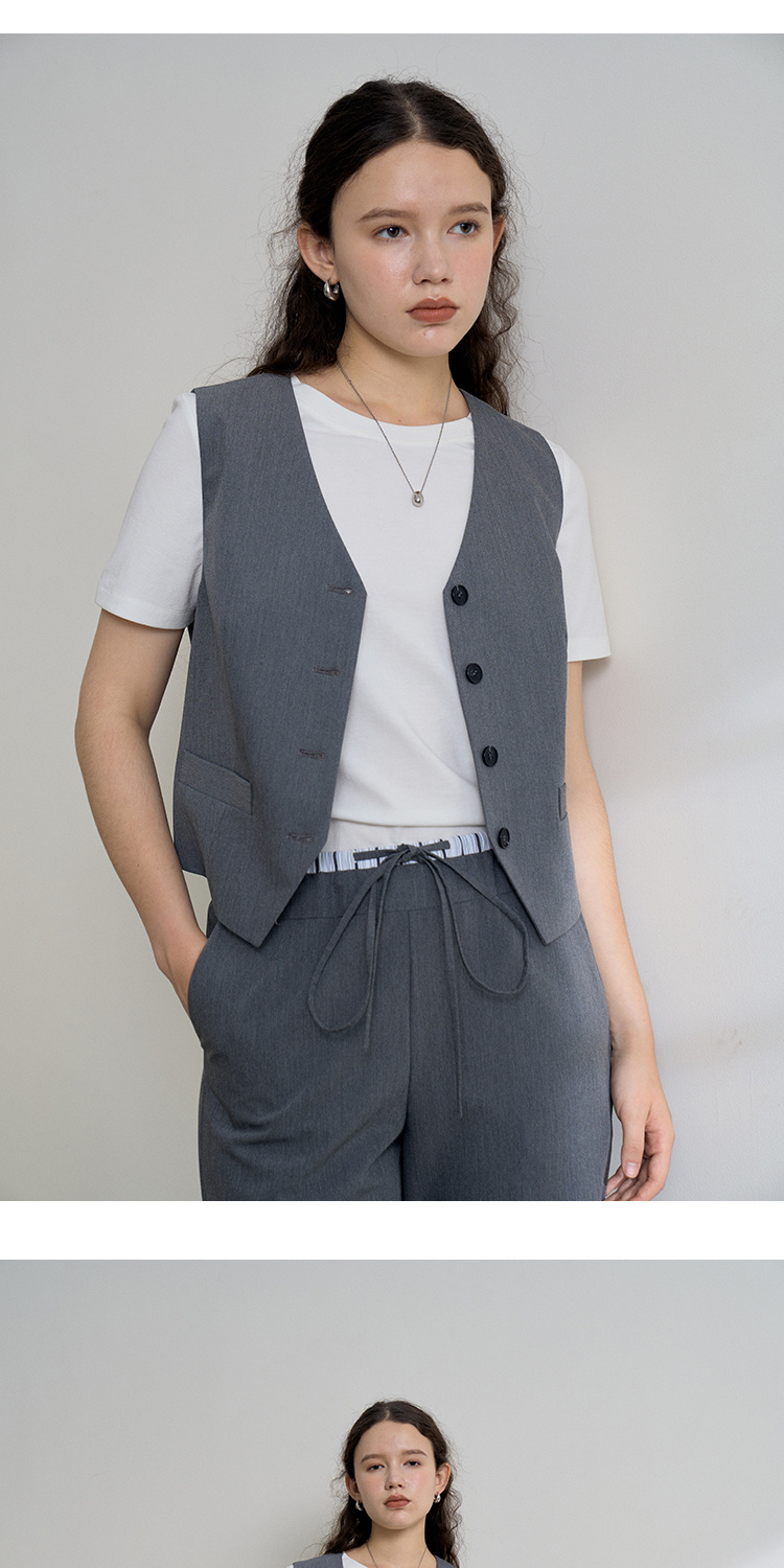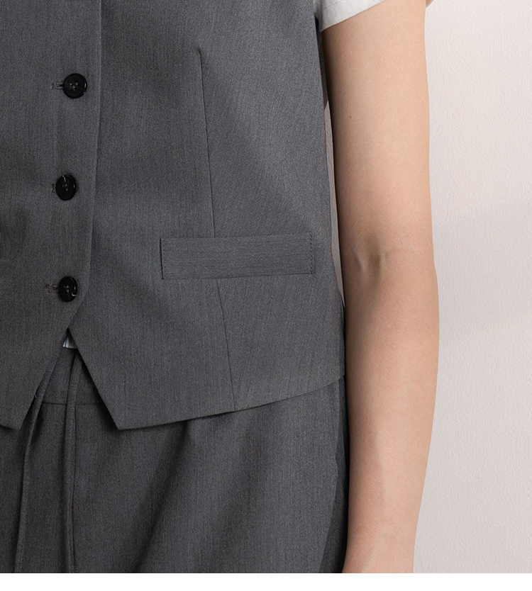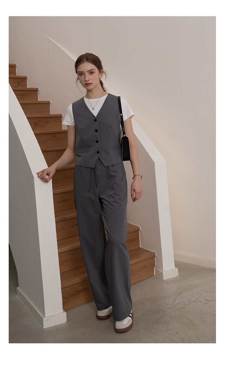 HeyDress灰色马甲女春秋复古V领叠搭无袖上衣通勤气质感内搭马夹