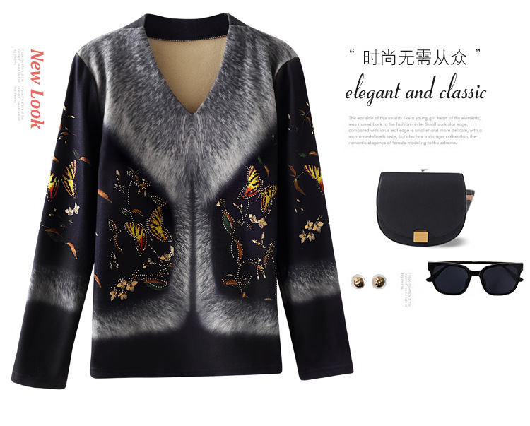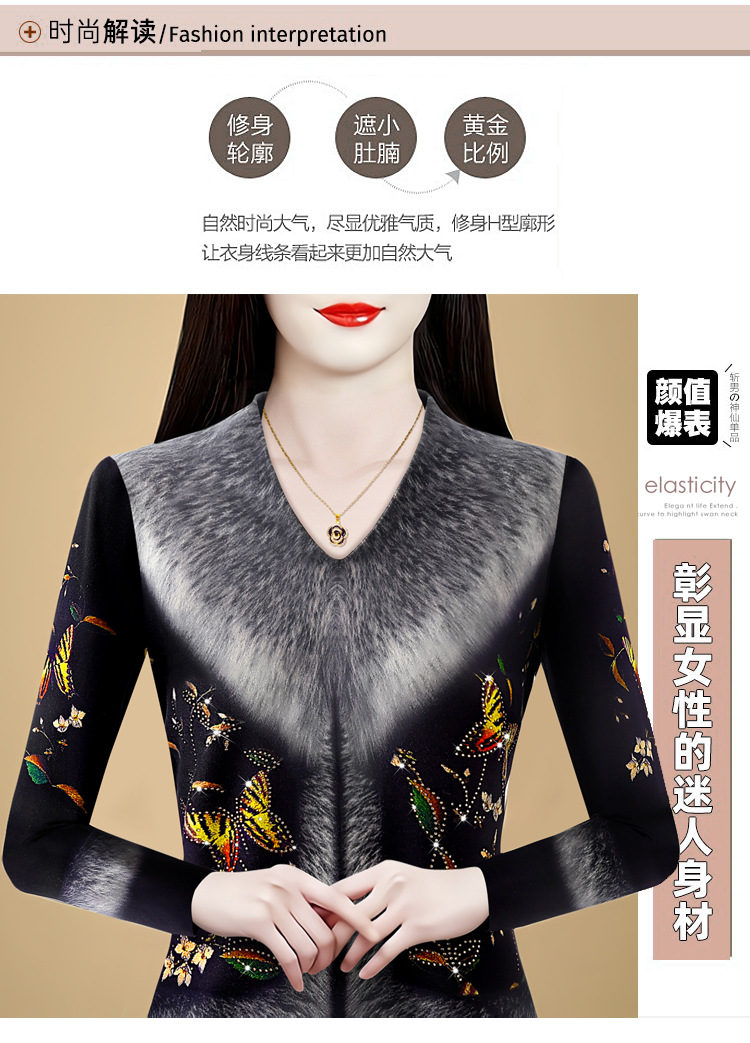 KQL B41N6438烫钻时尚洋气显瘦显白减龄气质上衣