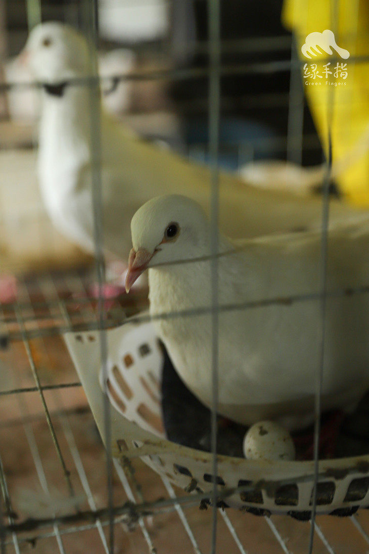 鸽蛋也有种鸽孵化,没有使用孵化机,小鸽子也由种鸽喂养,鸽子自然产蛋,不会透支种鸽生命力。