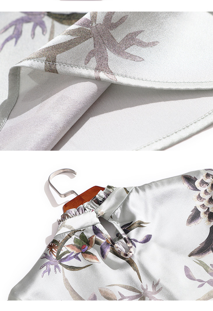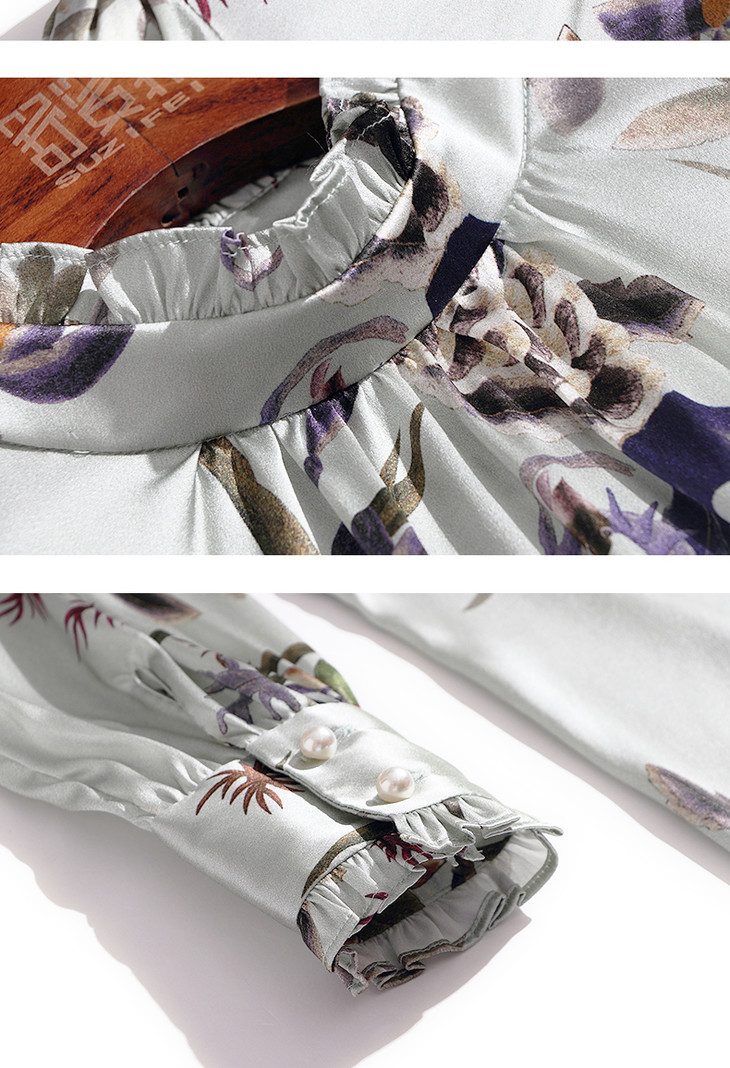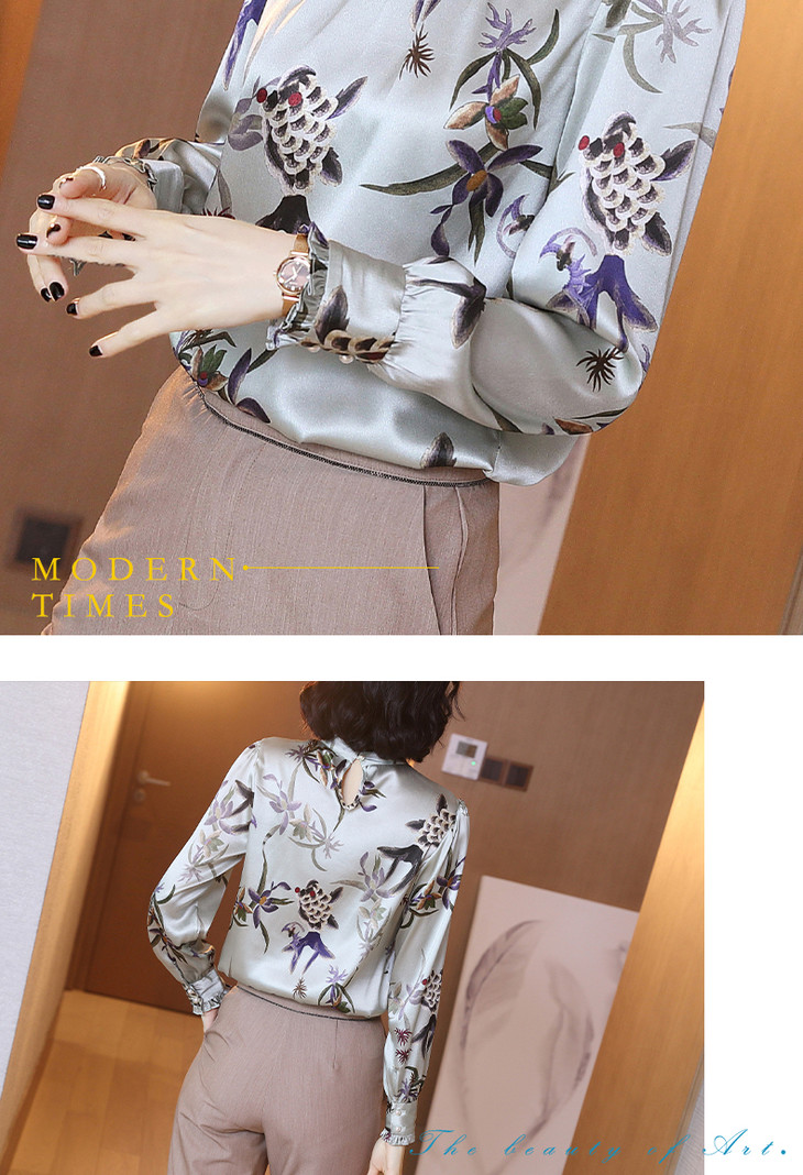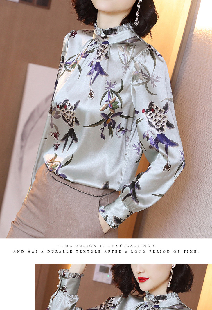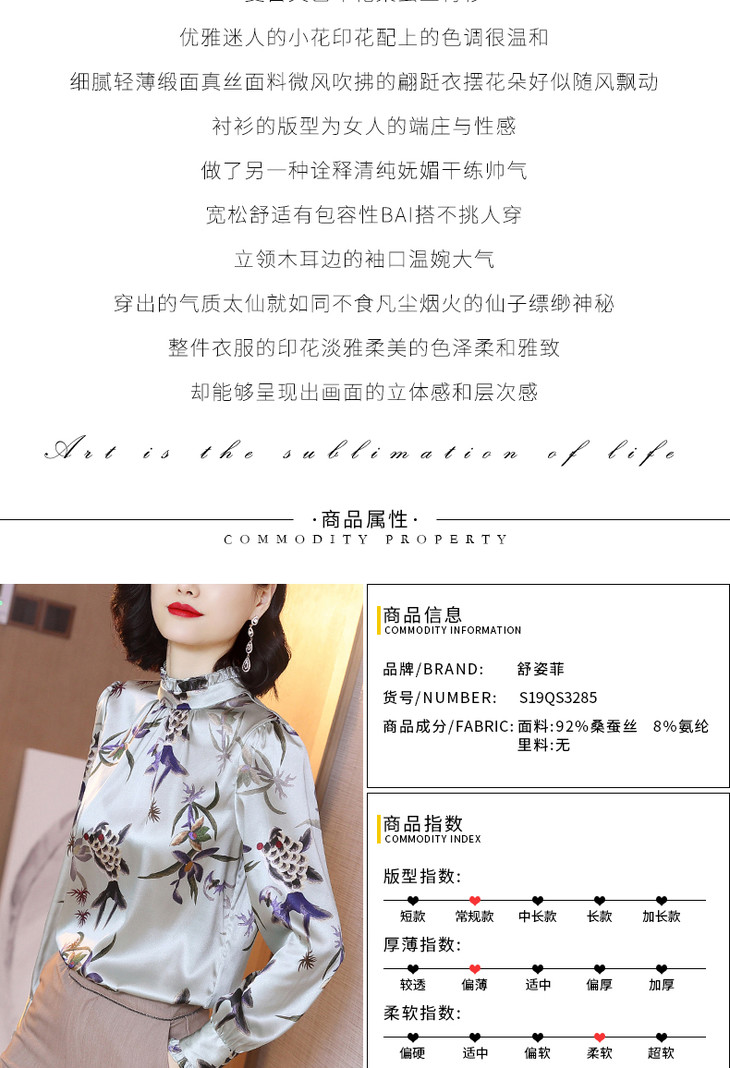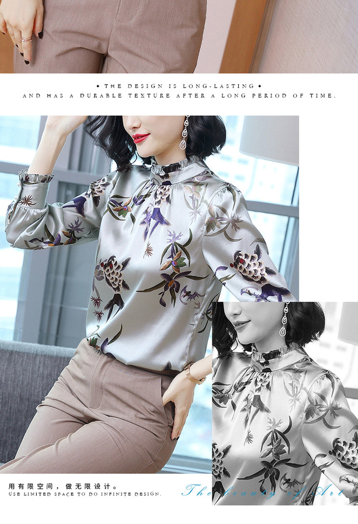 HT 6952 新款木耳边立领修身印花衬衣2019