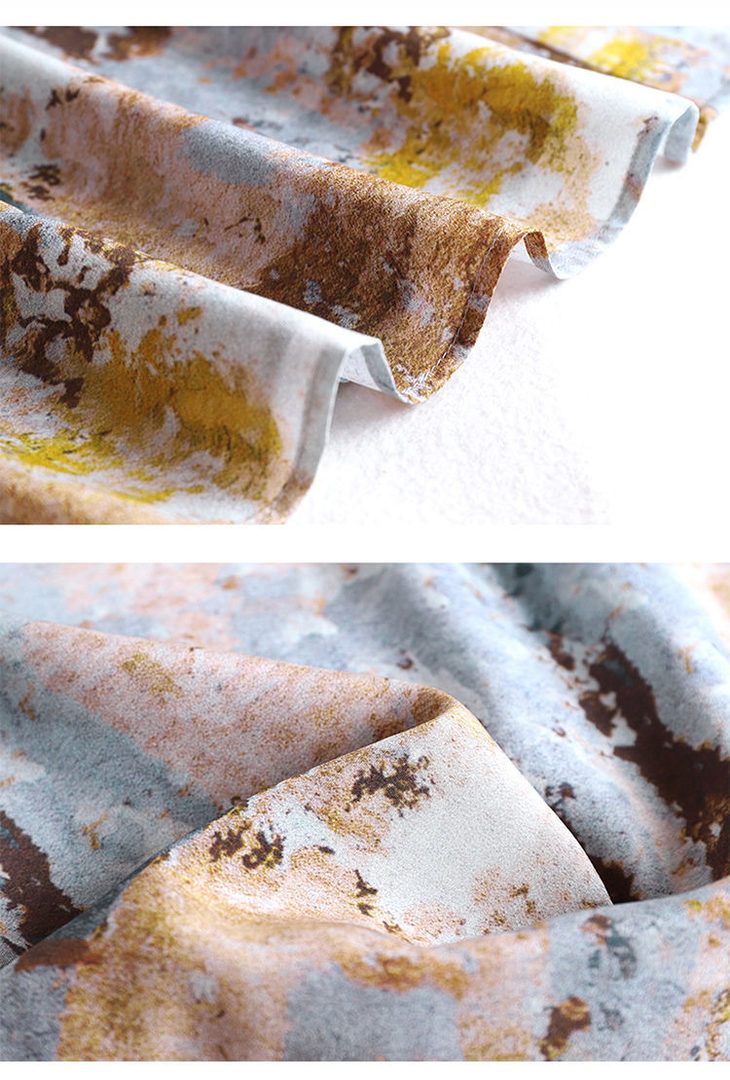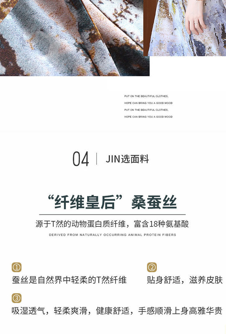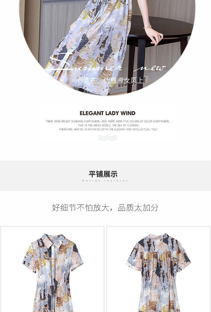 MQN210807新款时尚优雅气质收腰翻领短袖中长款真丝印花连衣裙