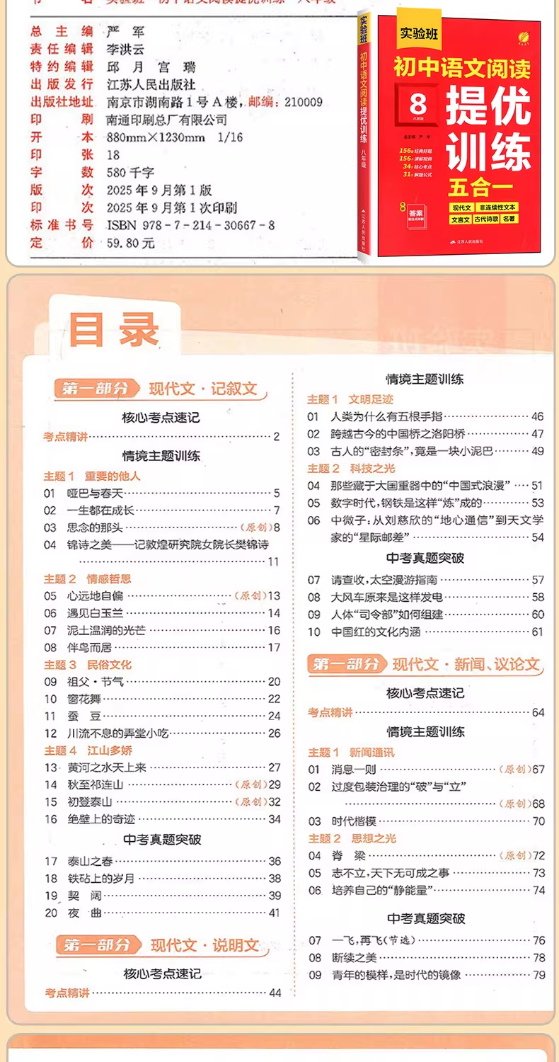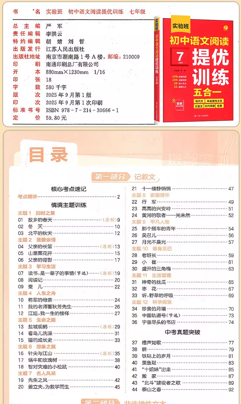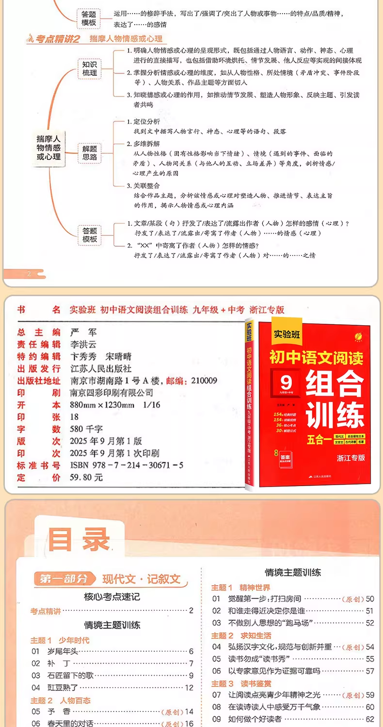 26版 实验班初中语文阅读组合训练五合一 7-9年级 六折优惠