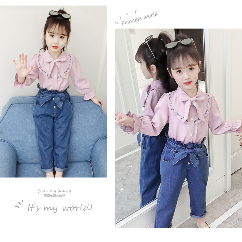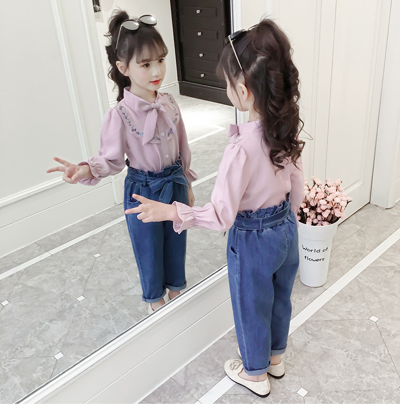 YX-TZ559新款韩版中大女童牛仔裤洋气两件套TZW