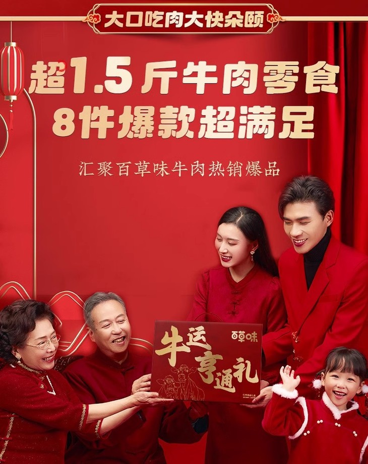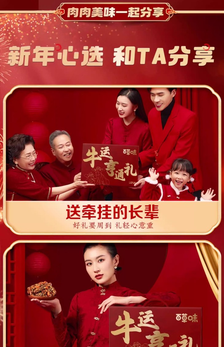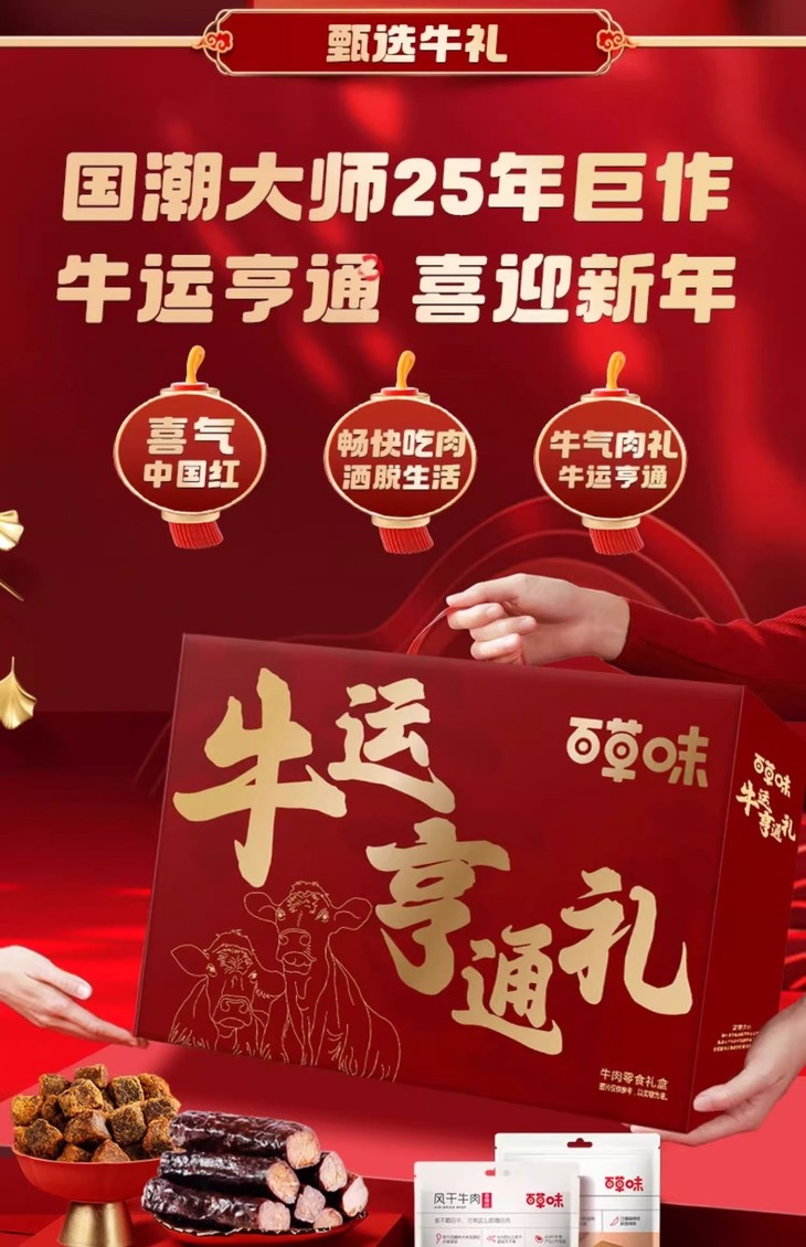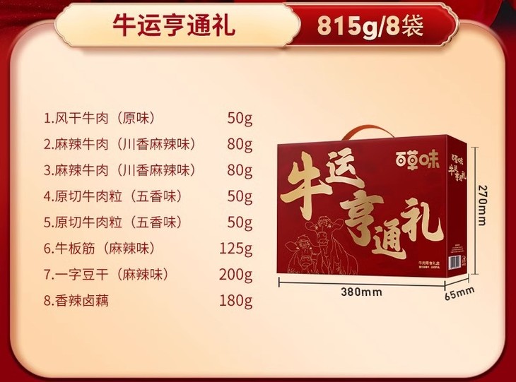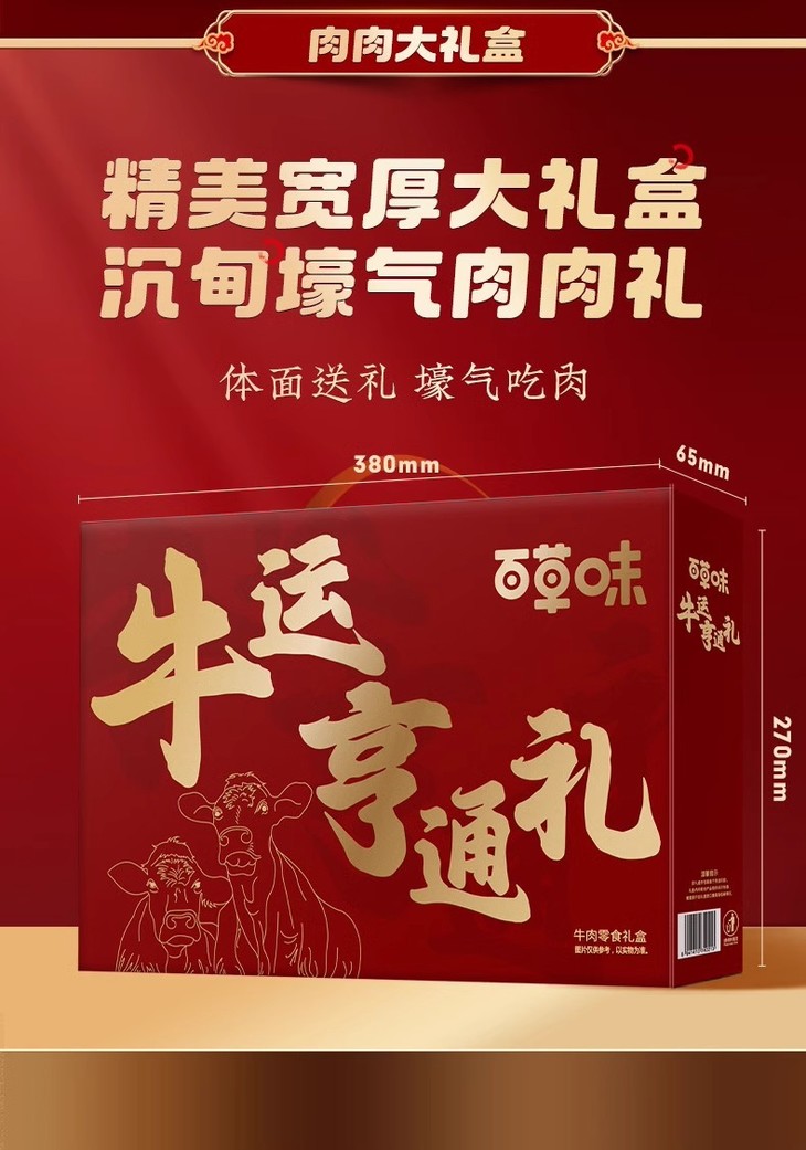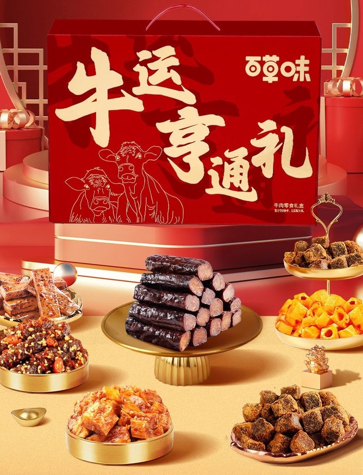 百草味肉肉礼盒815g牛运亨通礼盒大礼包牛肉零食肉干解馋夜宵食品