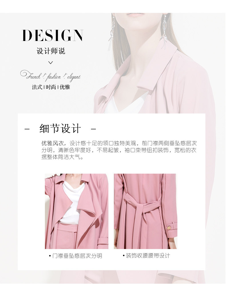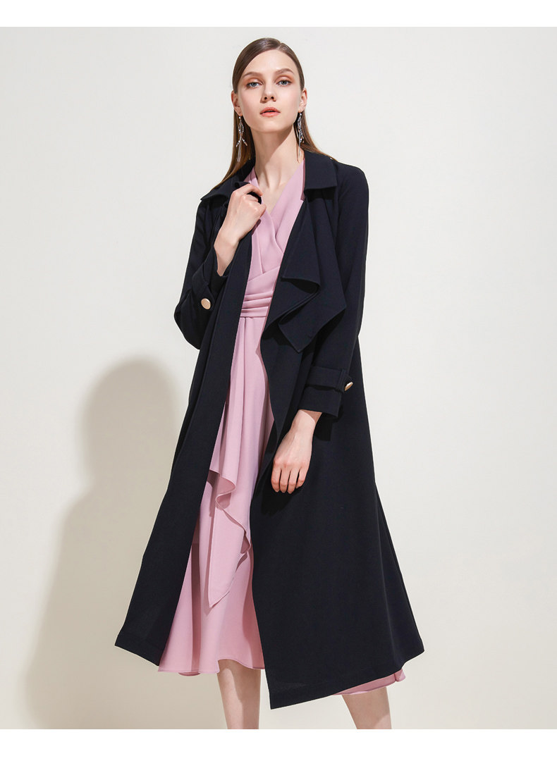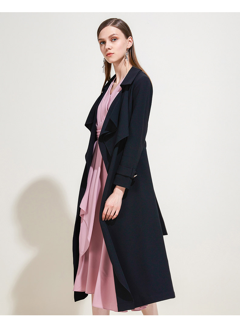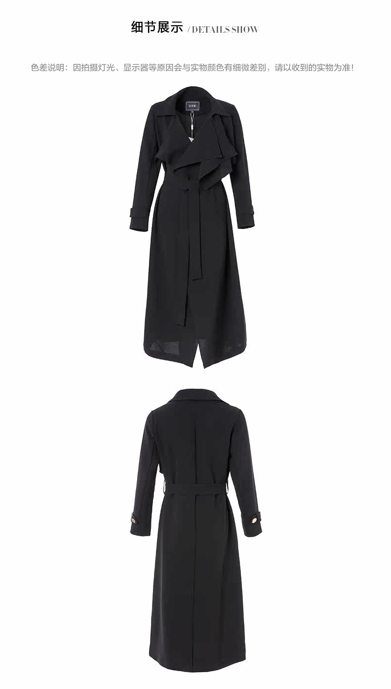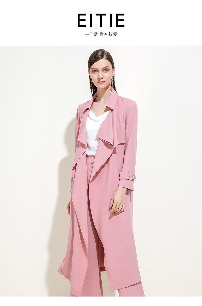 EITIE爱特爱品牌女装春夏纯色宽松通勤百搭优雅风衣中长款5904603