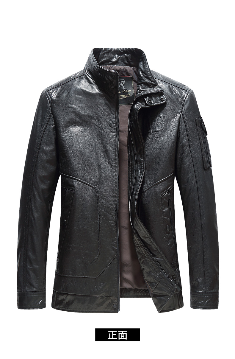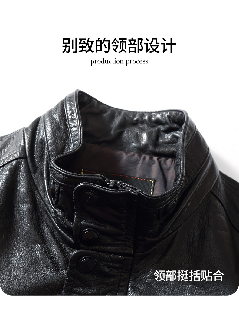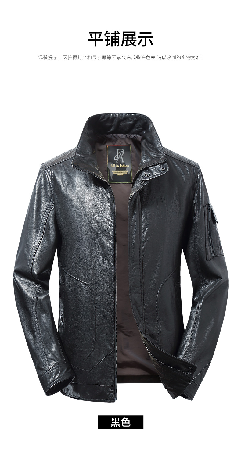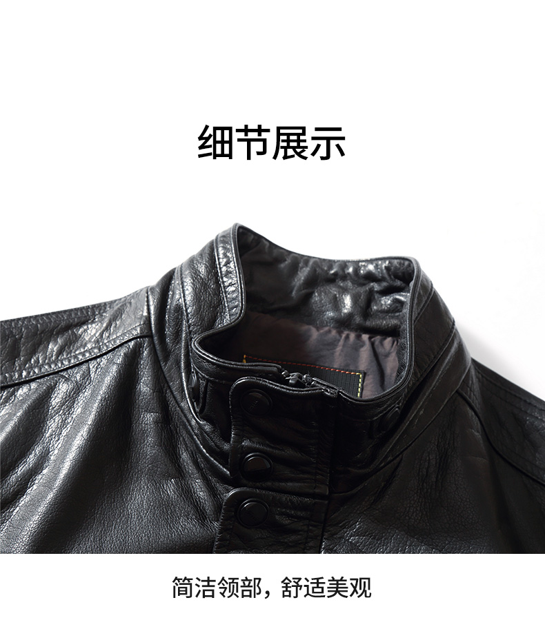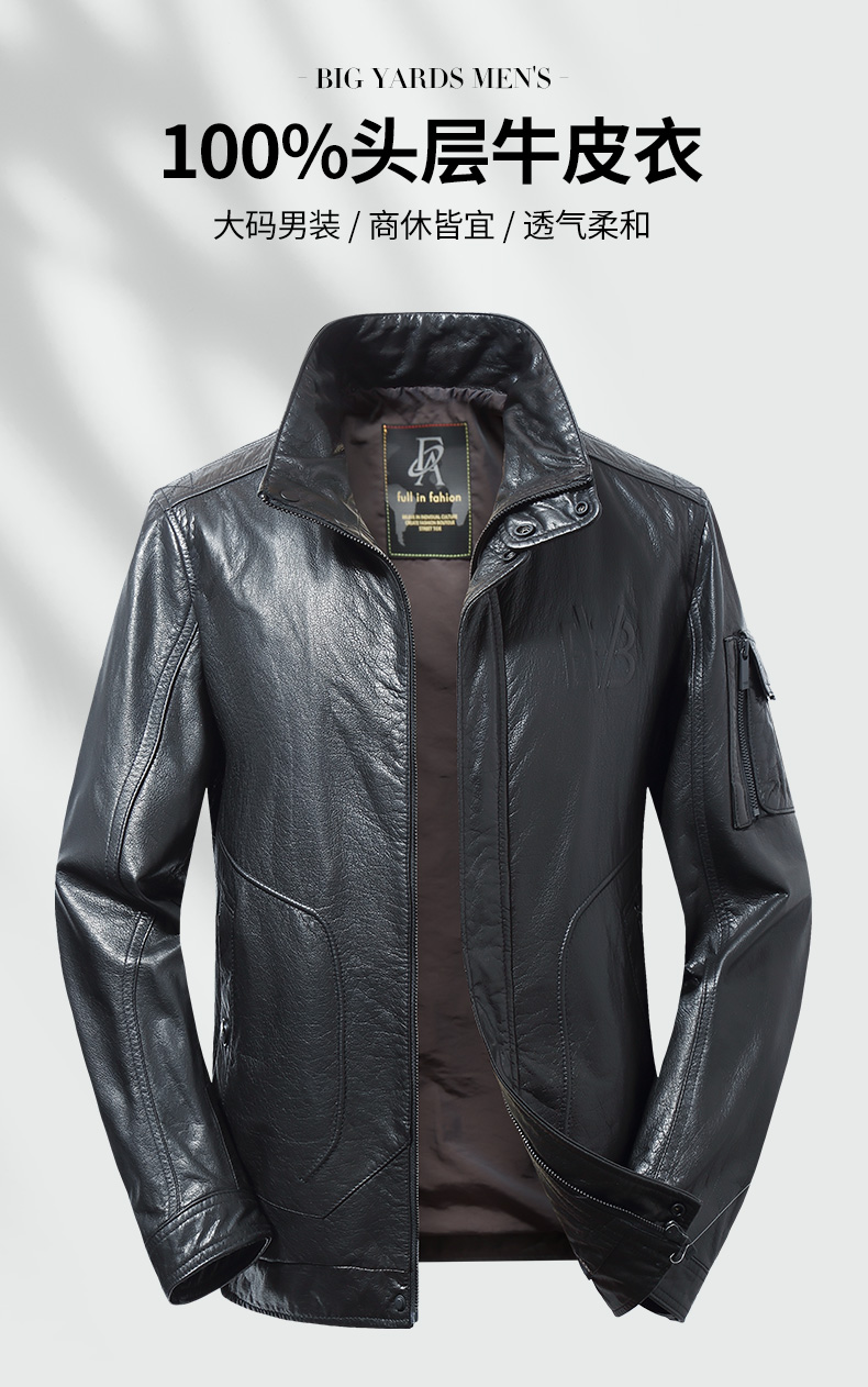 【真皮DSZ】大依优型大码立领皮牛皮夹克外套休闲简约大号皮夹克真皮皮草加肥加大
