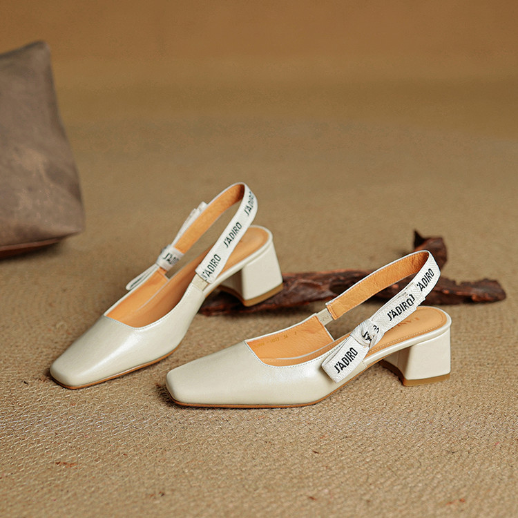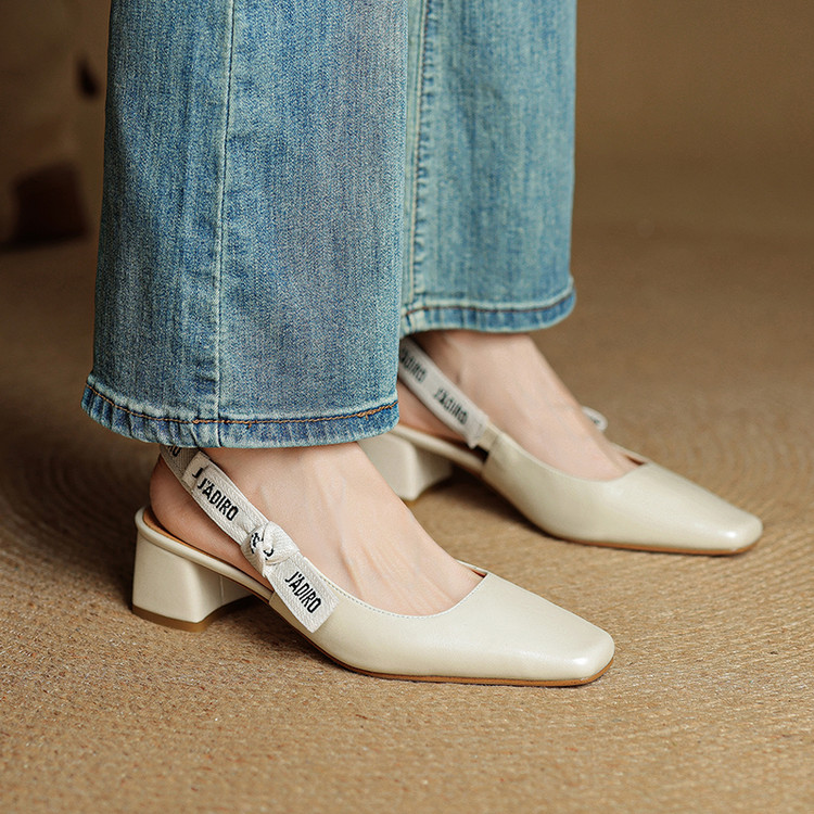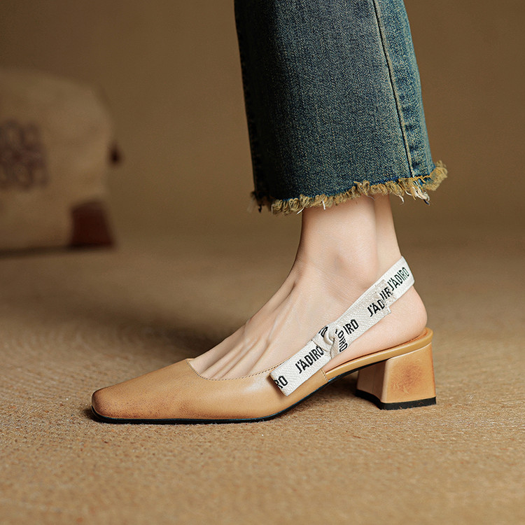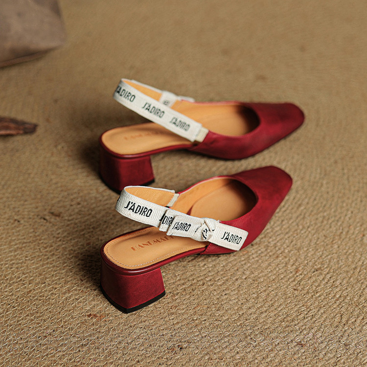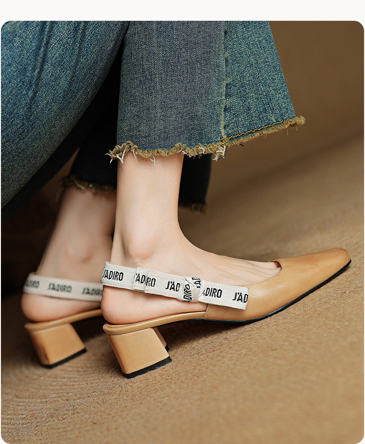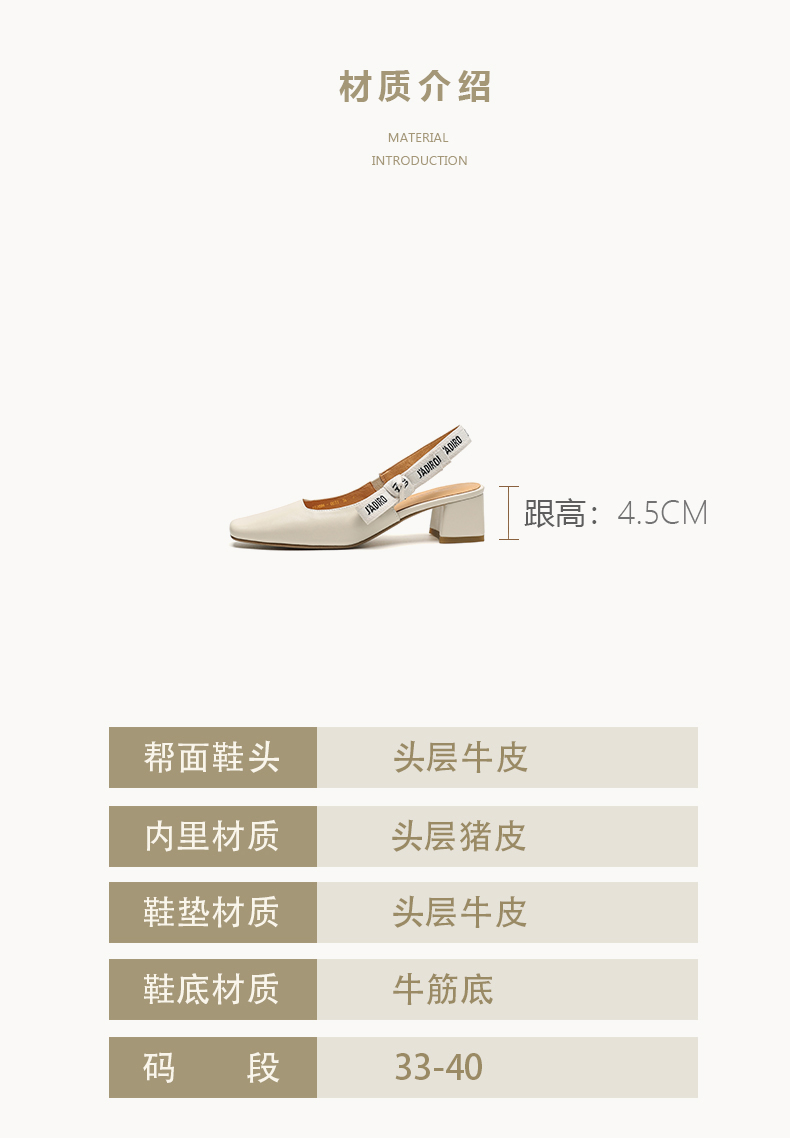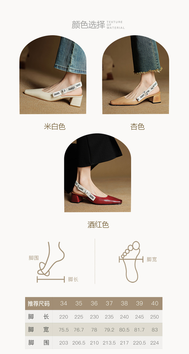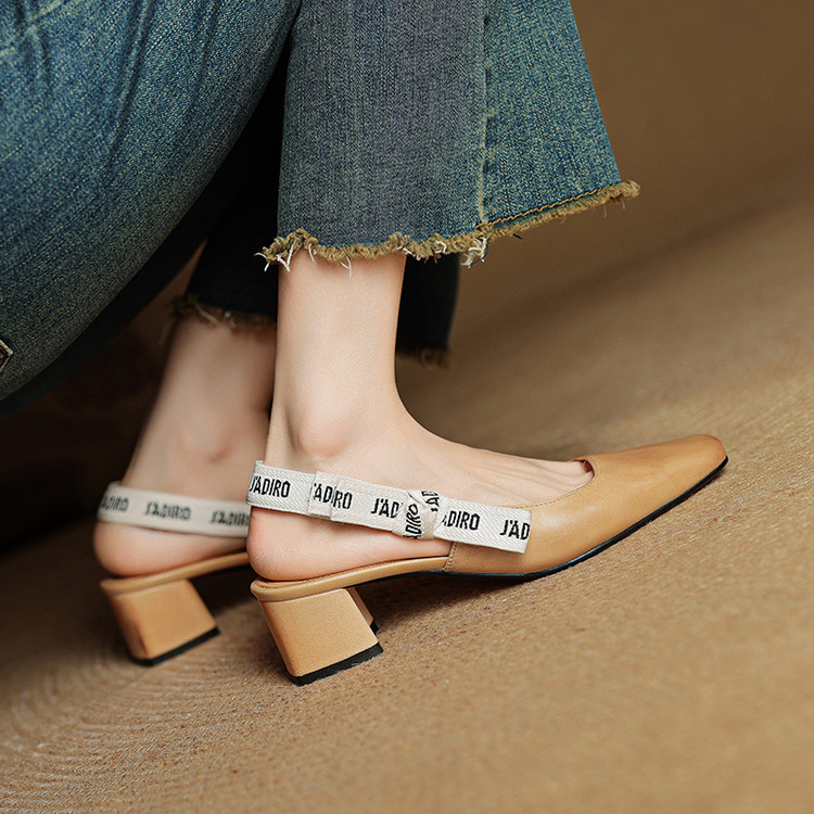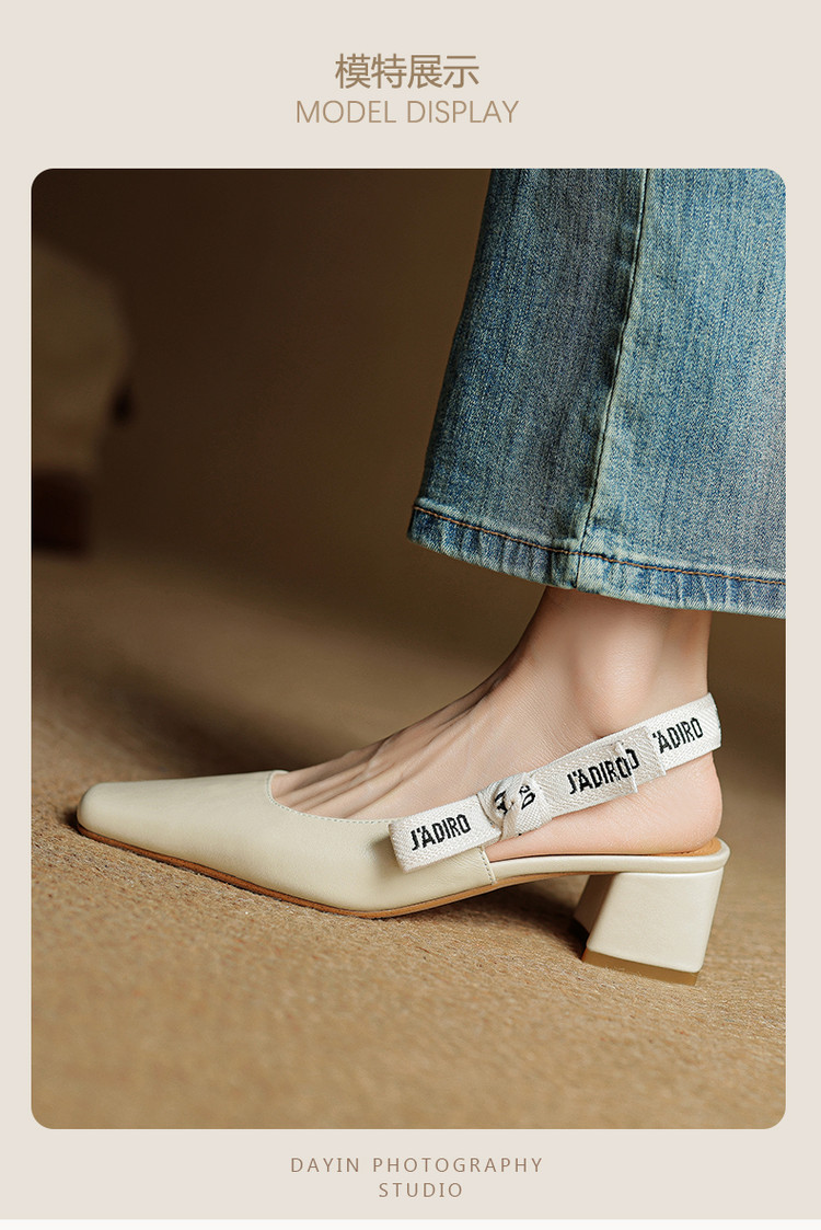 【预售5天】夏季新款百搭粗跟字母凉鞋女包头中跟后空浅口高跟鞋女HB&0033