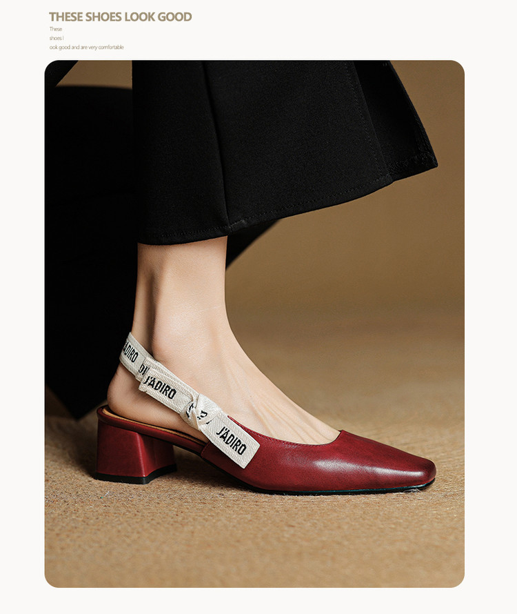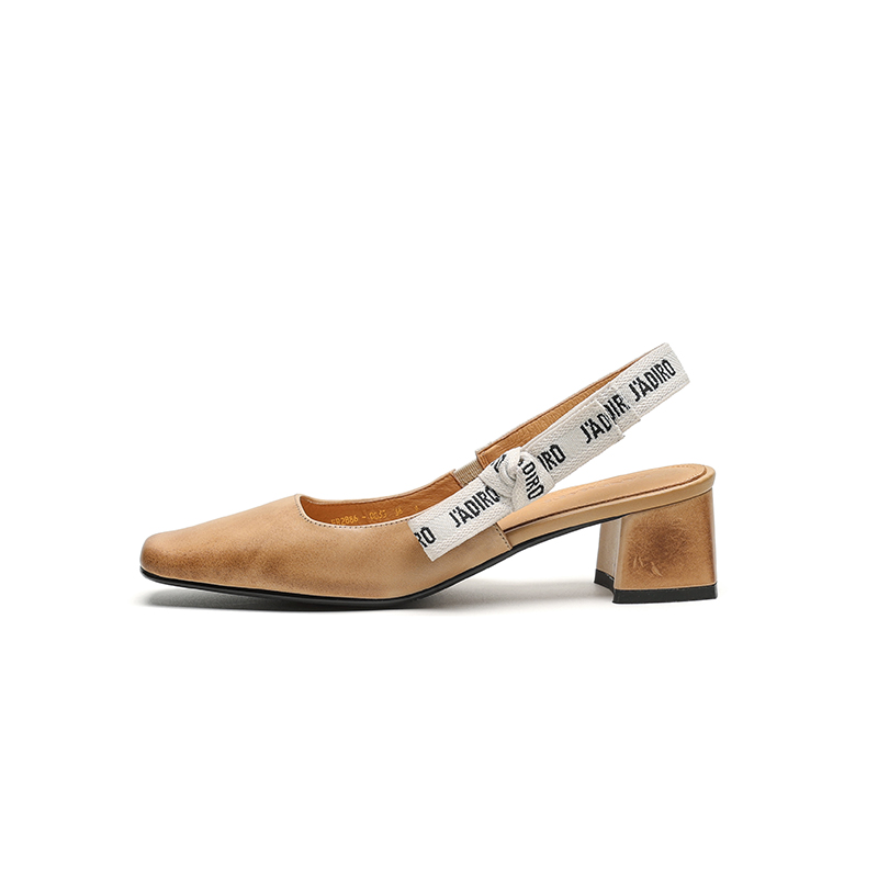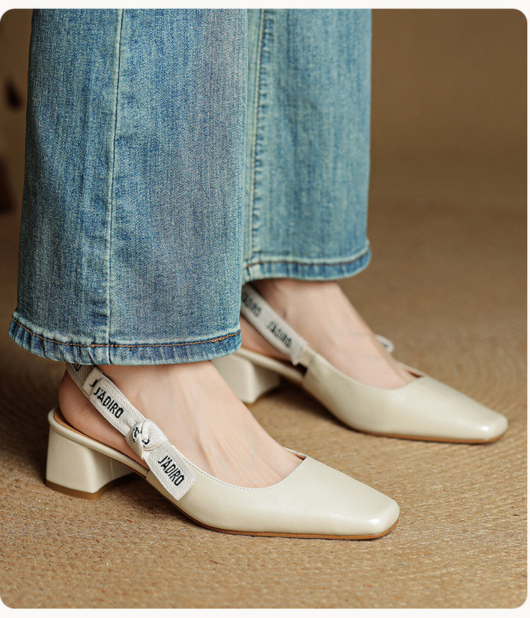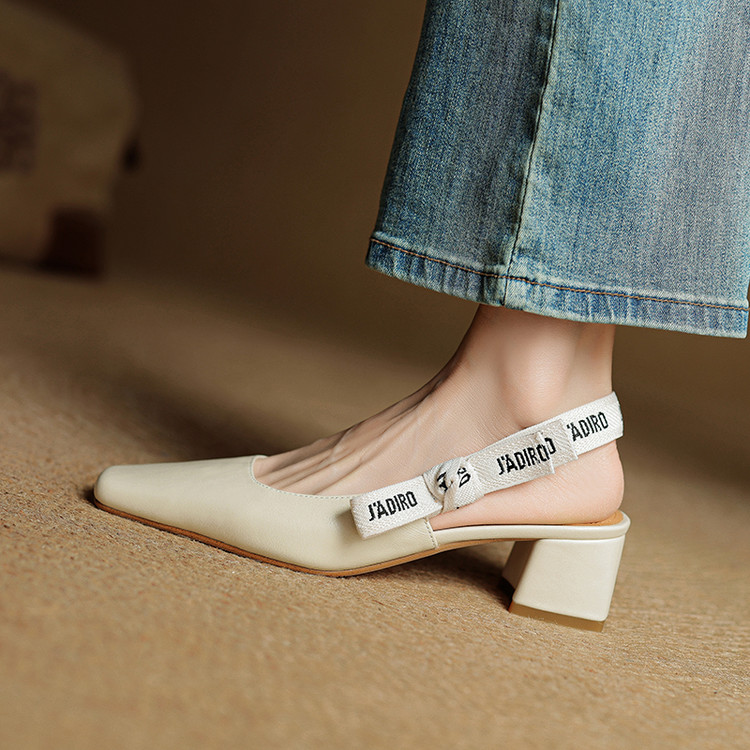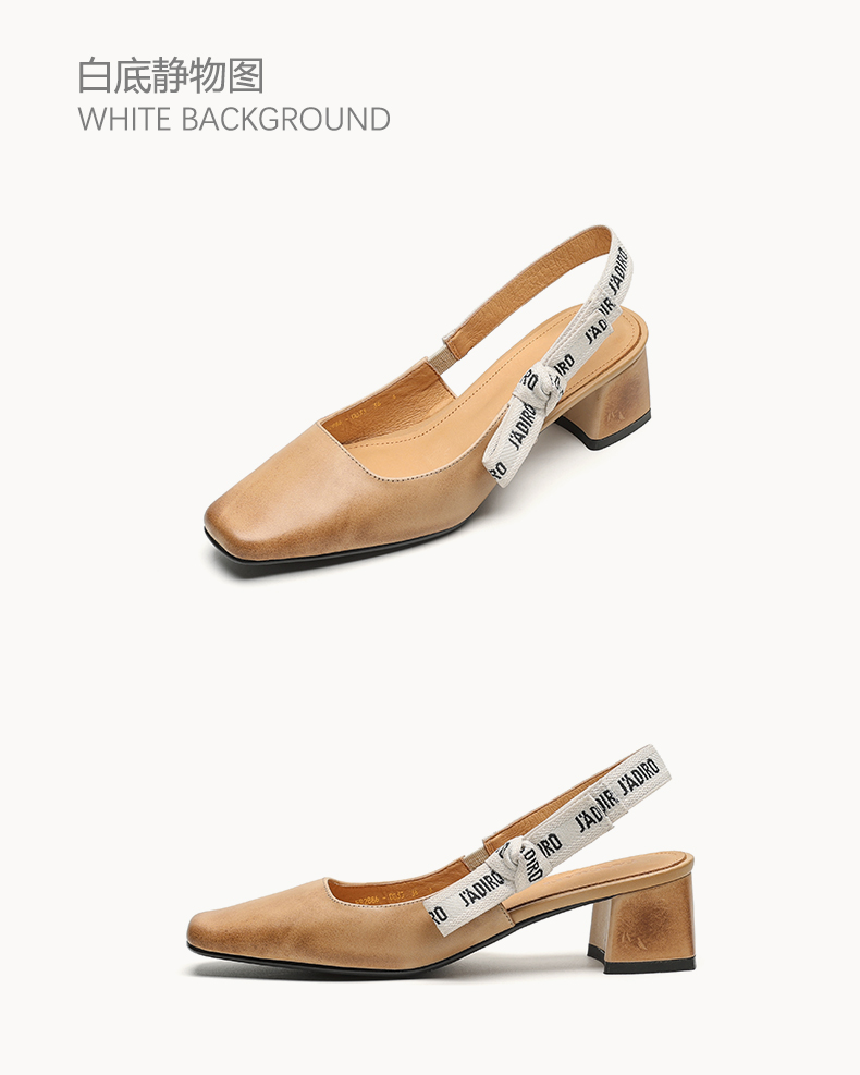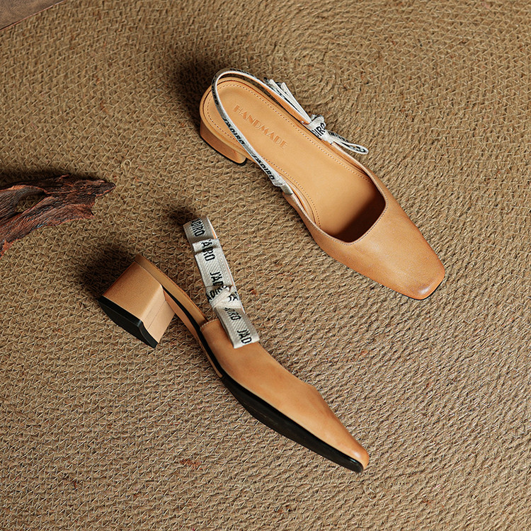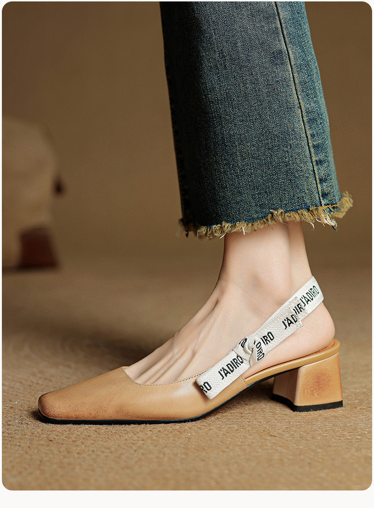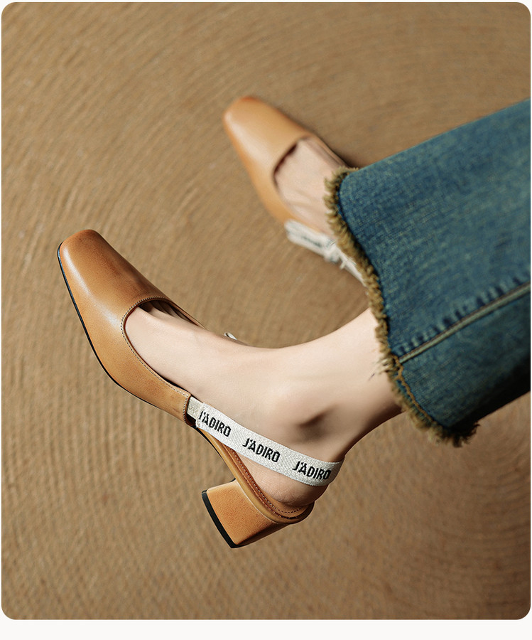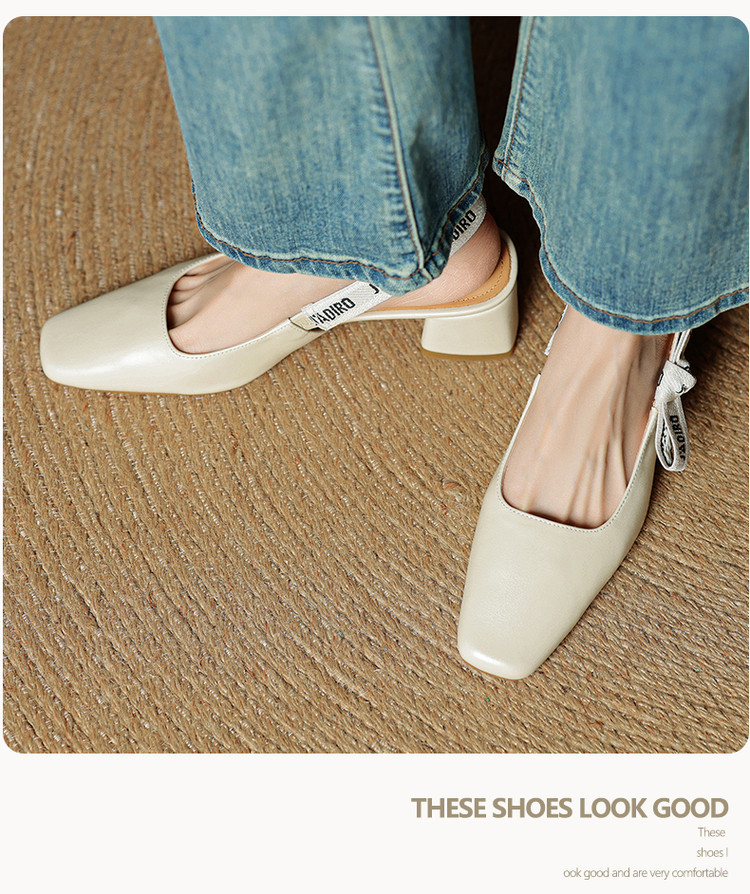 【预售5天】夏季新款百搭粗跟字母凉鞋女包头中跟后空浅口高跟鞋女HB&0033