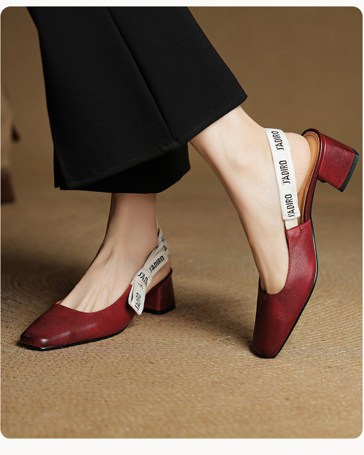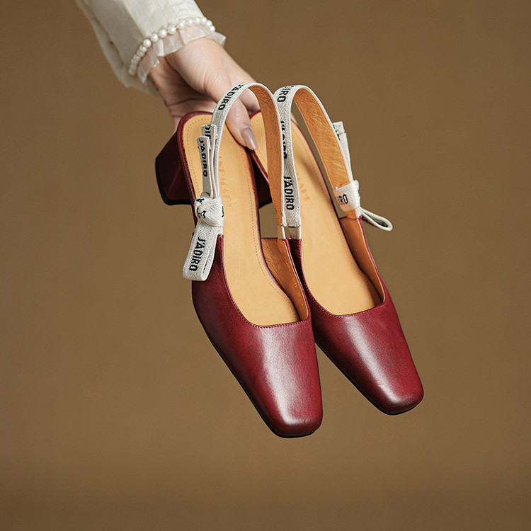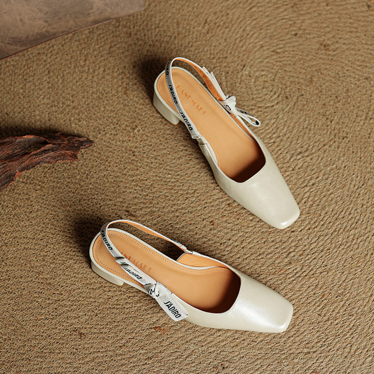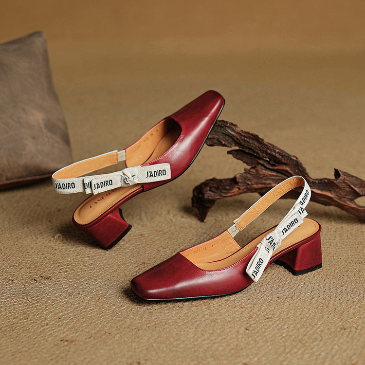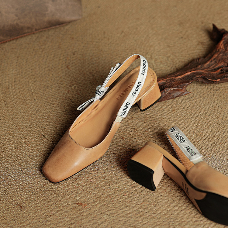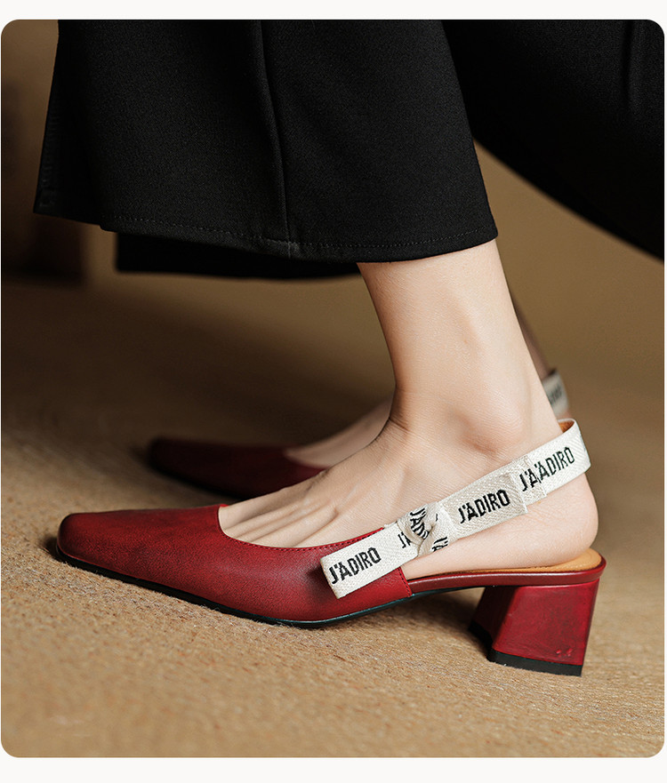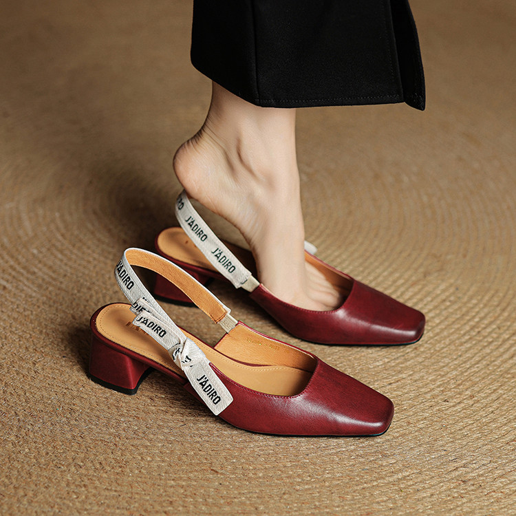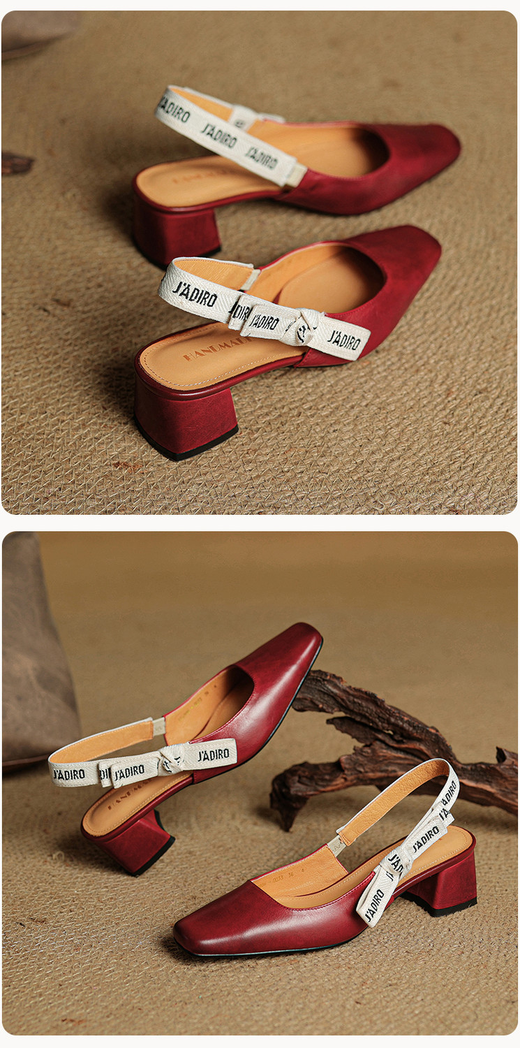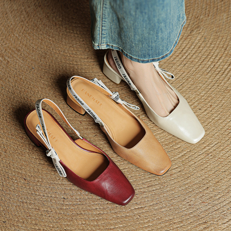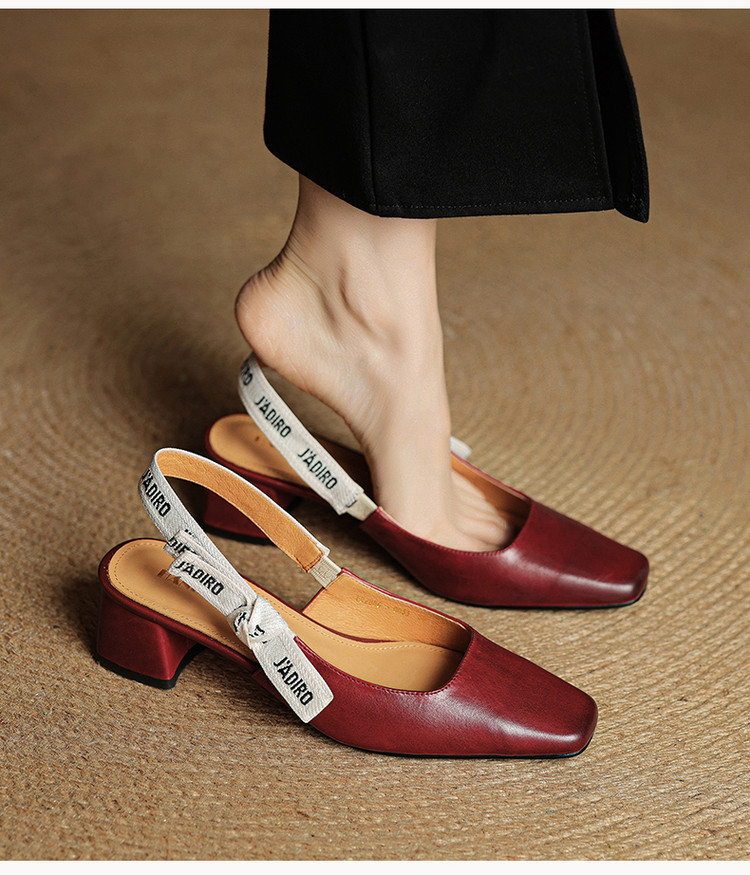 【预售5天】夏季新款百搭粗跟字母凉鞋女包头中跟后空浅口高跟鞋女HB&0033