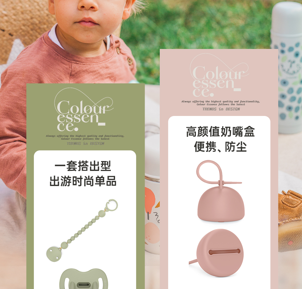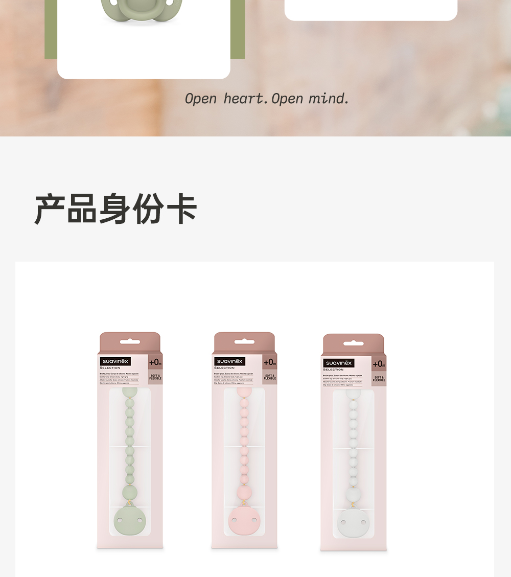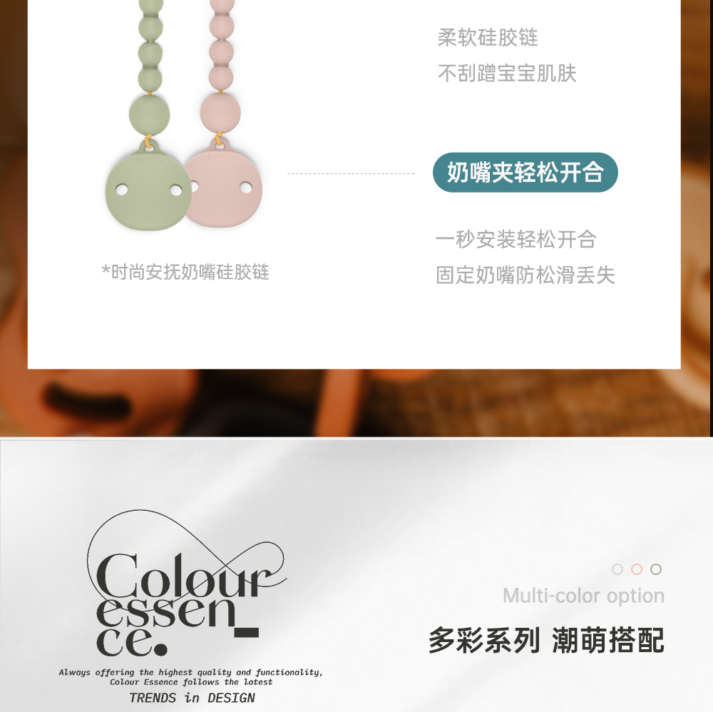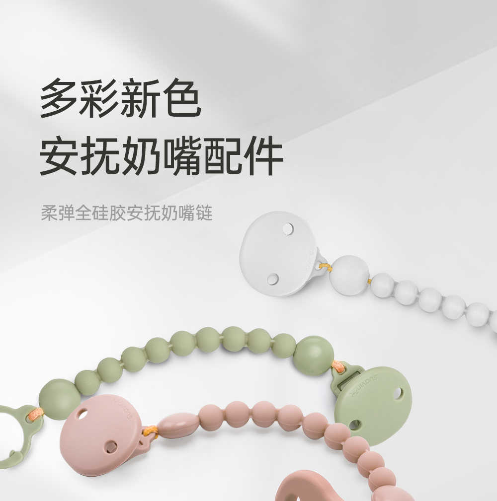 Suavinex时尚安抚奶嘴硅胶链colouressence防丢绳宝宝安抚奶嘴链