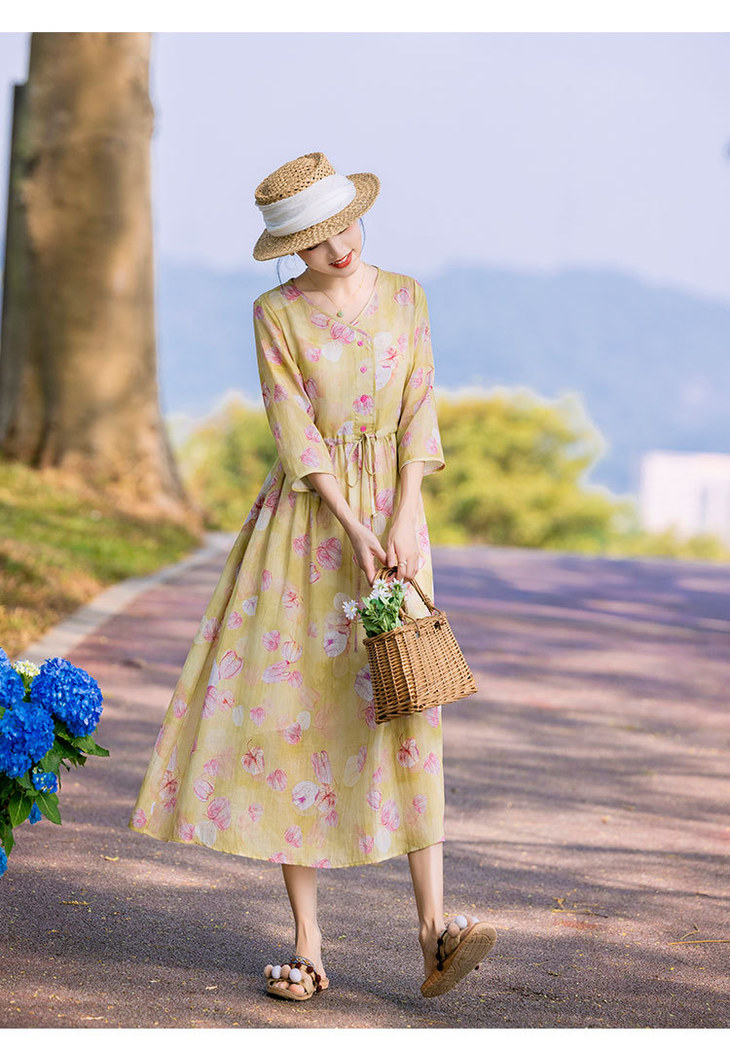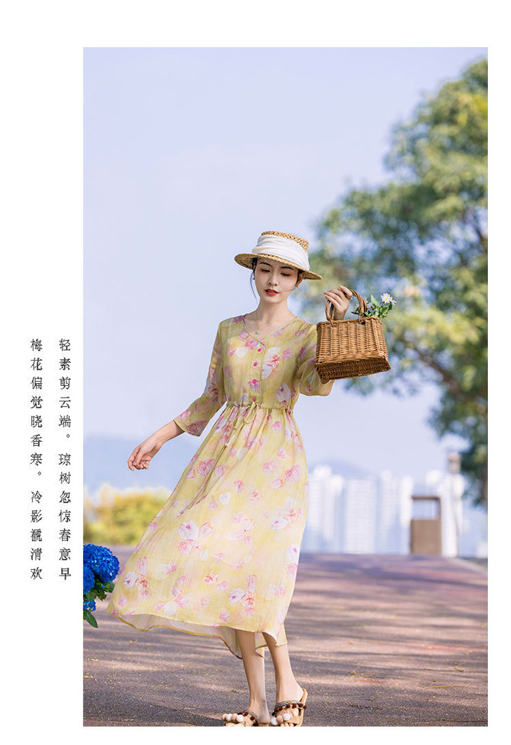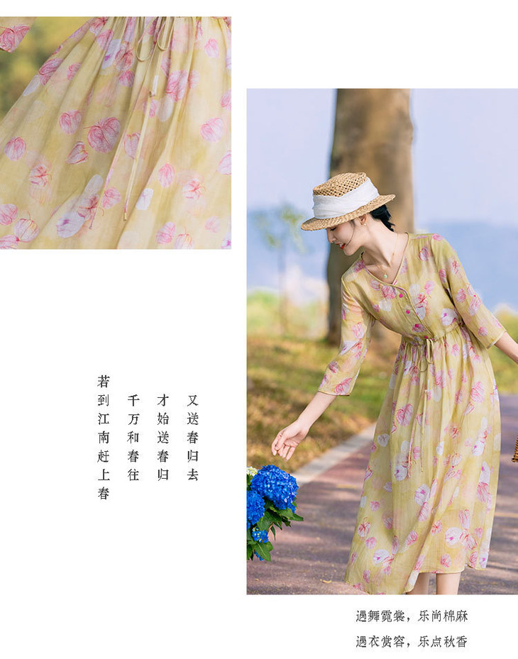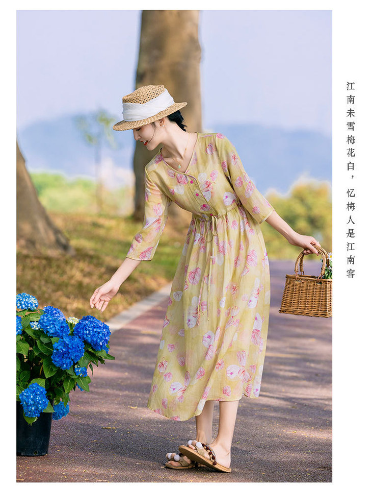 新中式印花,苎麻连衣裙TT96155 商品图0