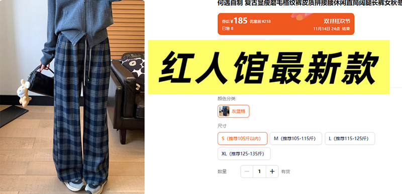 王炸对格纹一体加绒神裤!满分推荐!对格工艺!chao耗面料!