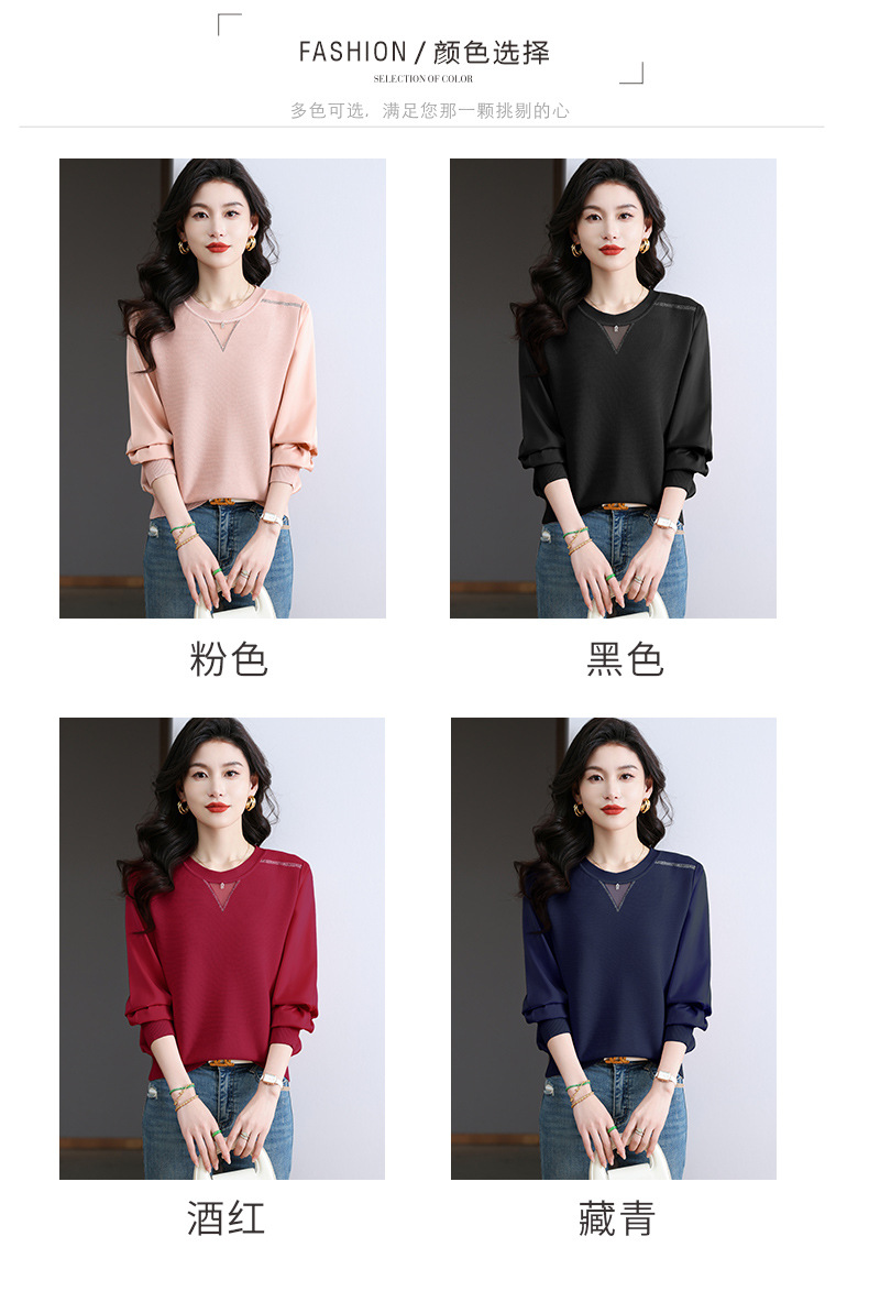 CC-BSM-730小个子针织拼接女士长袖2025春秋季新款雪纺宽松洋气打底网纱上衣