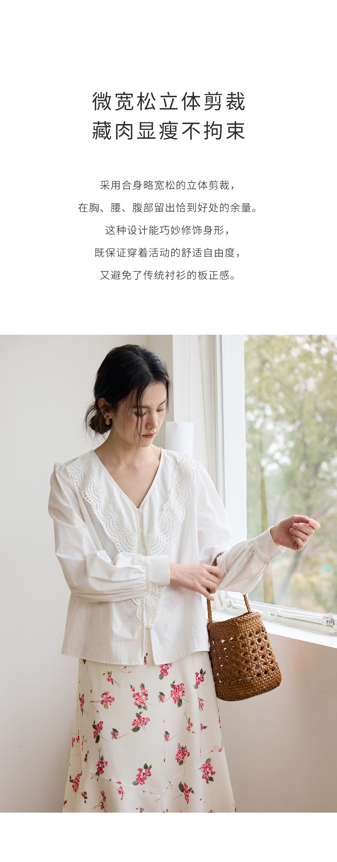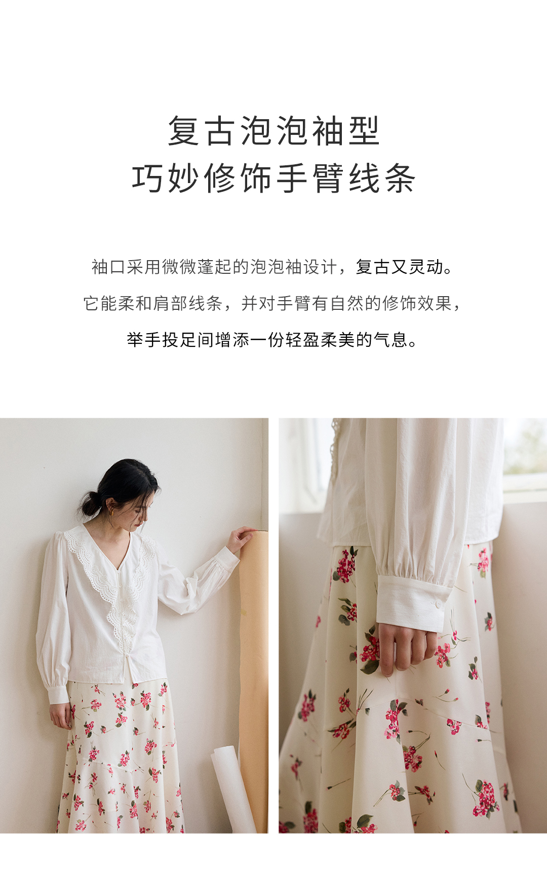 蕾丝荷叶边碎褶衬衫