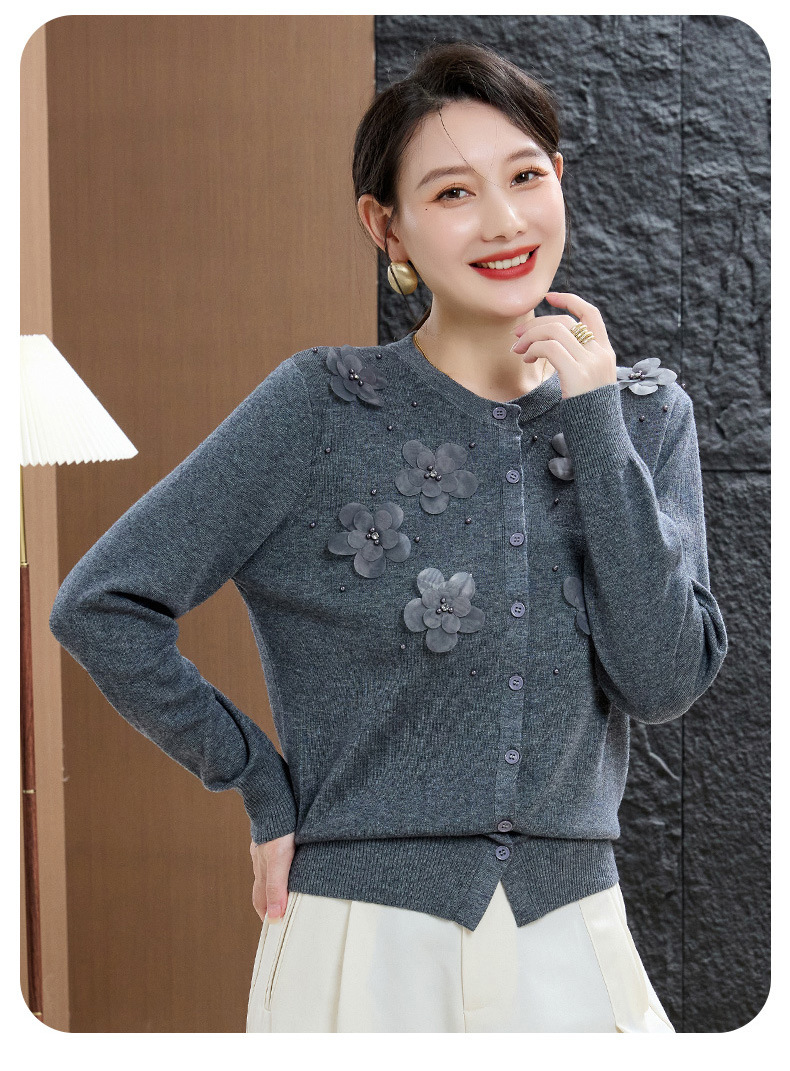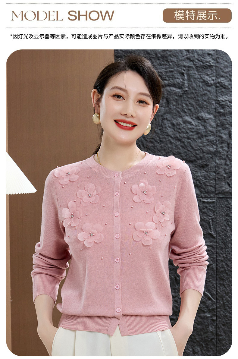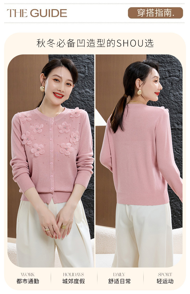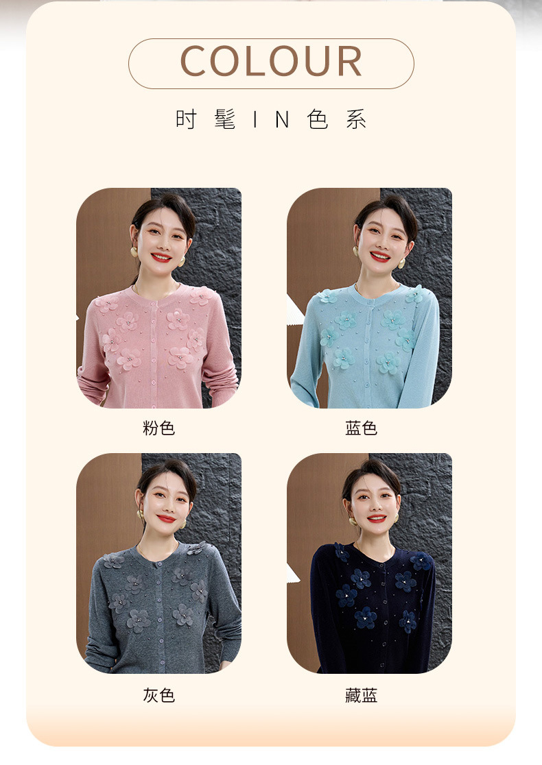 cc50-96303-238春秋季新款羊毛衫女休闲上衣秋季短外套中老年妈妈绣花针织衫