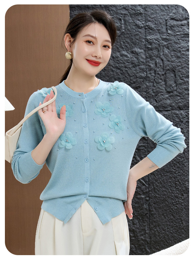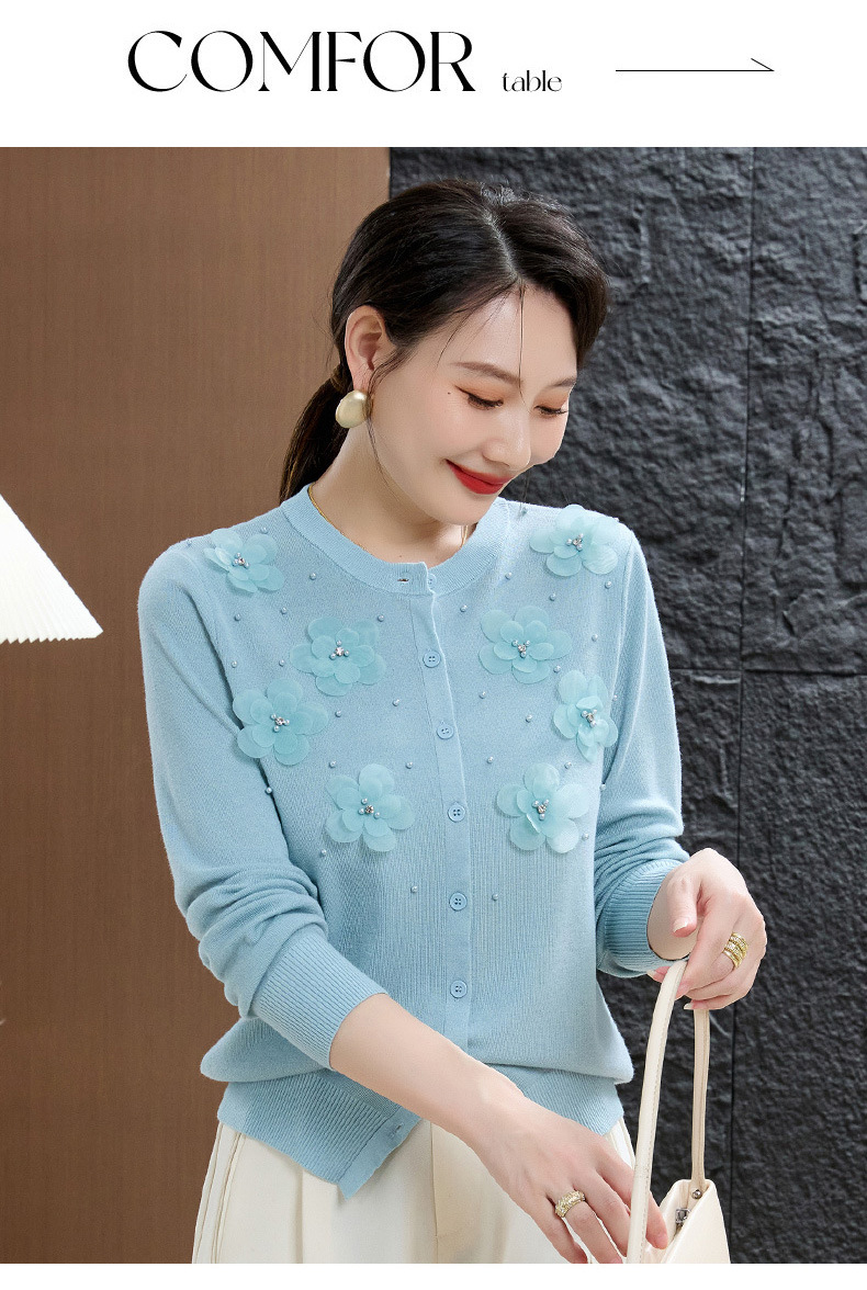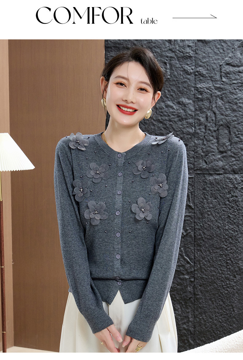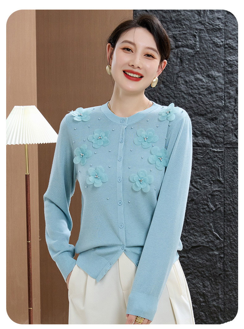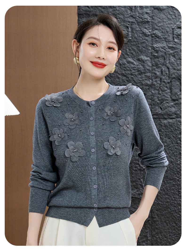 cc50-96303-238春秋季新款羊毛衫女休闲上衣秋季短外套中老年妈妈绣花针织衫