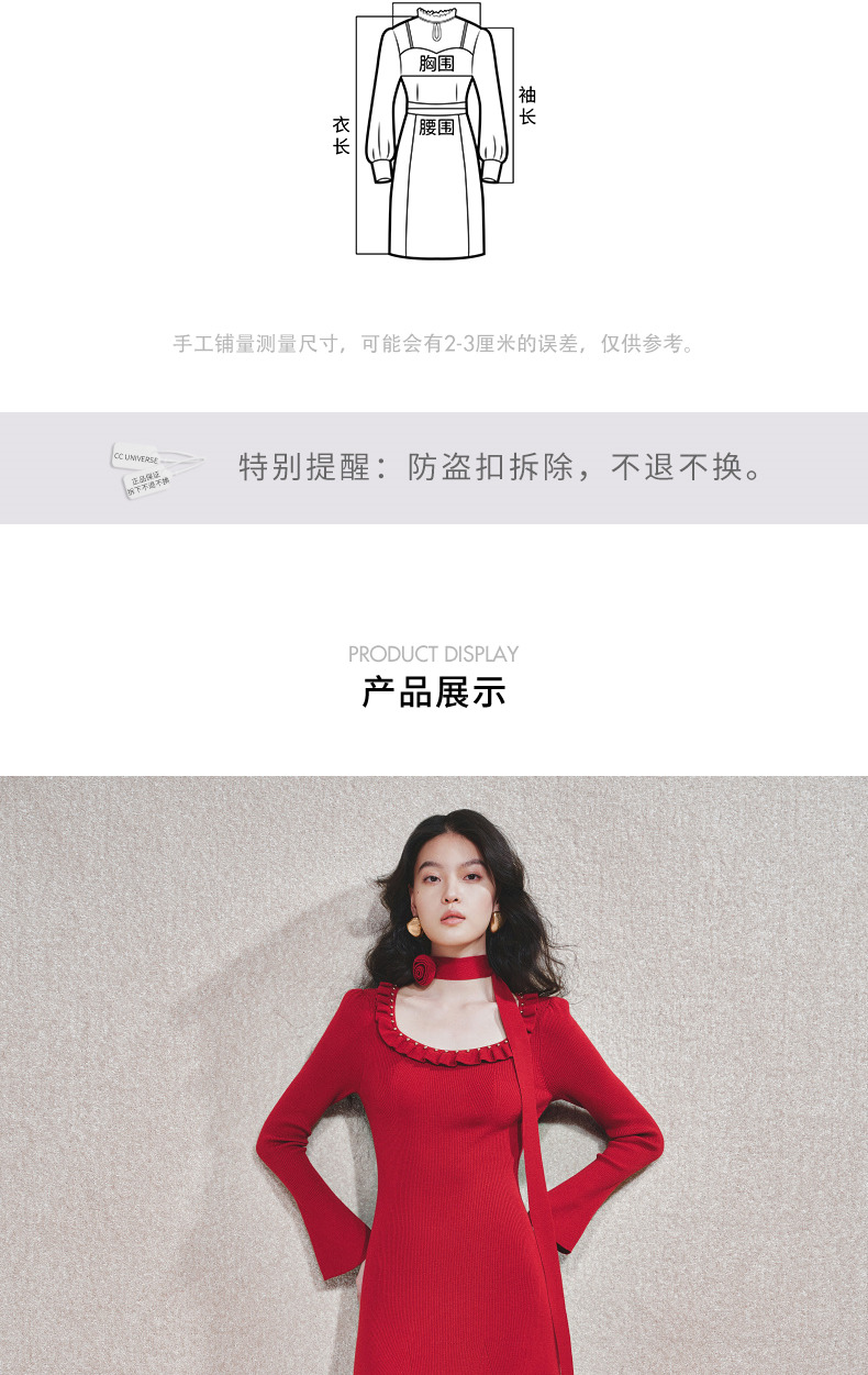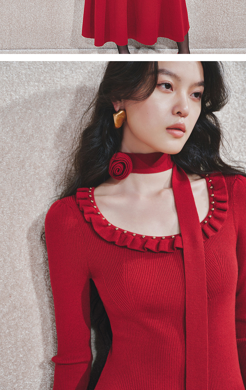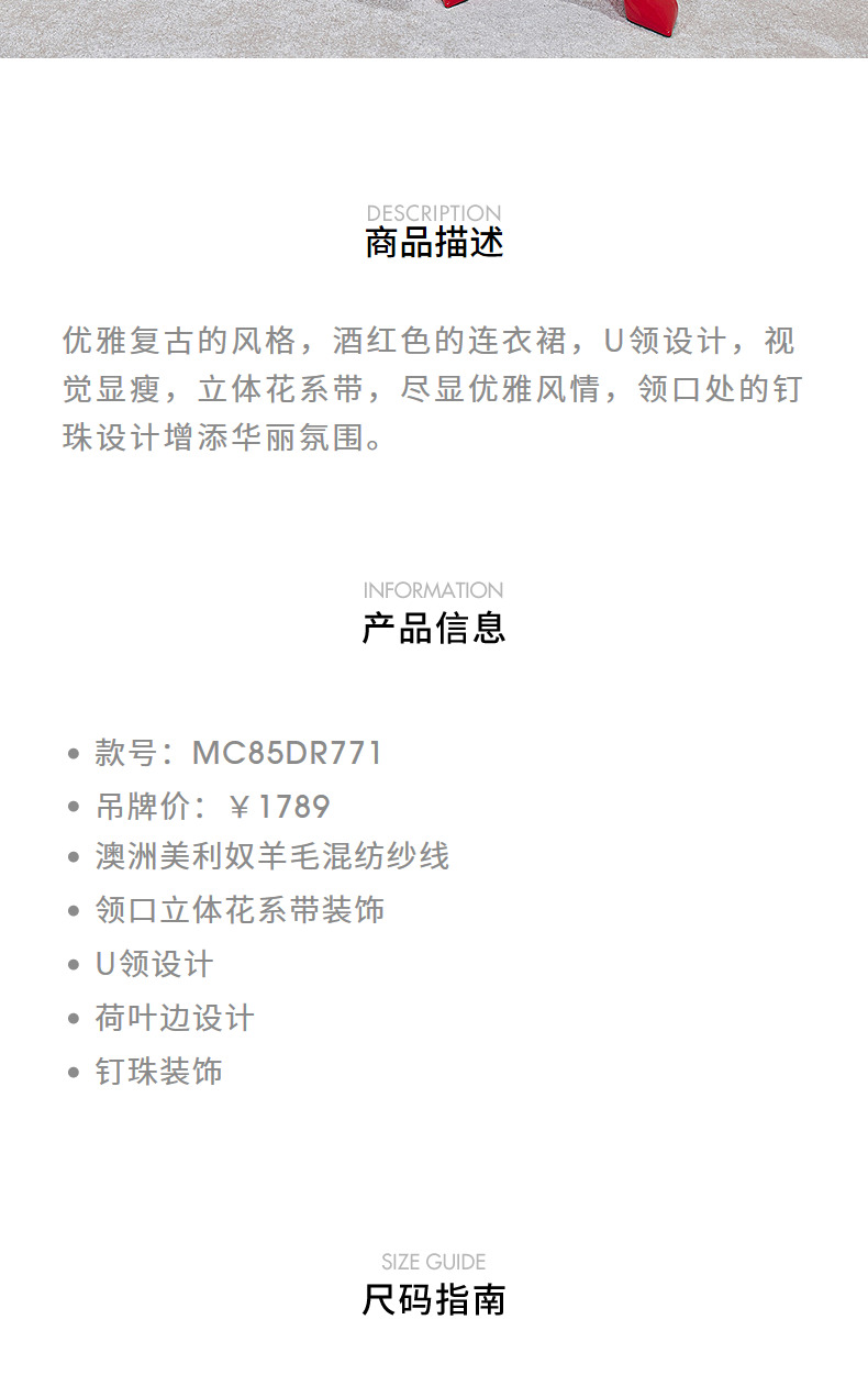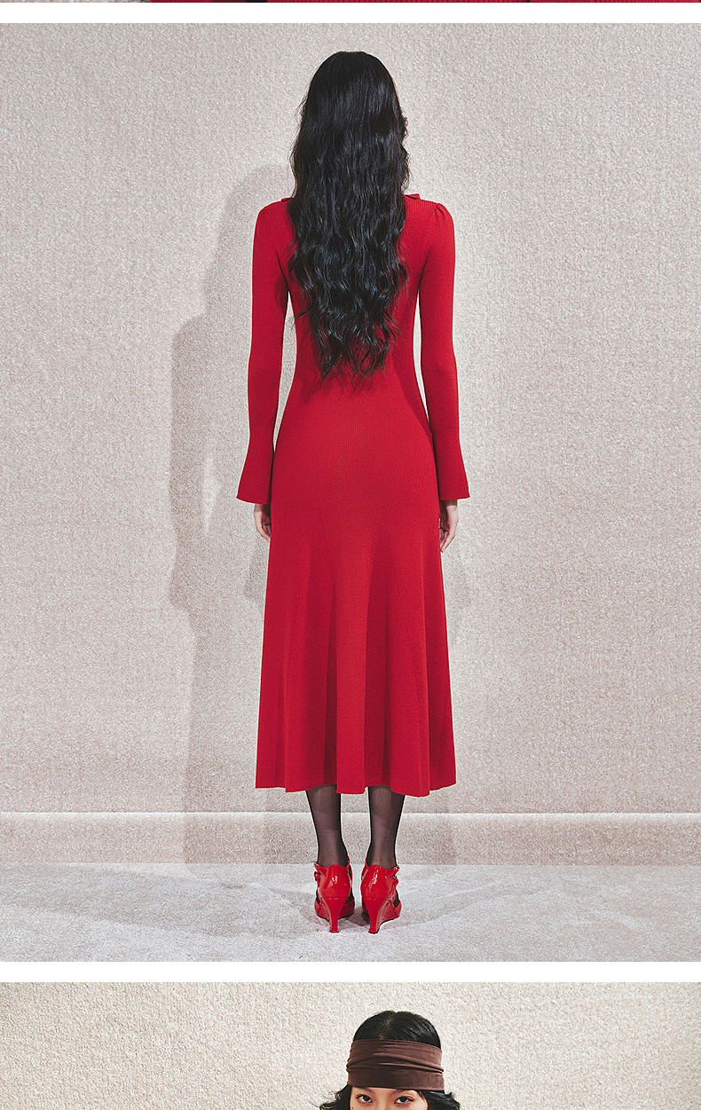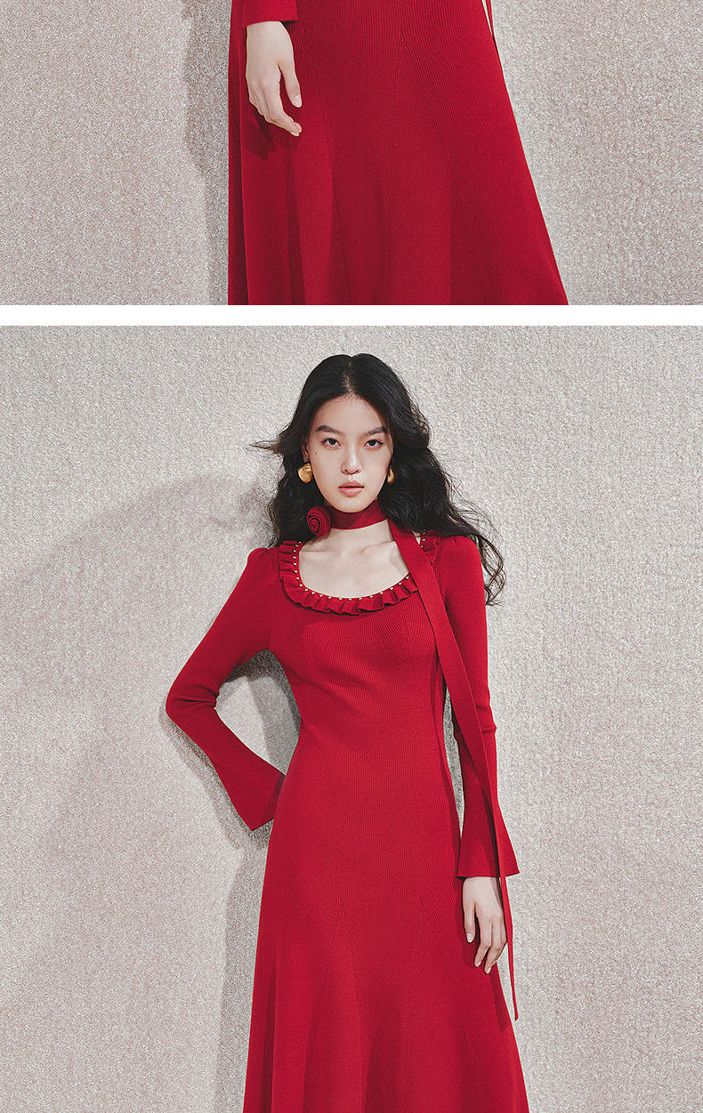 【商场同款-节庆穿搭】MAXRIENY精致复古新年红连衣裙修身针织裙(货号:MC85DR771)