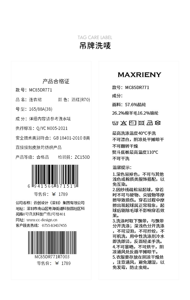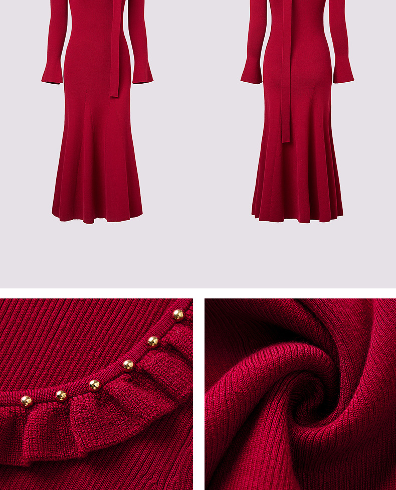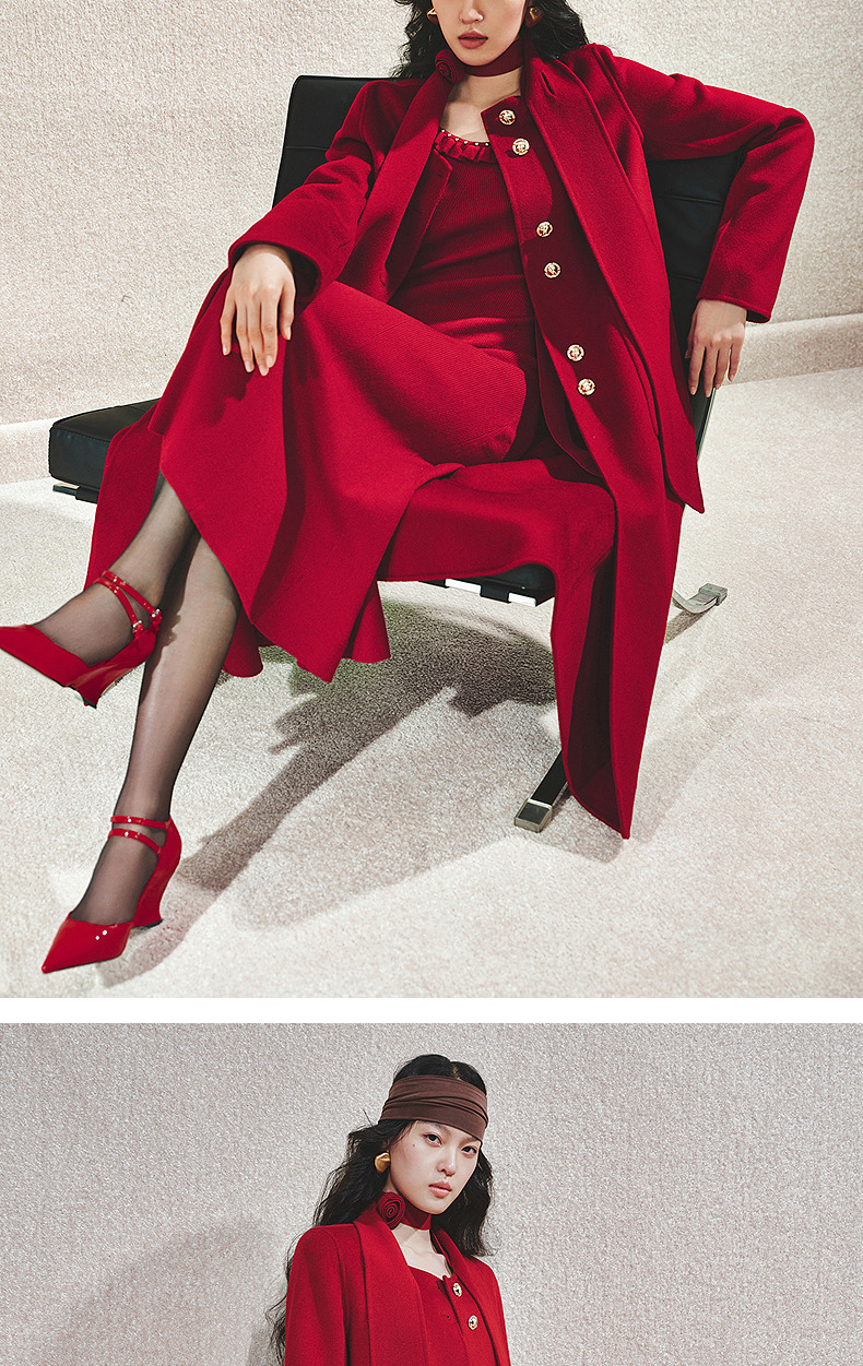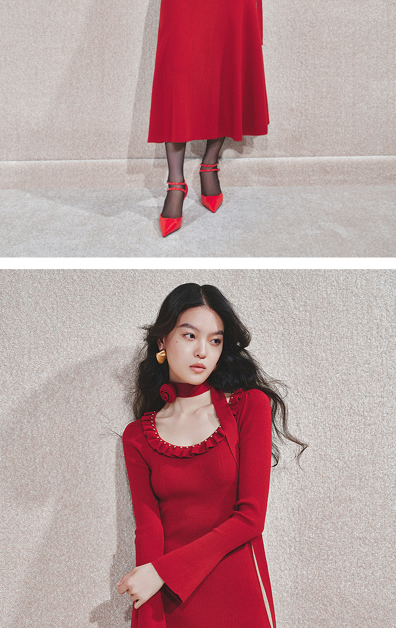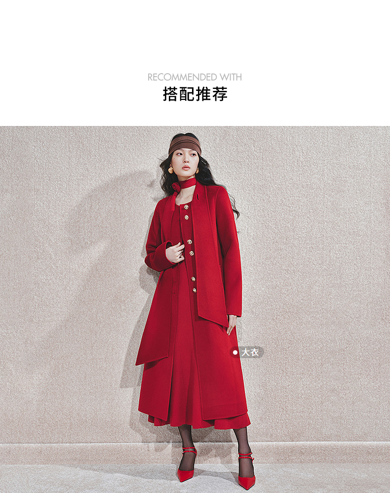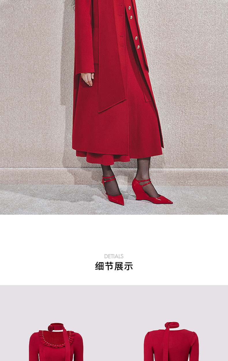 【商场同款-节庆穿搭】MAXRIENY精致复古新年红连衣裙修身针织裙(货号:MC85DR771)
