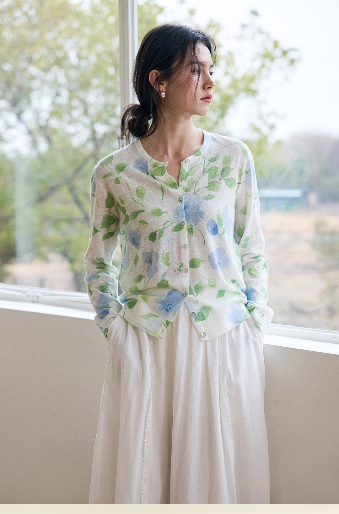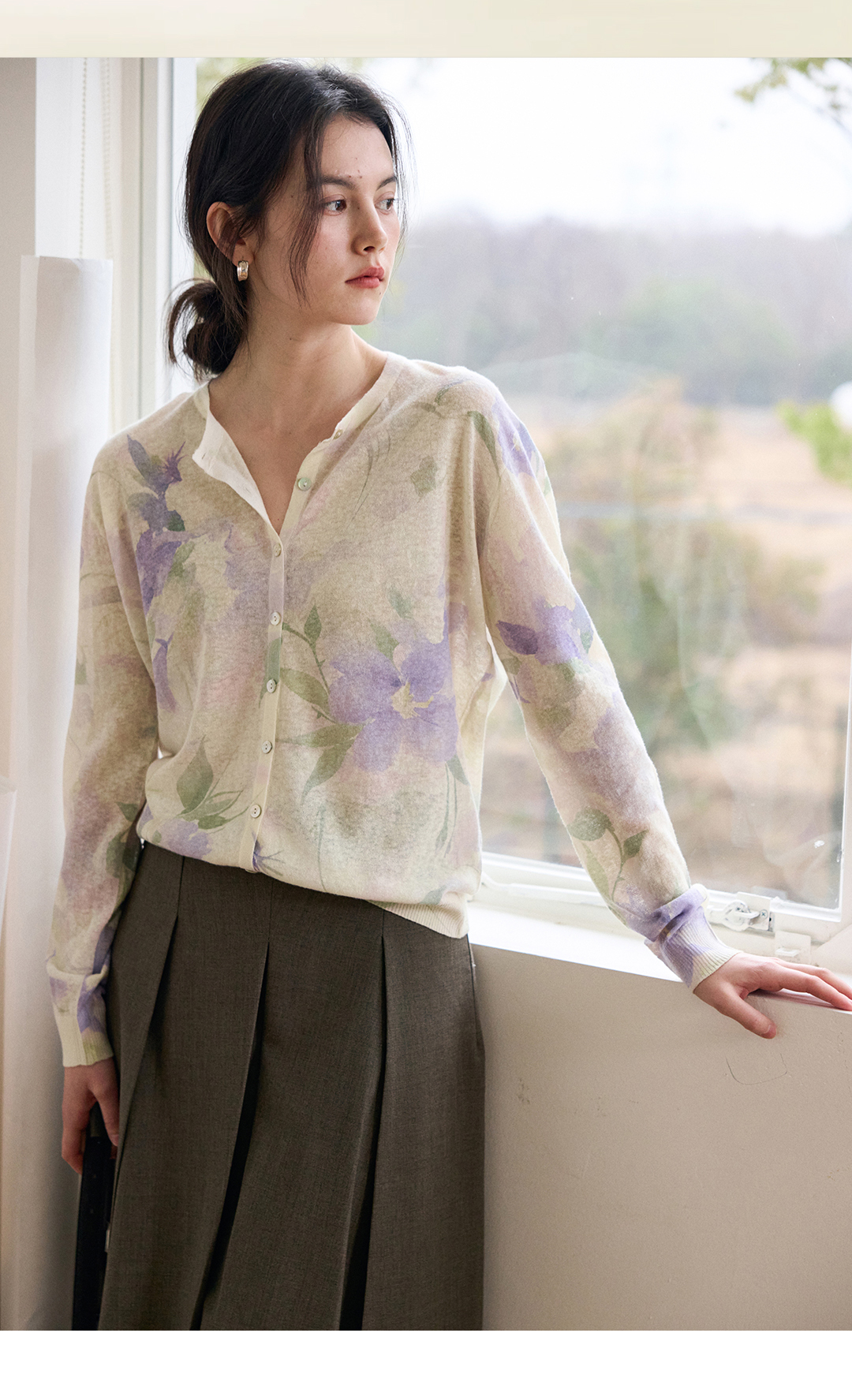HeyDress提花羊毛羊绒混纺高领毛衣