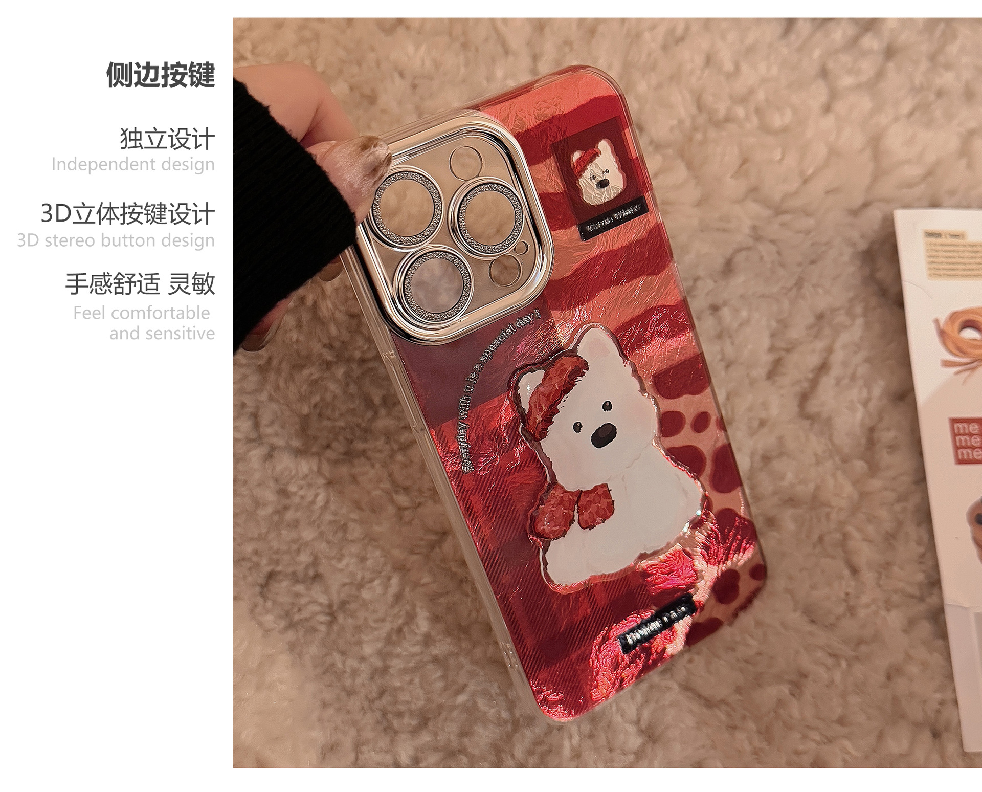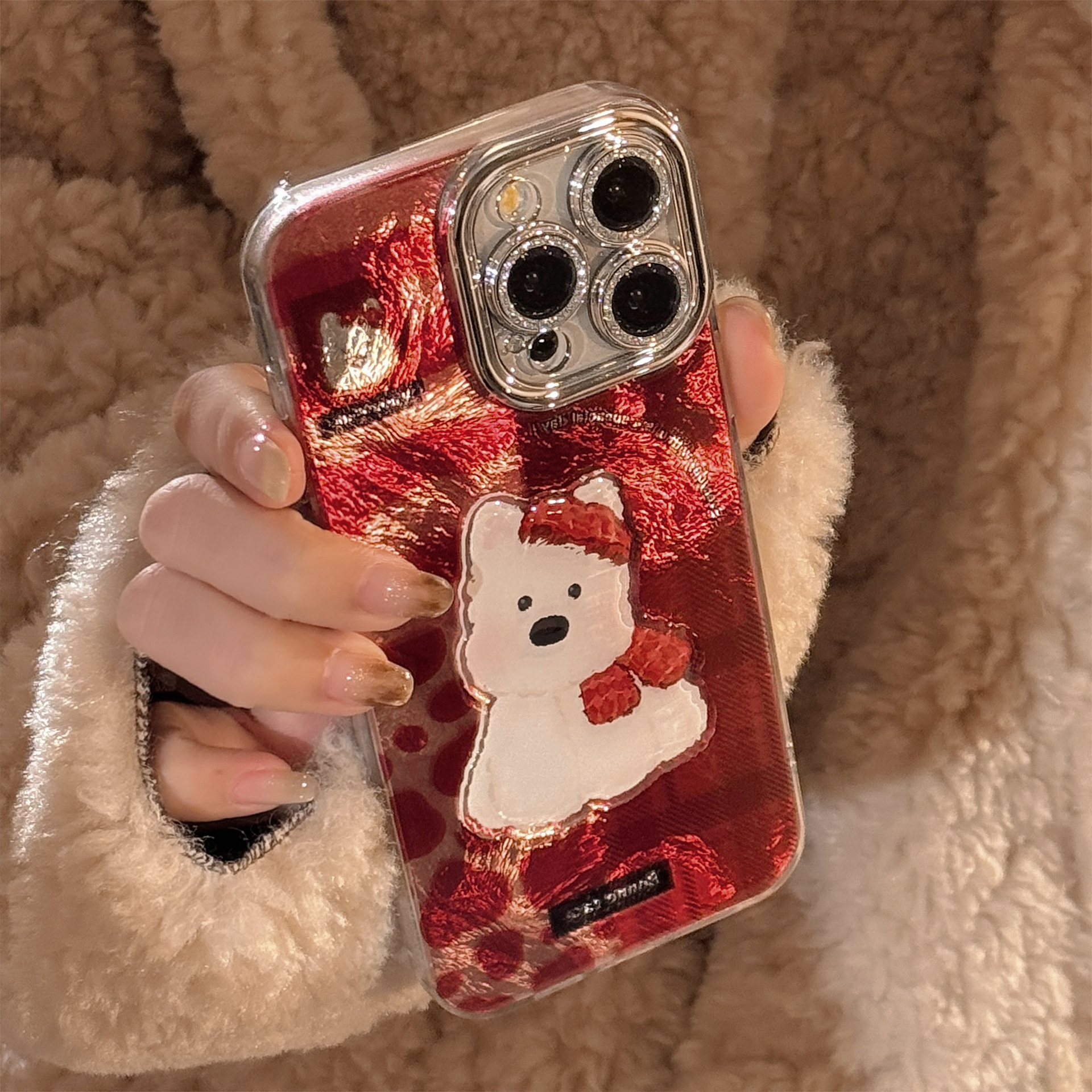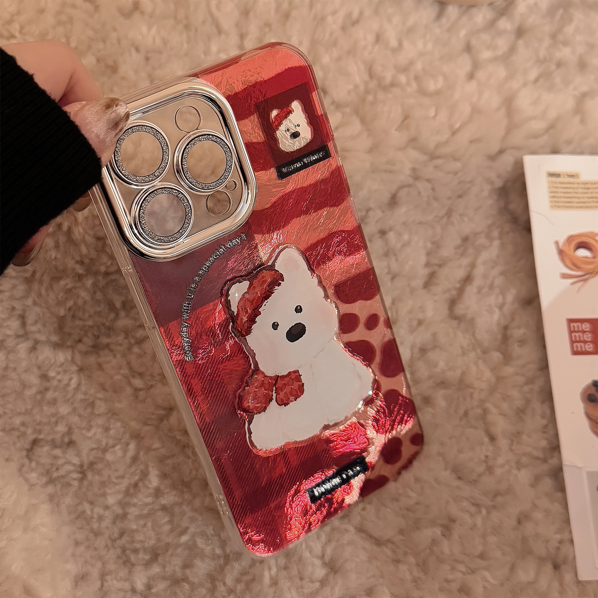 【秒杀】【红格纹西高地手机壳】适用15promax手机壳 苹果iphone16 立体卡通13挂链14硬