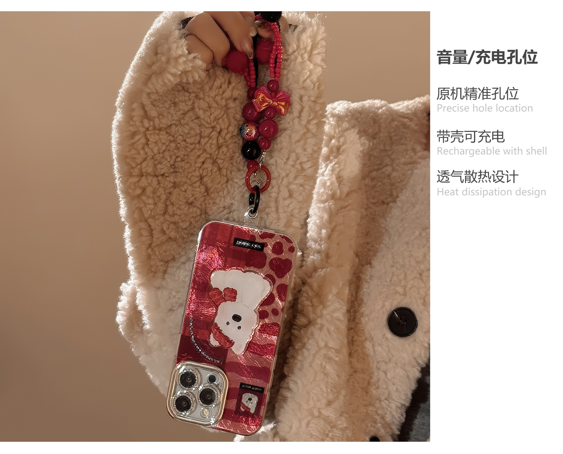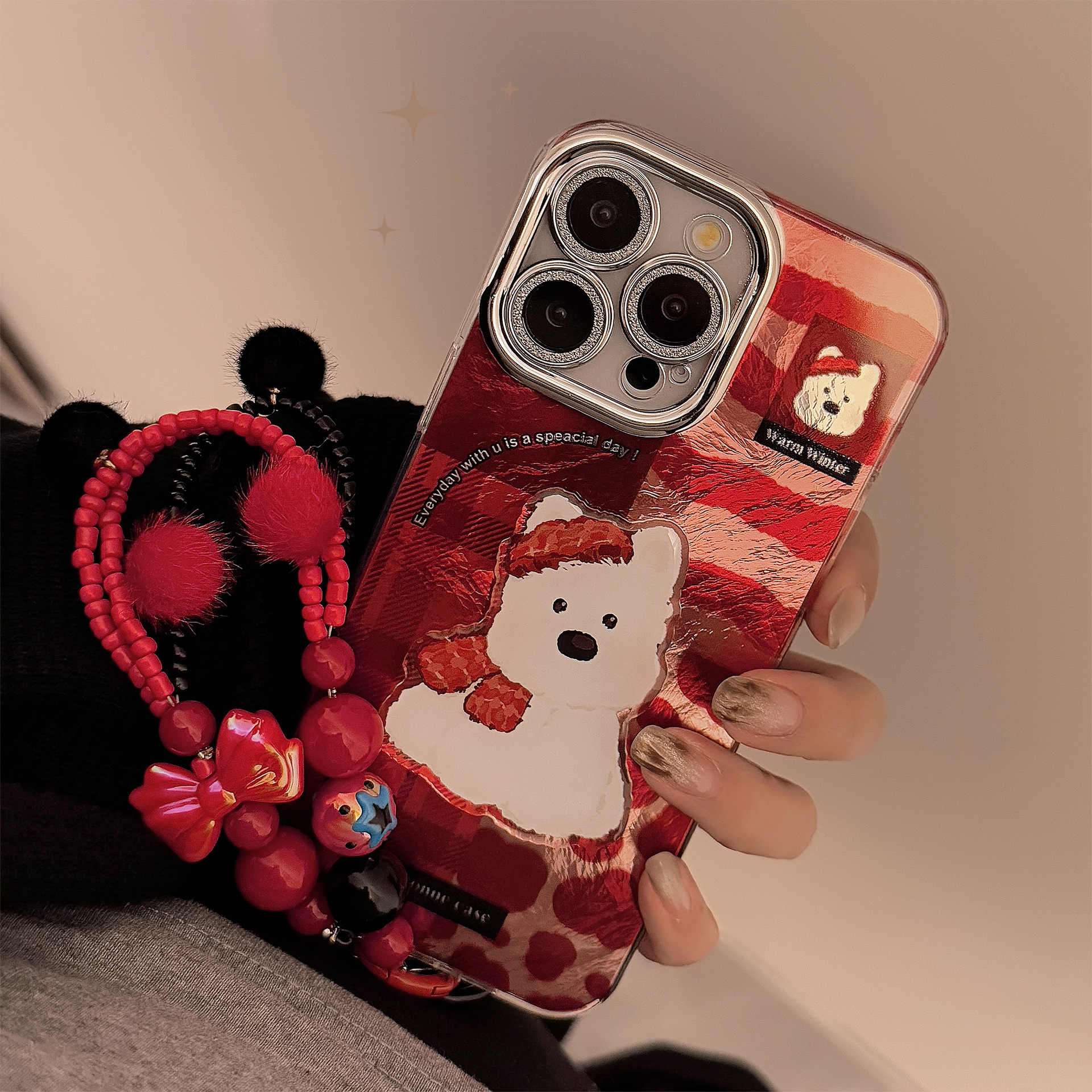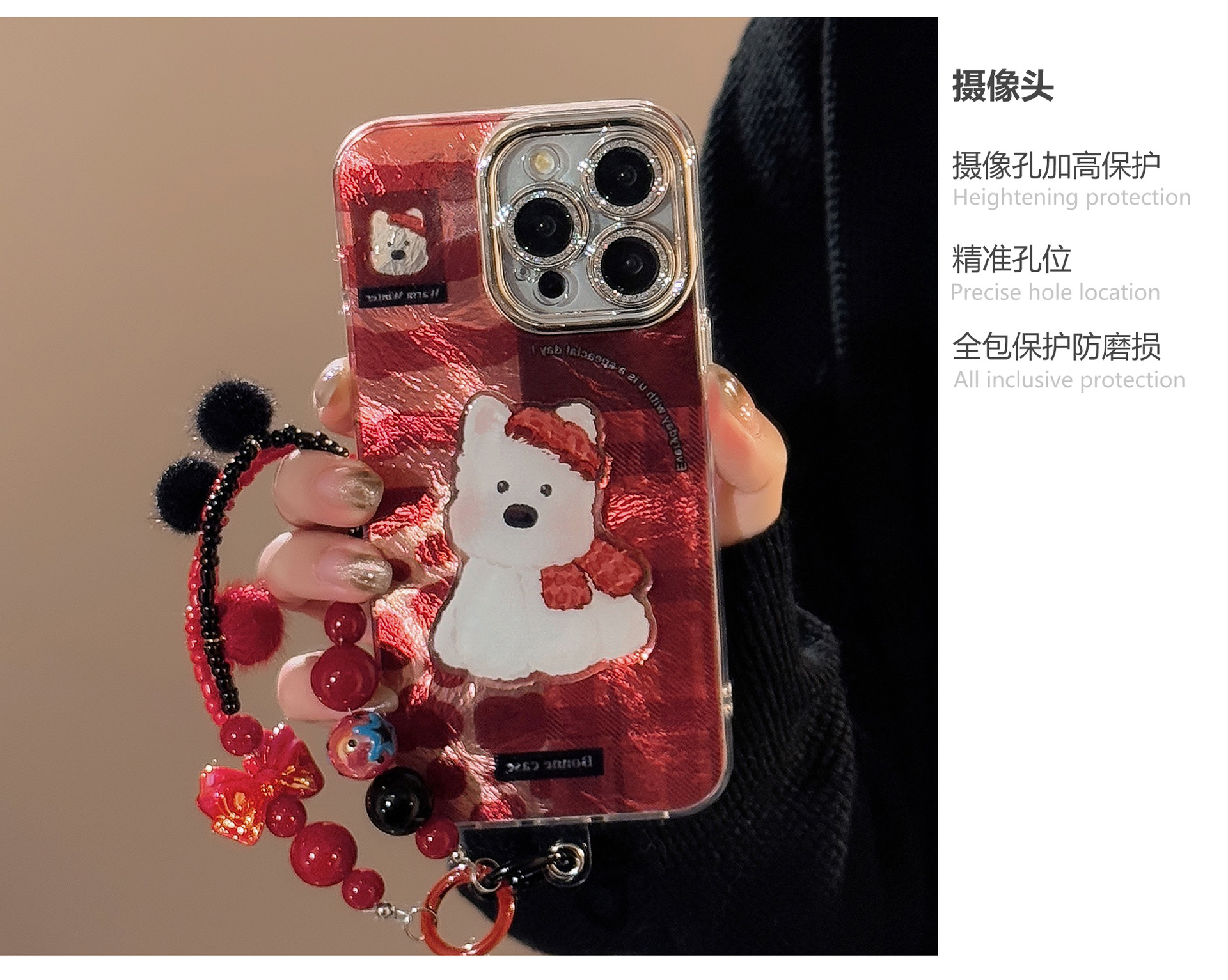 【秒杀】【红格纹西高地手机壳】适用15promax手机壳 苹果iphone16 立体卡通13挂链14硬