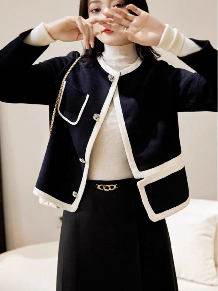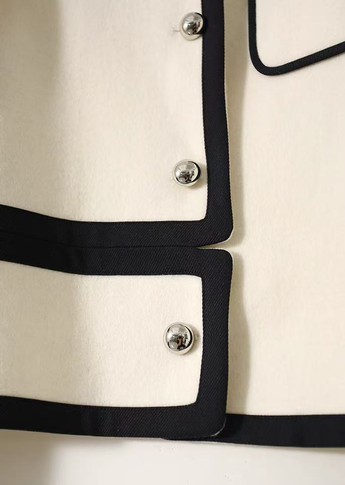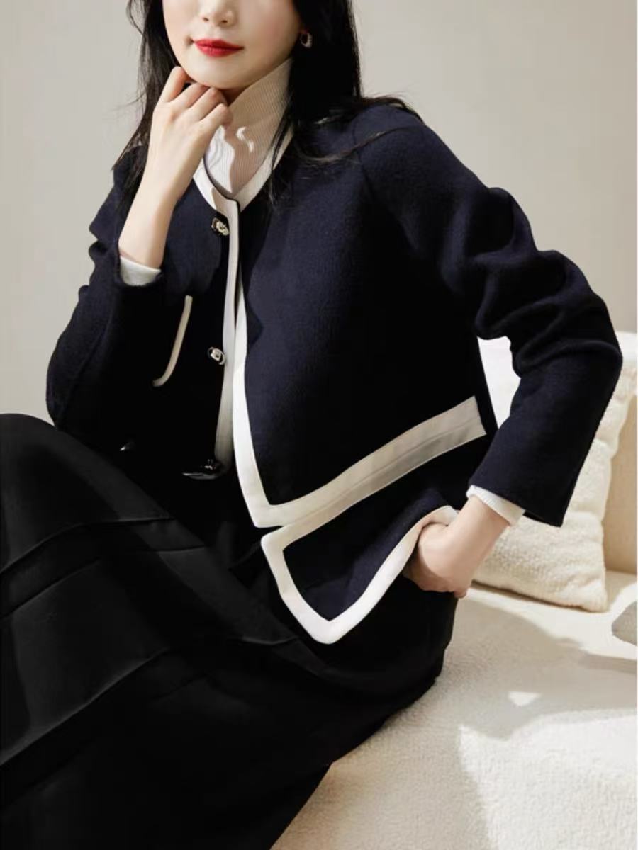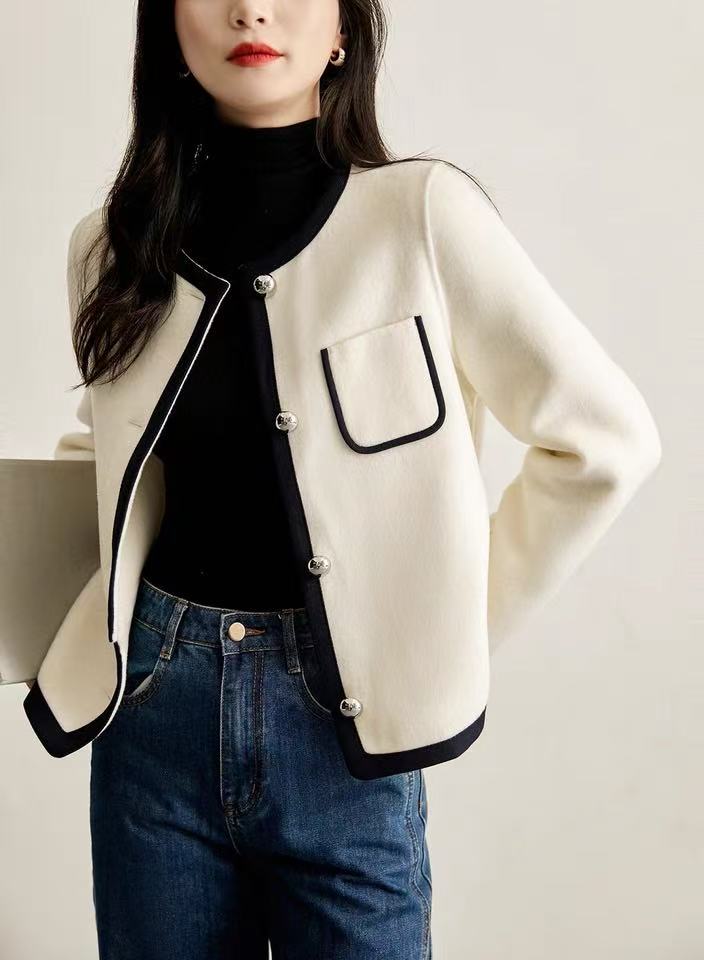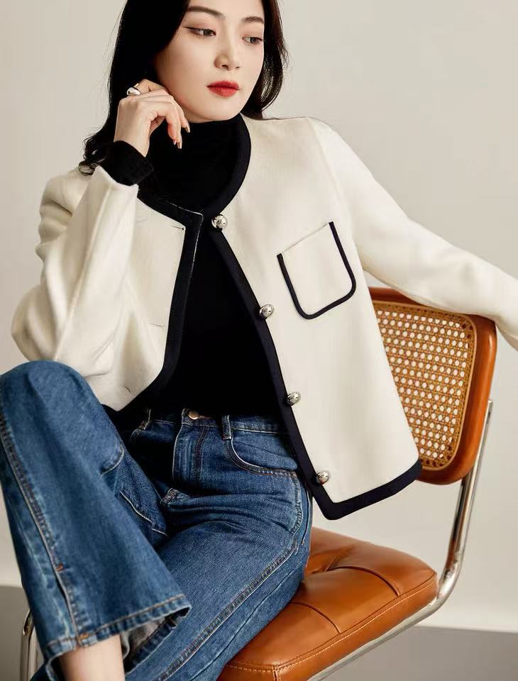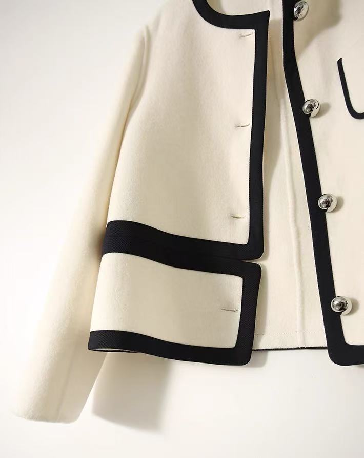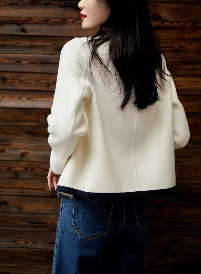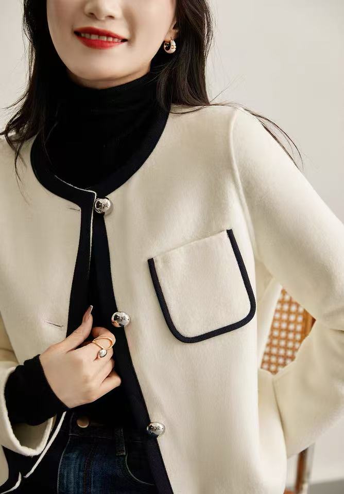 【高端系列】2088款90%超细羊毛➕10%山羊绒短款小香风双面尼大衣-喜出