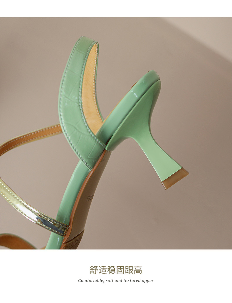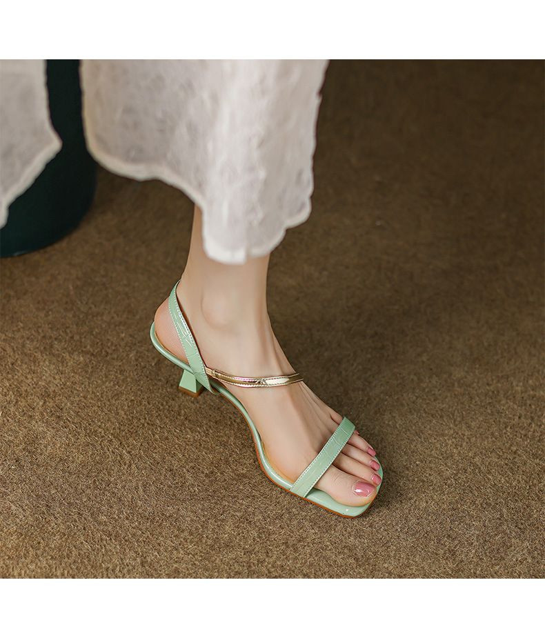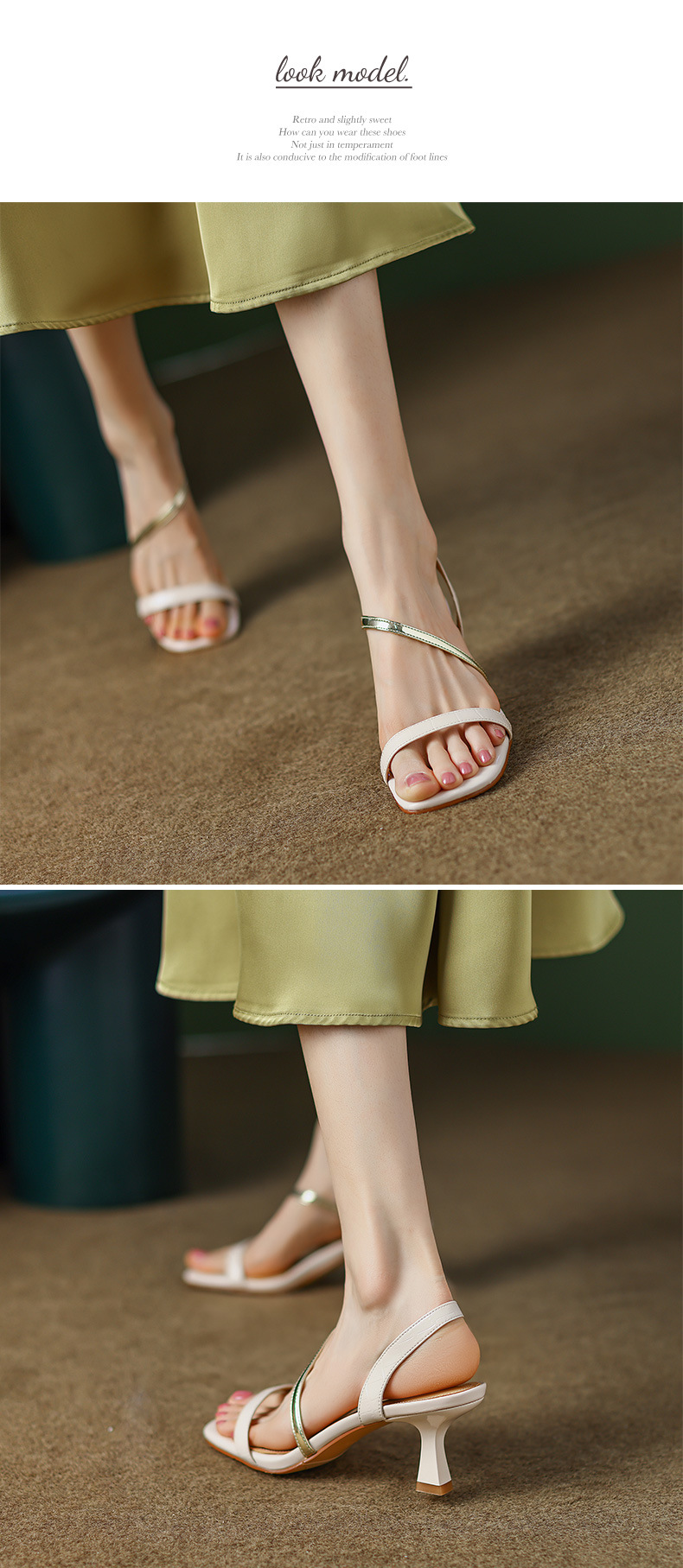 新款细跟鞋法式极简细带露趾中跟凉鞋OLD-3535aa